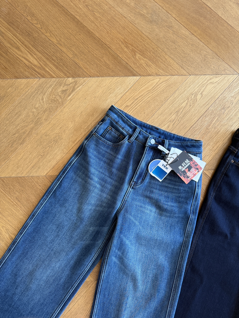 面料:75.5%棉 23.2%聚酯纤维 1.3%氨纶【牛仔前几次要单独洗,会掉色,介意勿拍!!!新牛仔裤也会有点味道,对气味敏感的千万不要拍】