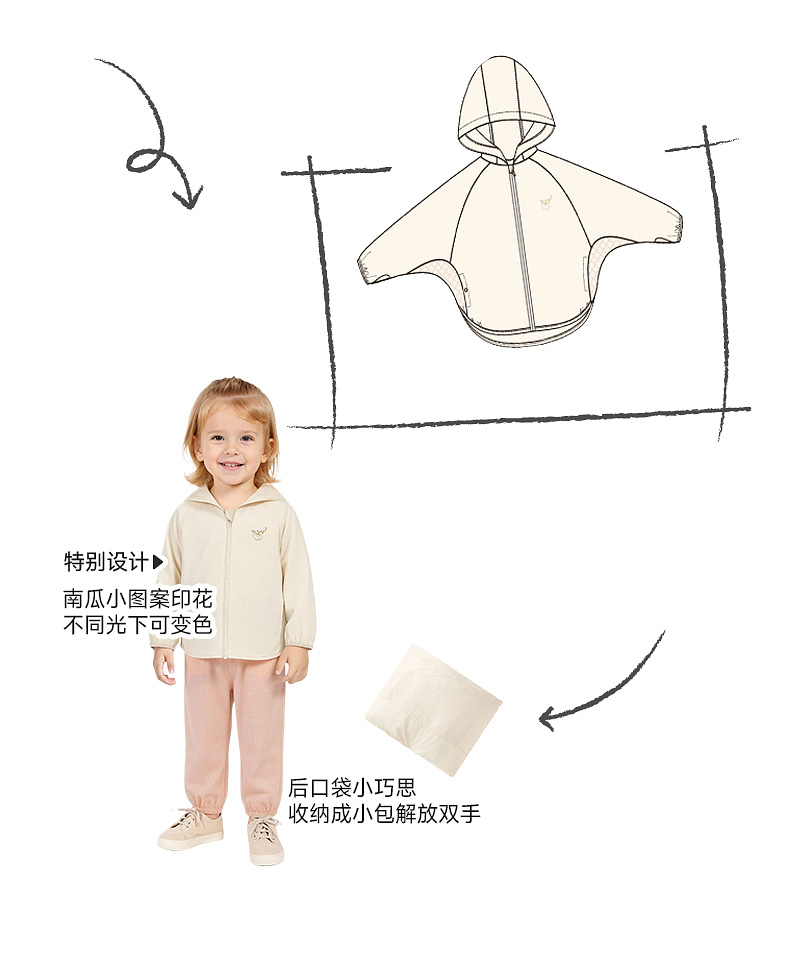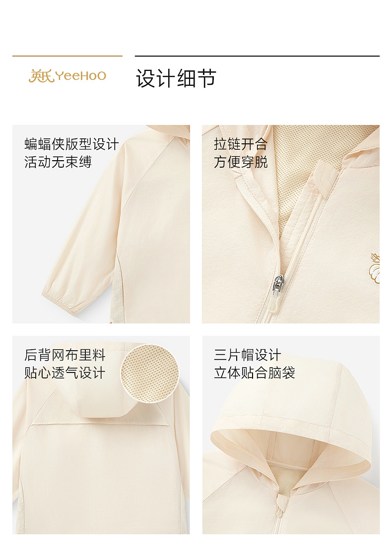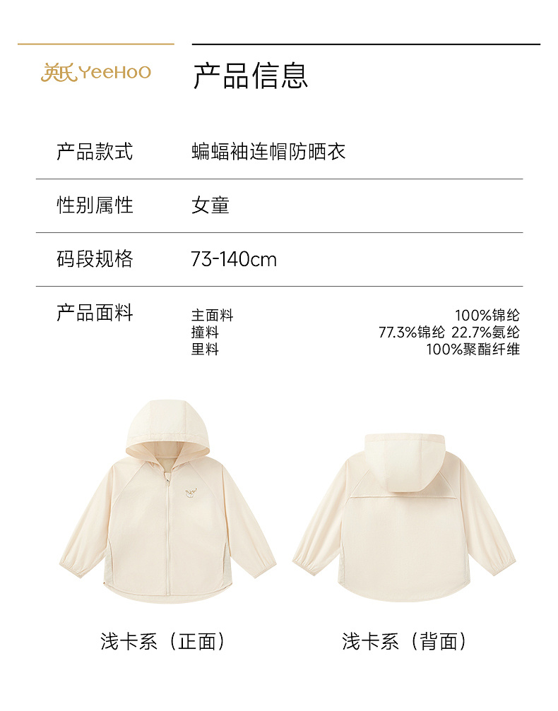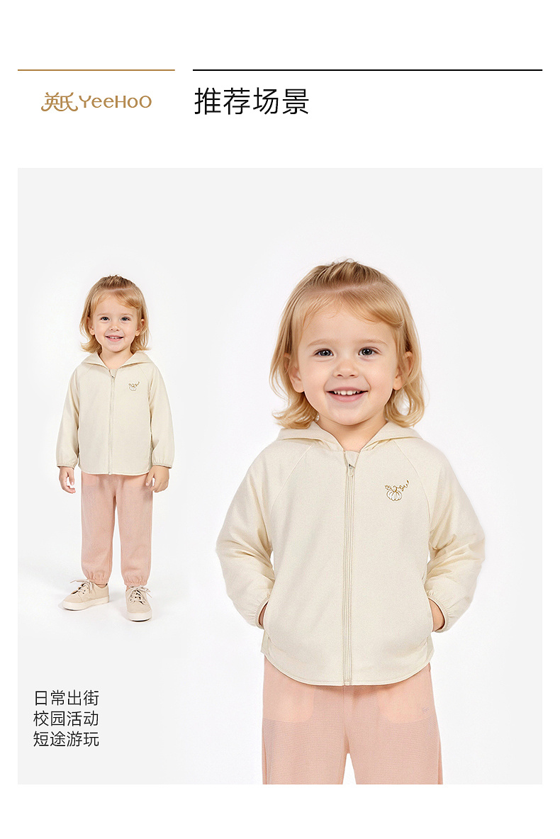 【商场同款】英氏儿童外套女童连帽防晒衣户外休闲简约皮肤衣新款