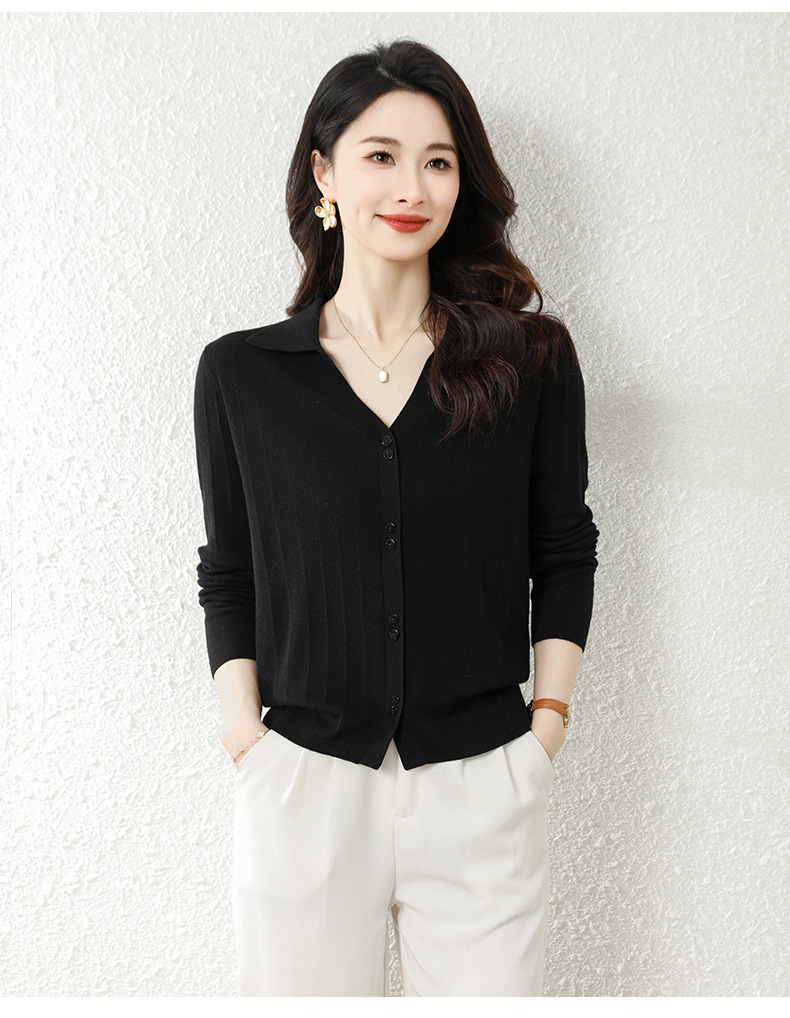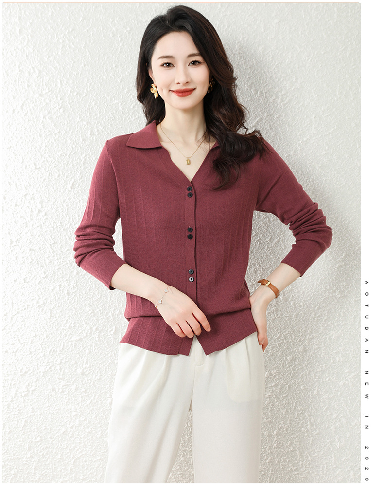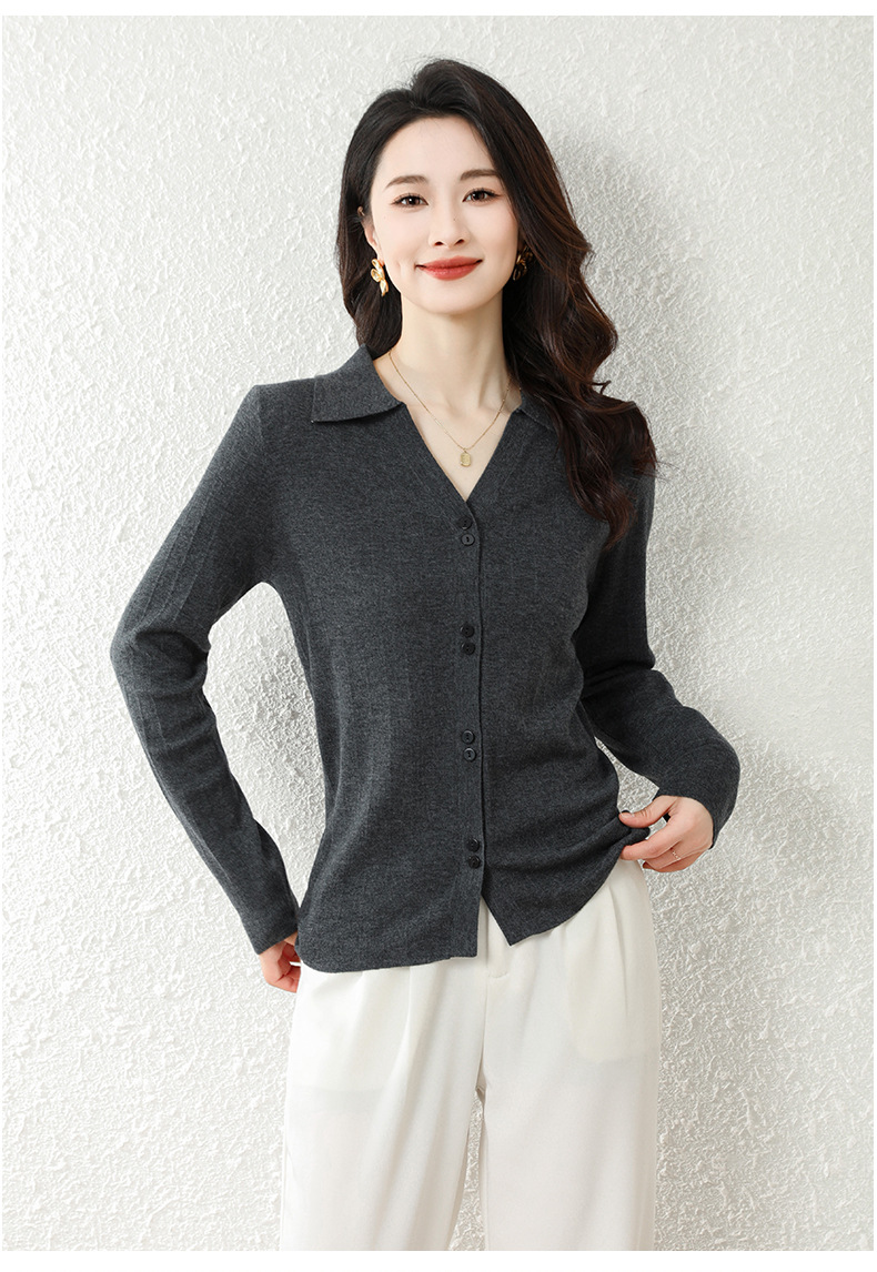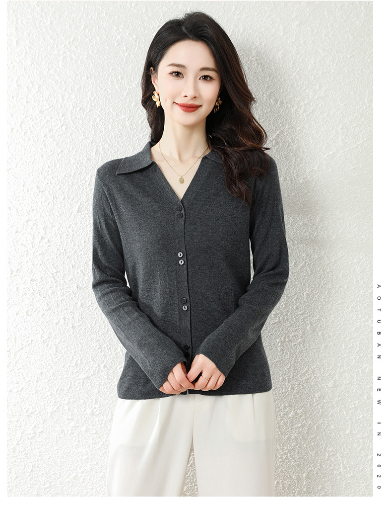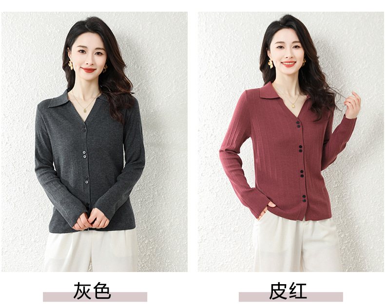 OSL 2206羊毛V领开衫软糯亲肤针织毛衣 商品图2