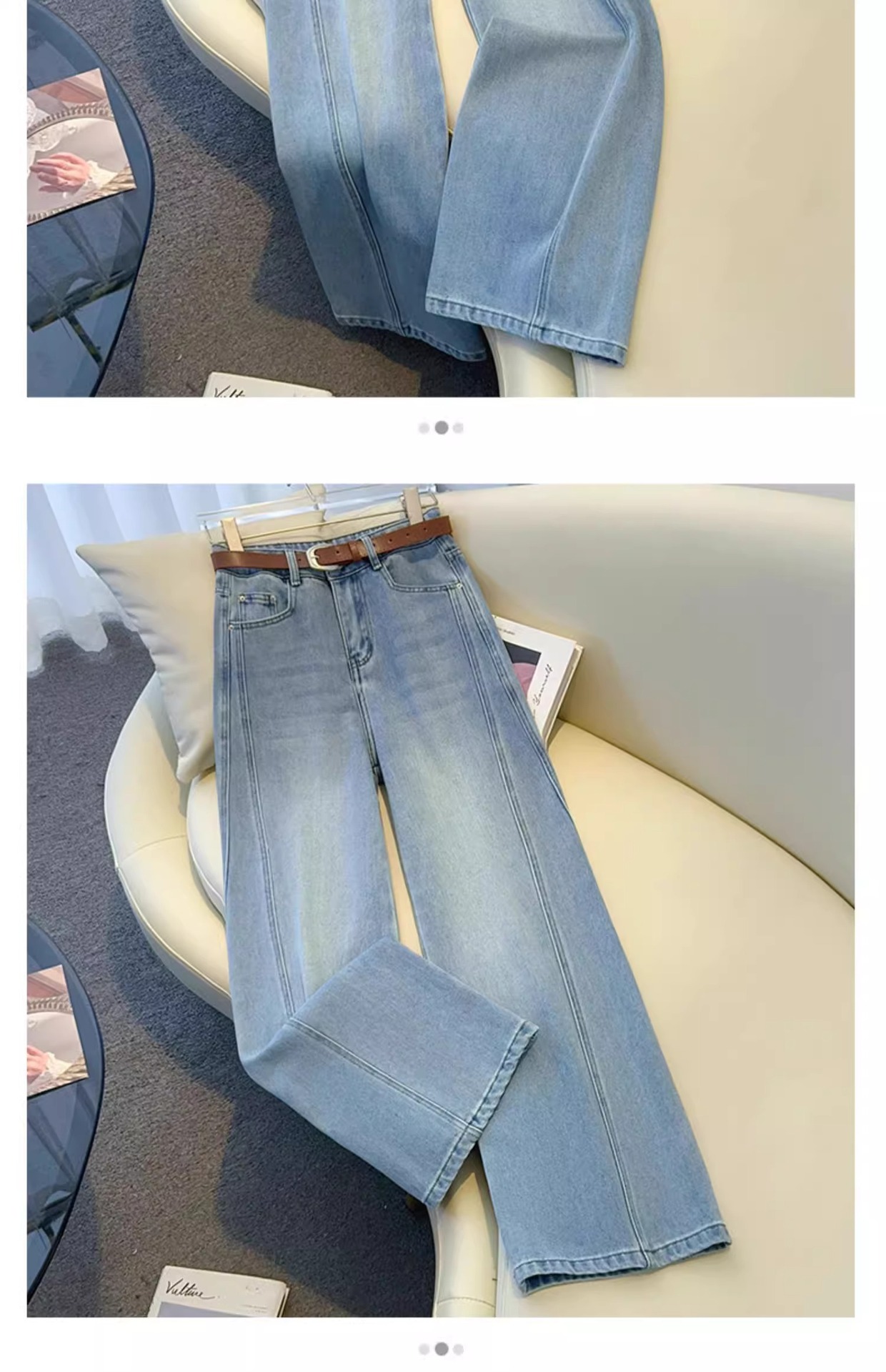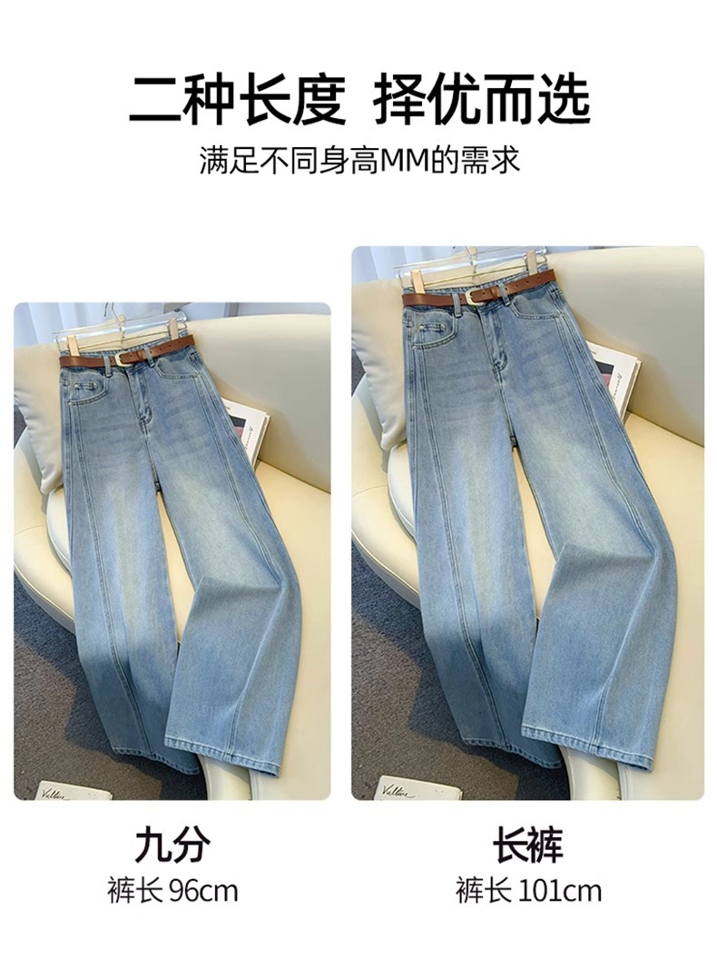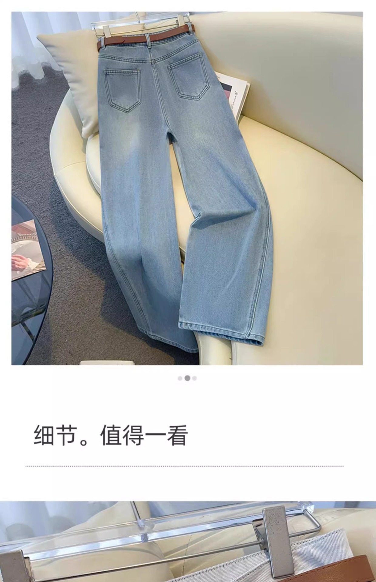 A24353浅色阔腿牛仔裤女夏季2025新款复古爆款裤子拖地裤宽松休闲直筒裤