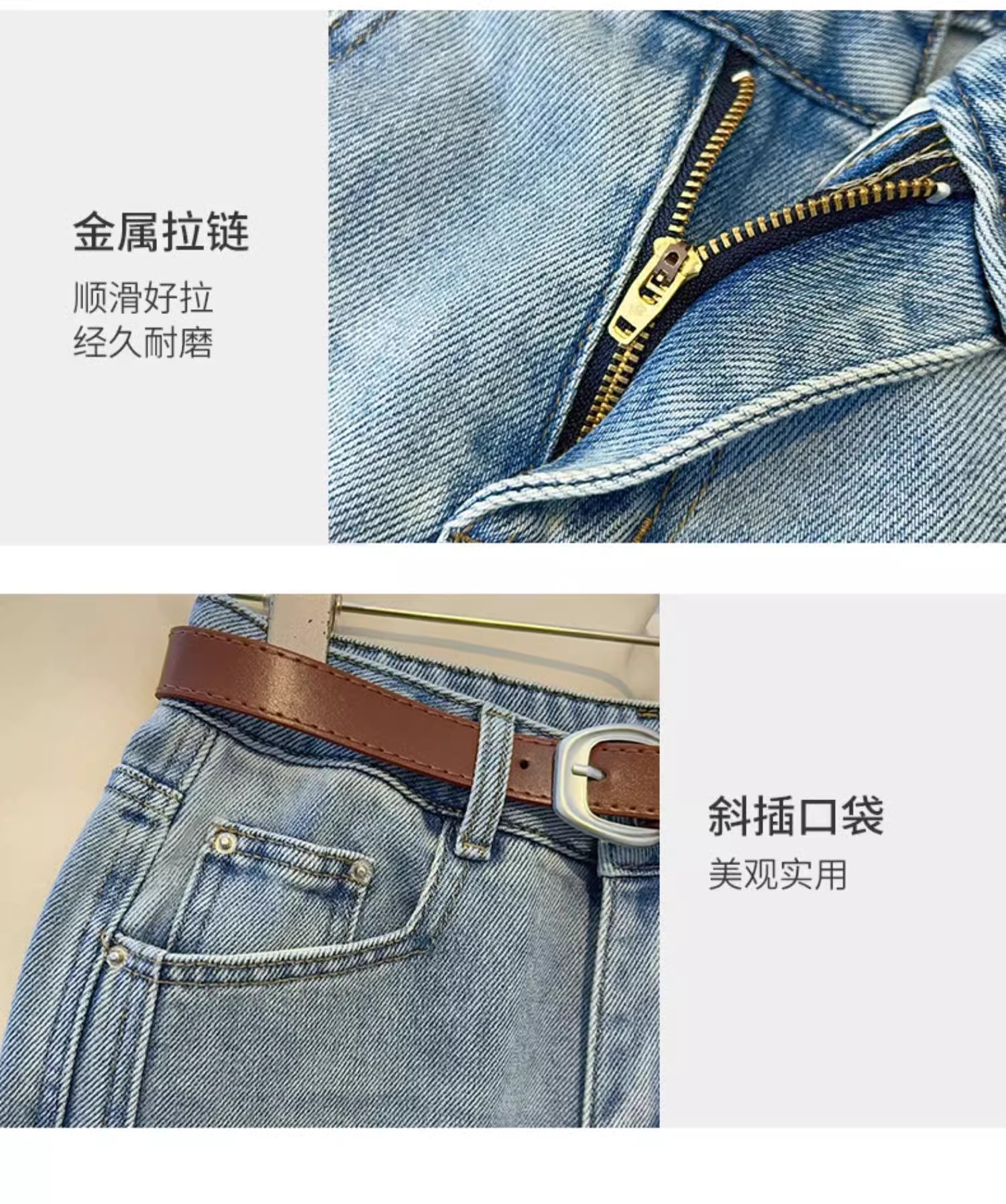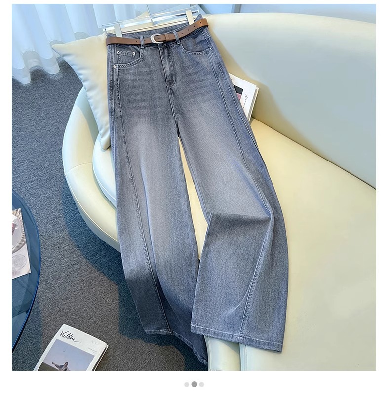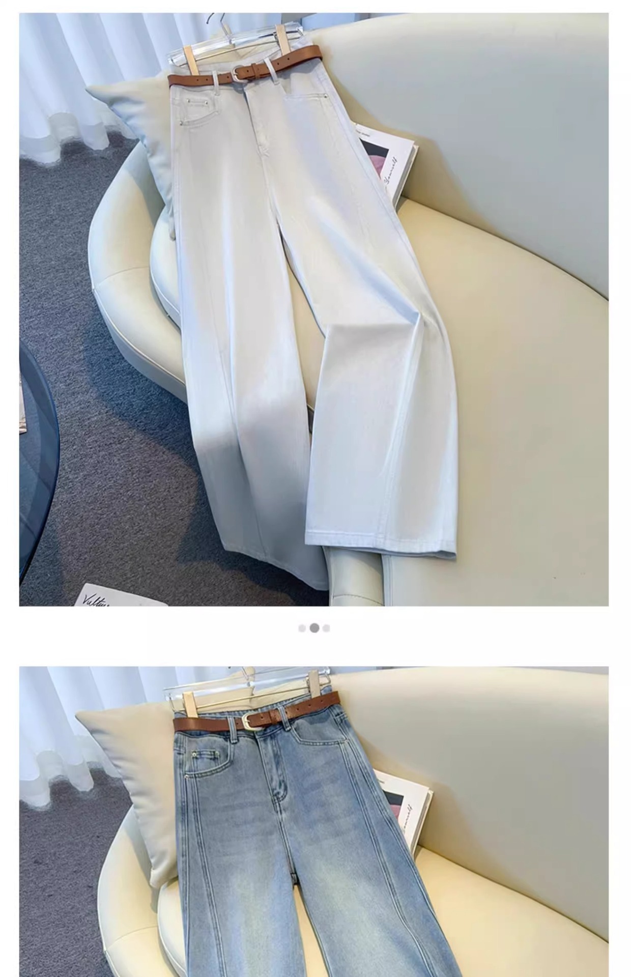 A24353浅色阔腿牛仔裤女夏季2025新款复古爆款裤子拖地裤宽松休闲直筒裤