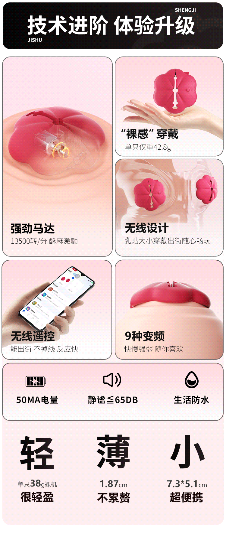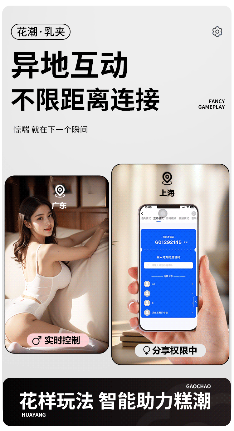 【女用器具】谜姬 智控花潮乳夹APP遥控穿戴乳房按摩