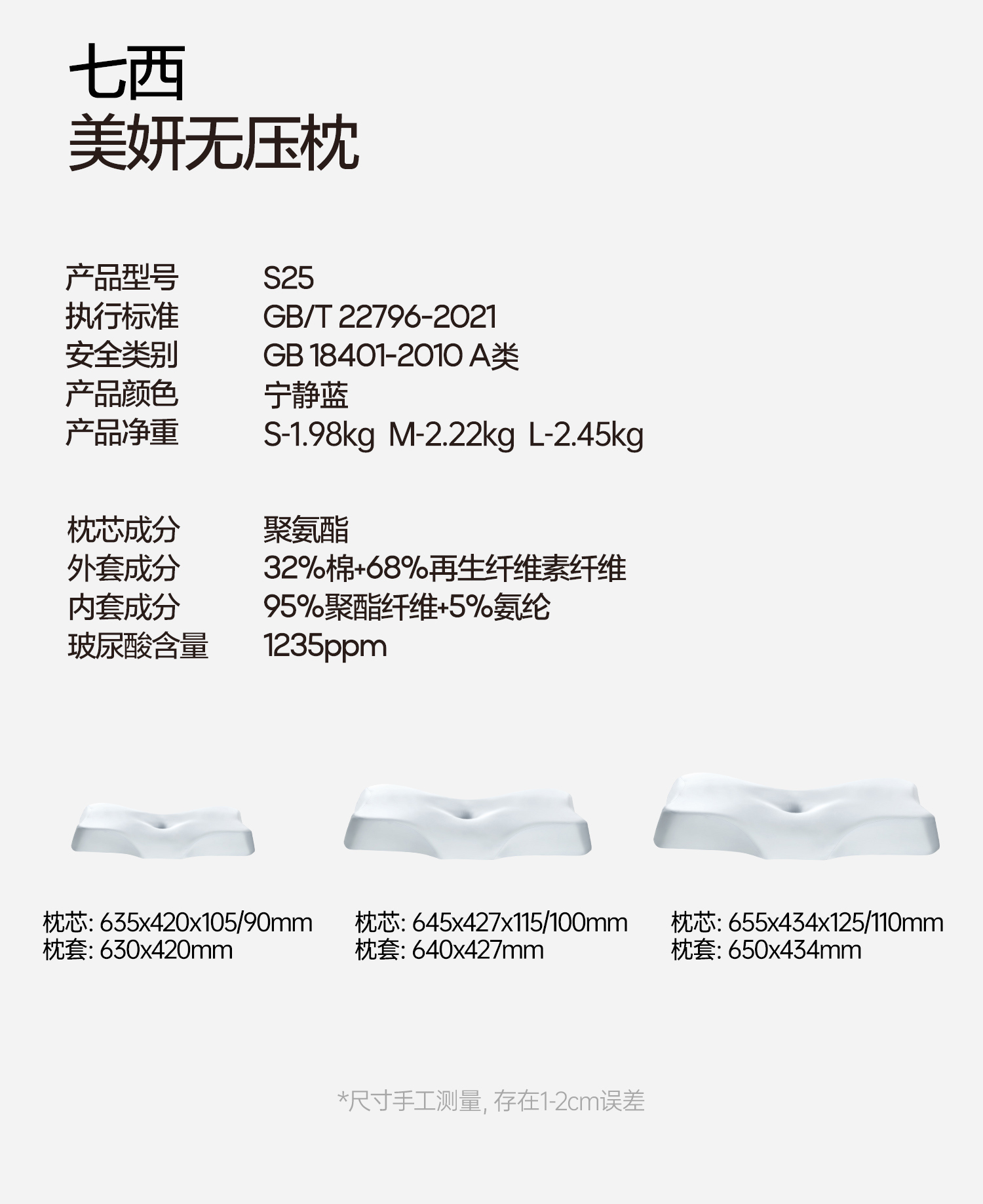 7C七西美妍释压枕记忆棉无压枕头护颈椎助睡眠枕头枕芯侧睡护颈枕
