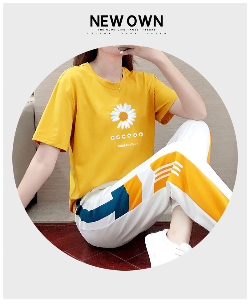 HNE-A095新款小雏菊网红时尚潮流韩版宽松棉质两件套