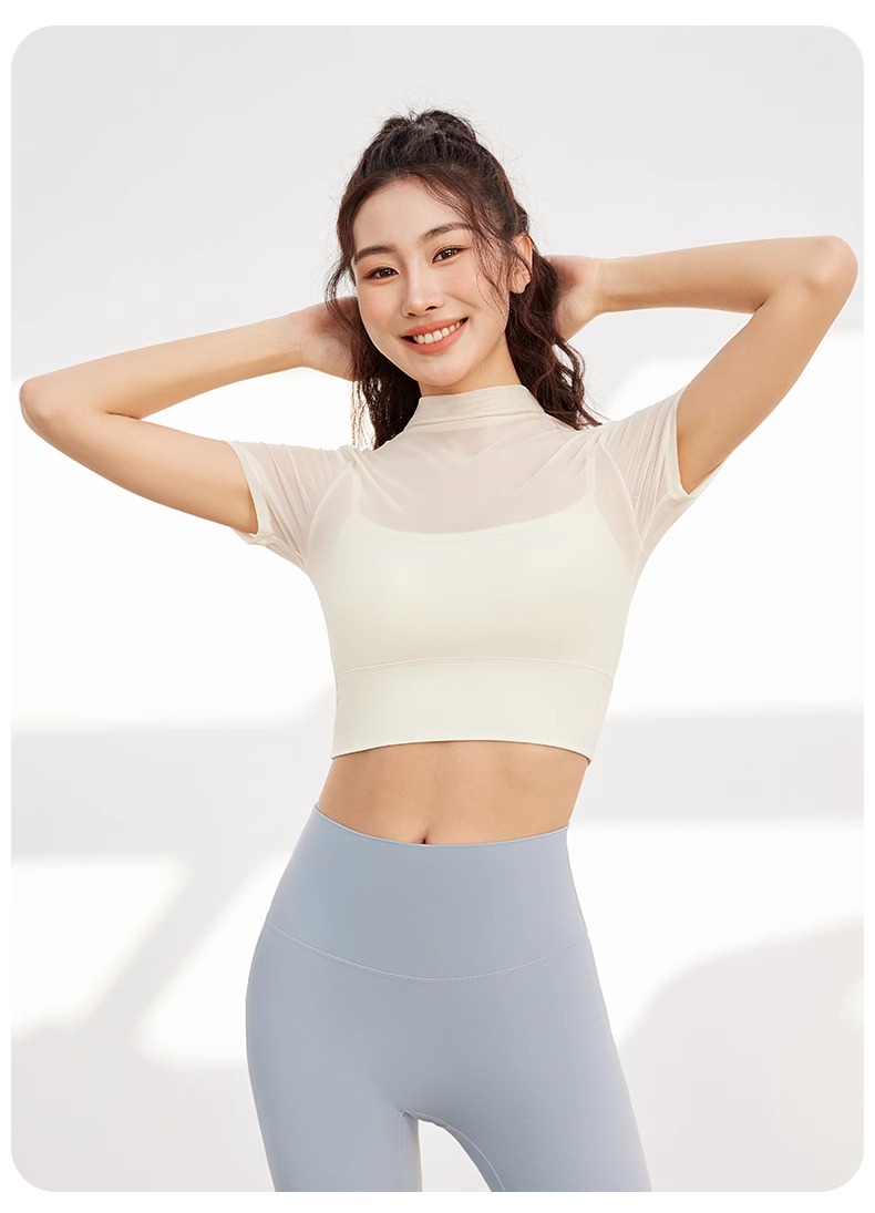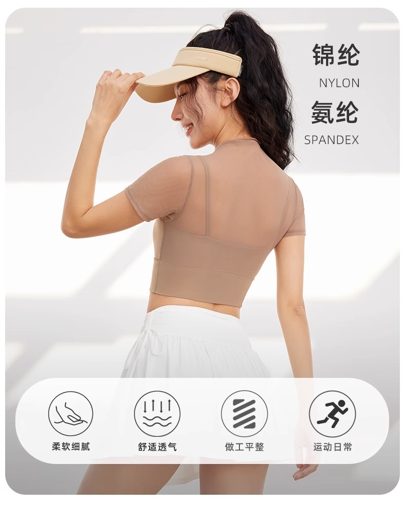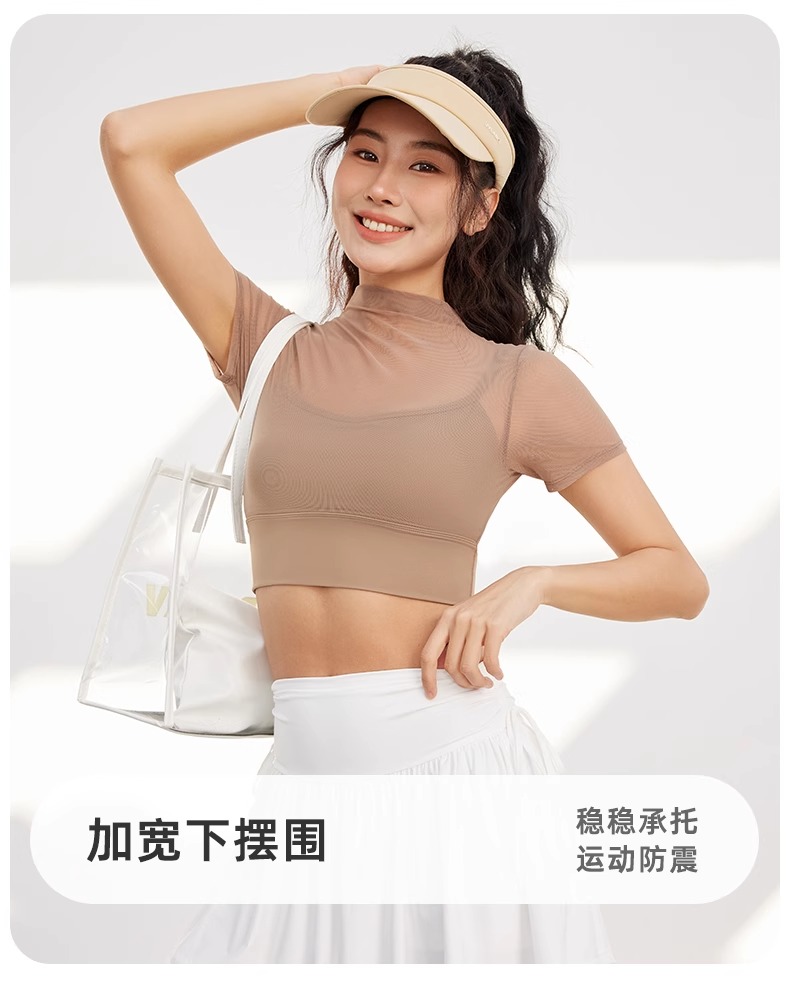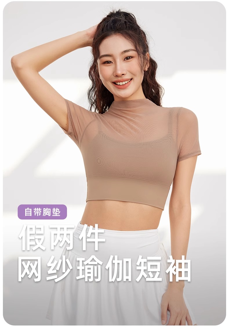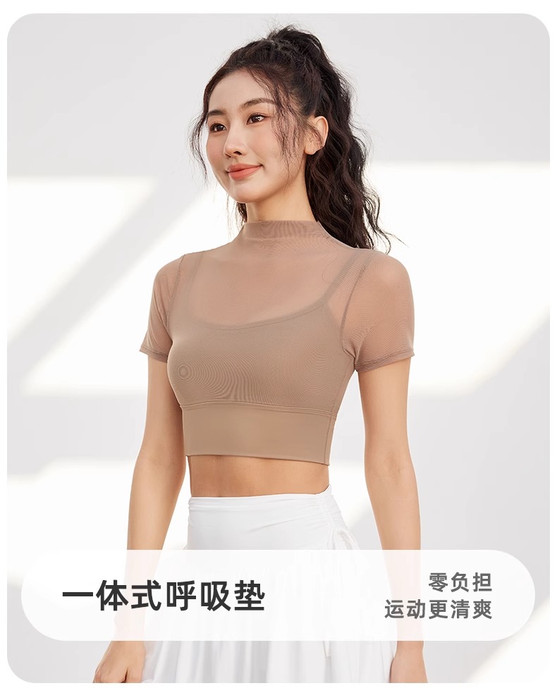 跃牌【禅语梵心】性感网纱瑜伽服短袖带胸垫跑步速干运动文胸DX2585
