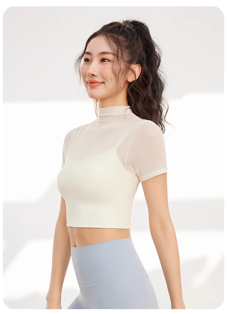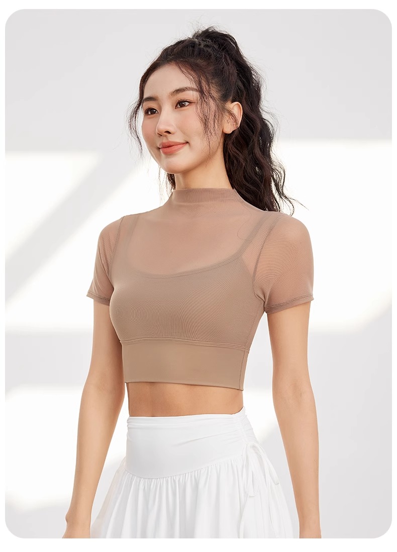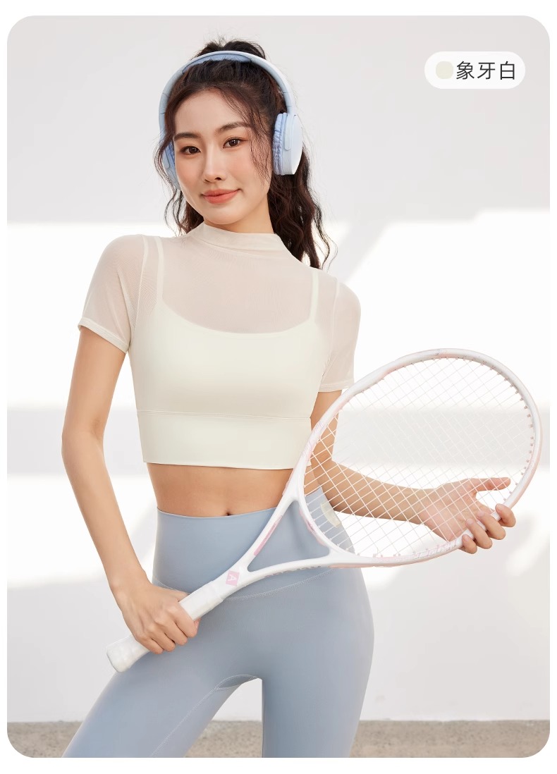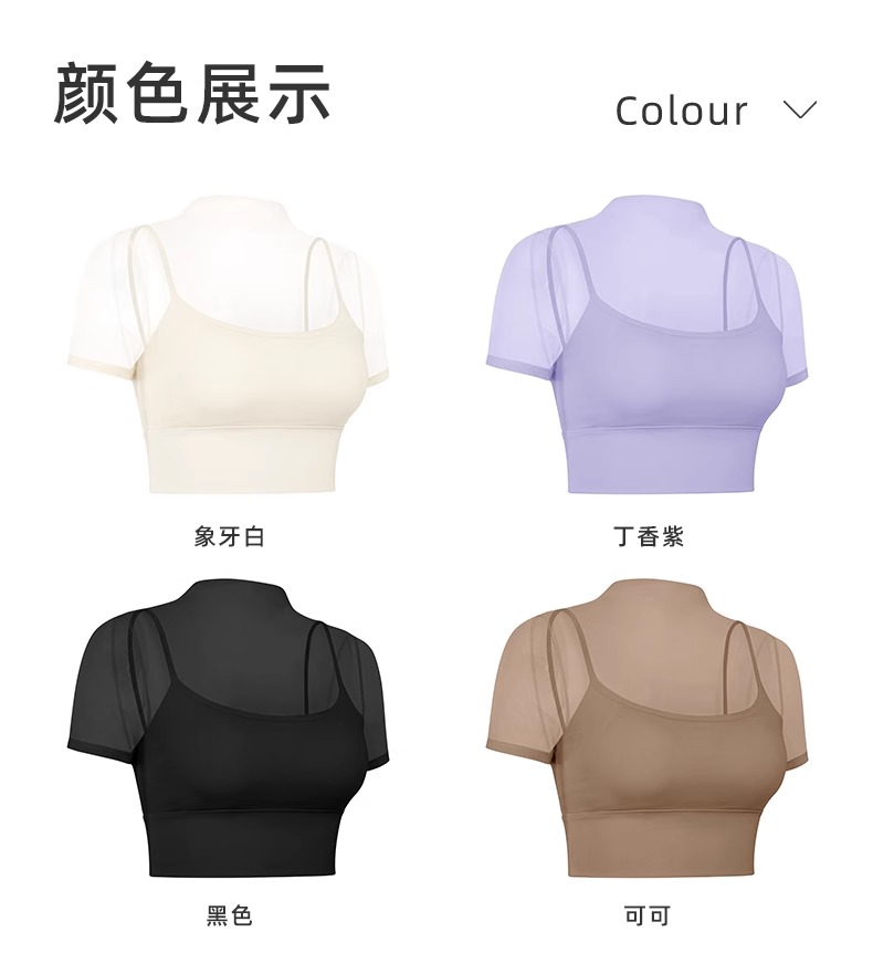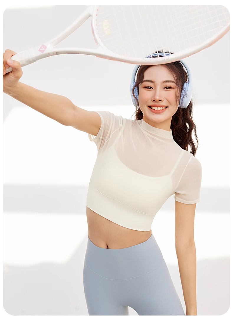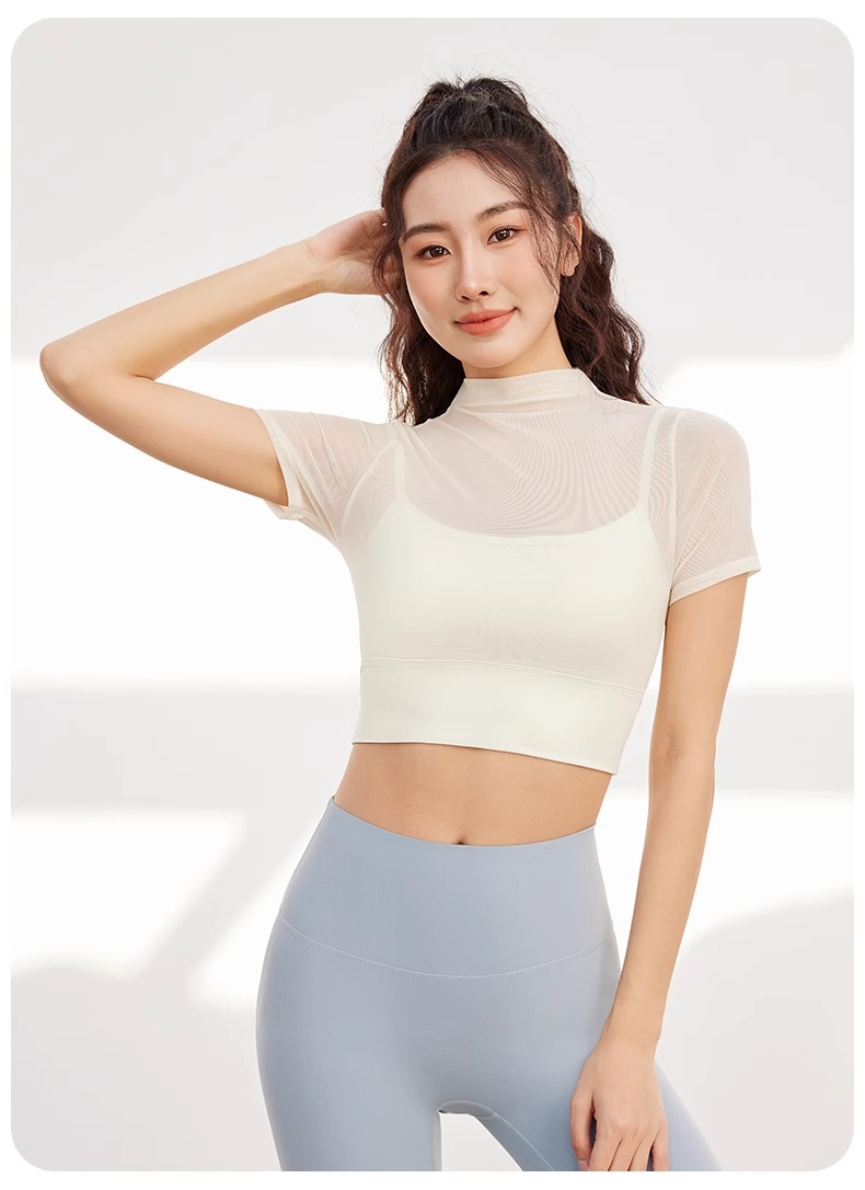 跃牌【禅语梵心】性感网纱瑜伽服短袖带胸垫跑步速干运动文胸DX2585