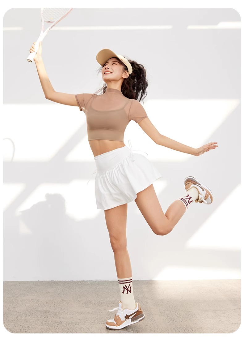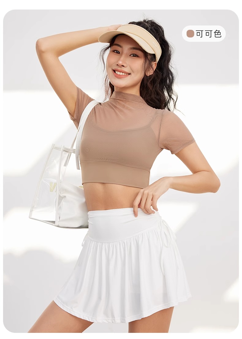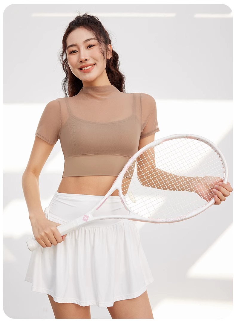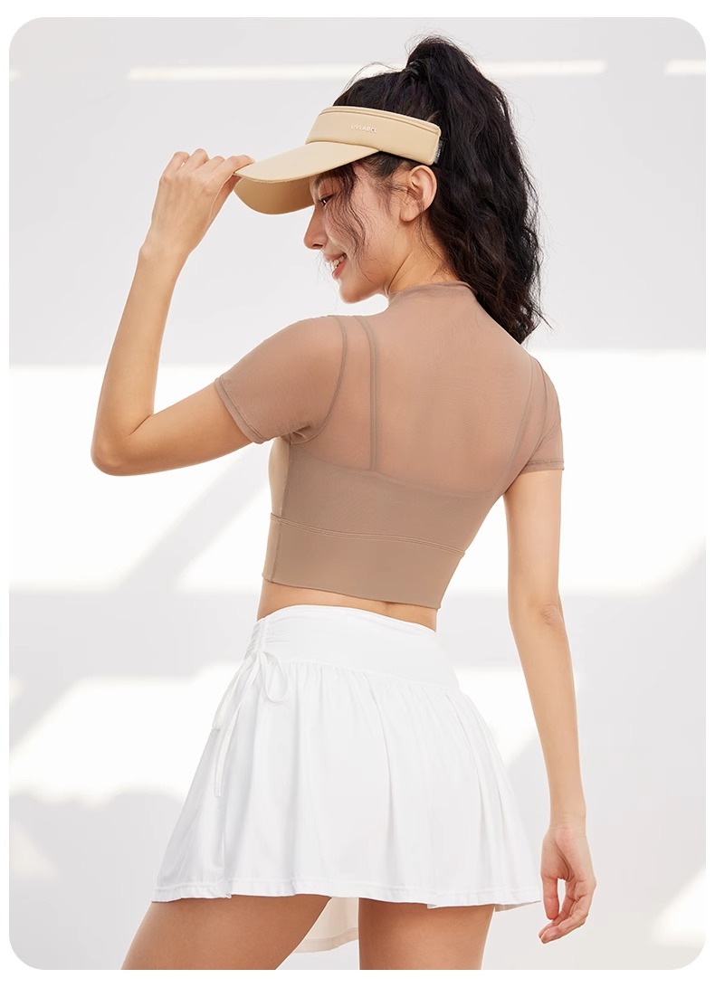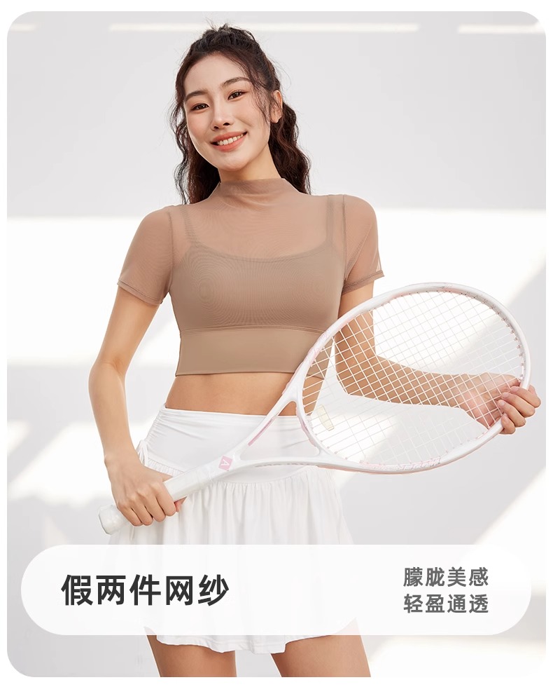 跃牌【禅语梵心】性感网纱瑜伽服短袖带胸垫跑步速干运动文胸DX2585