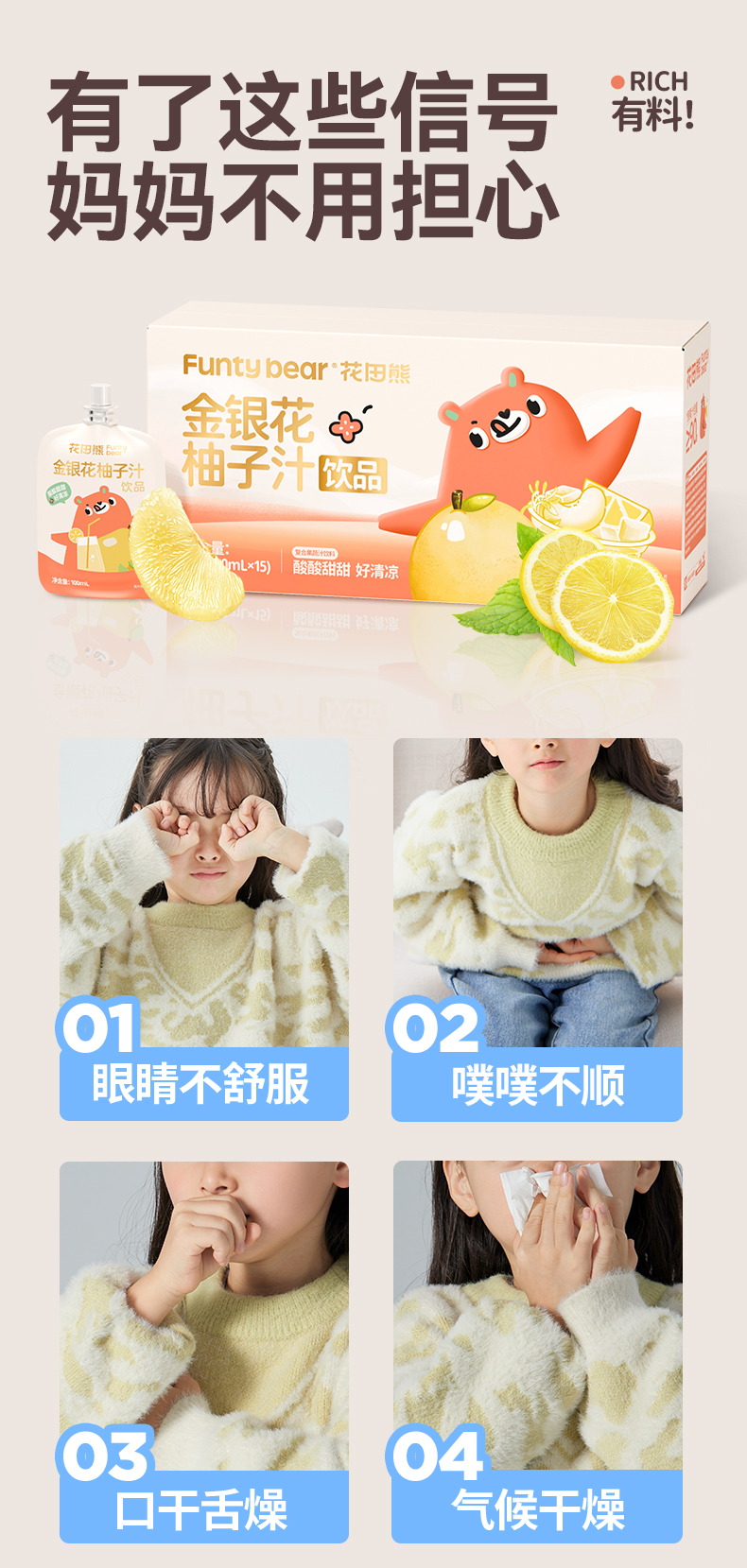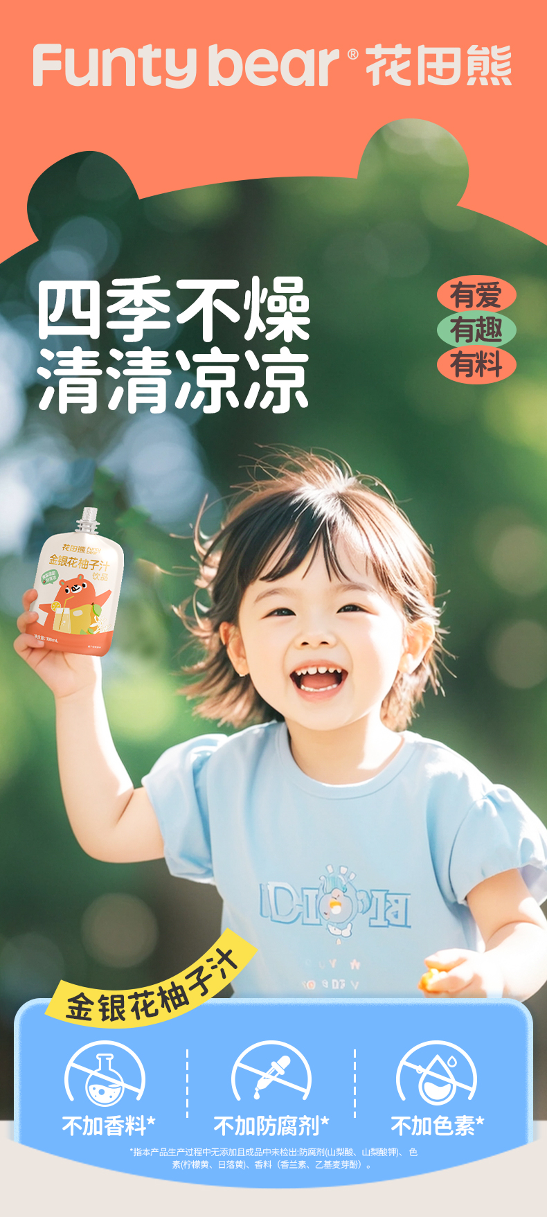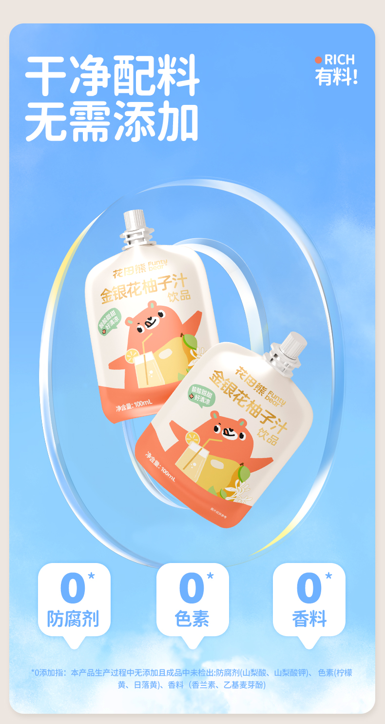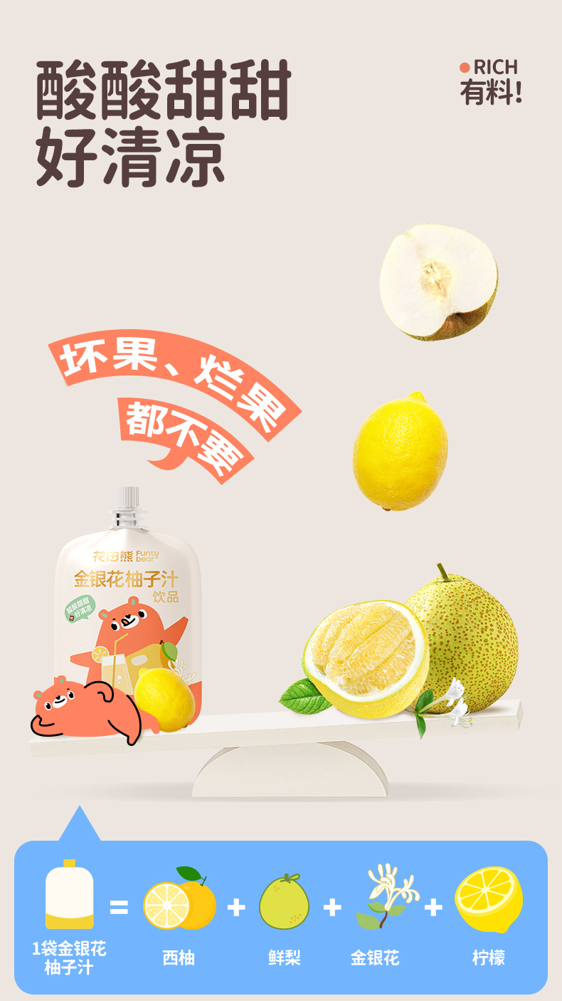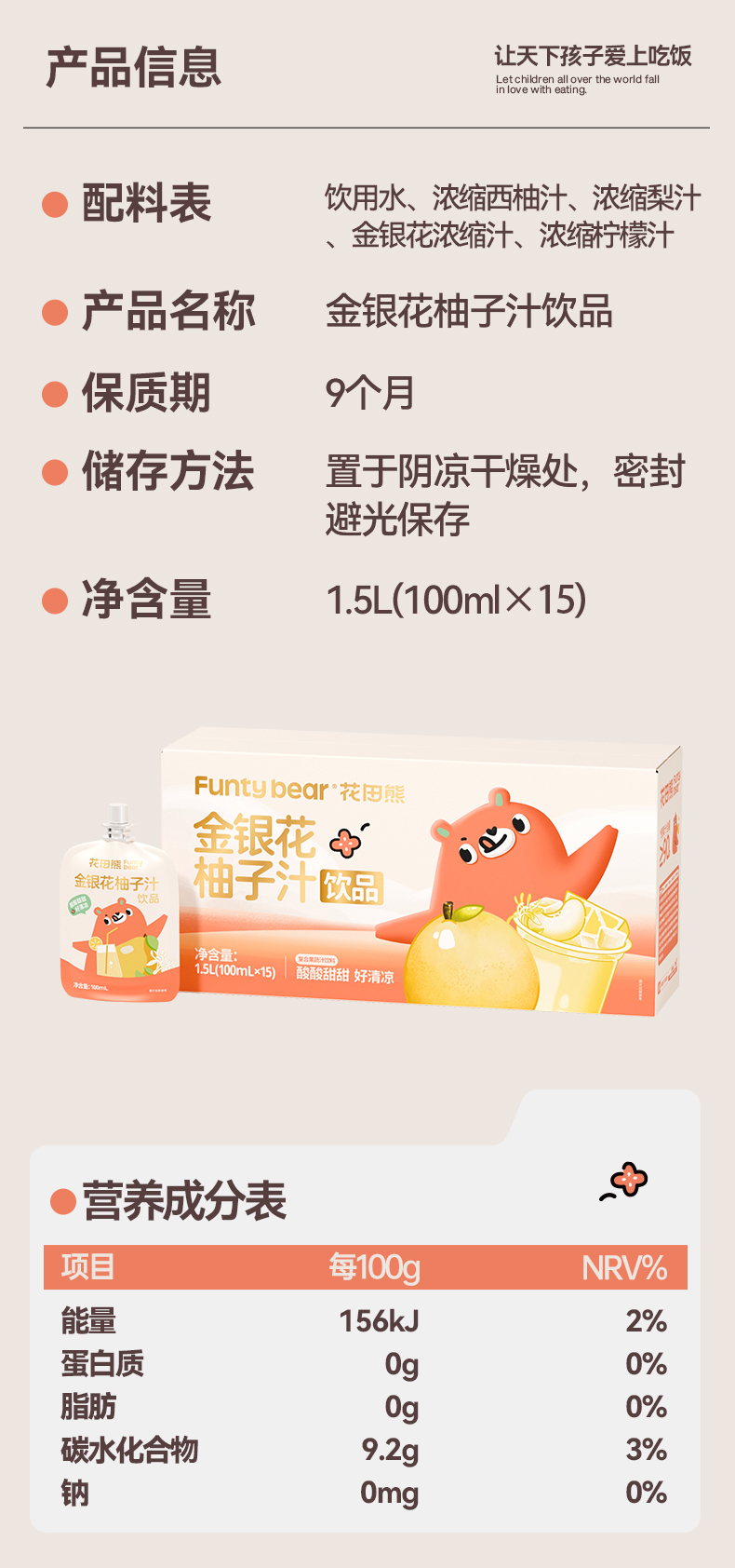 花田熊金银花柚子汁茶水0脂儿童成人植物果汁饮料官方正品旗舰店fs
