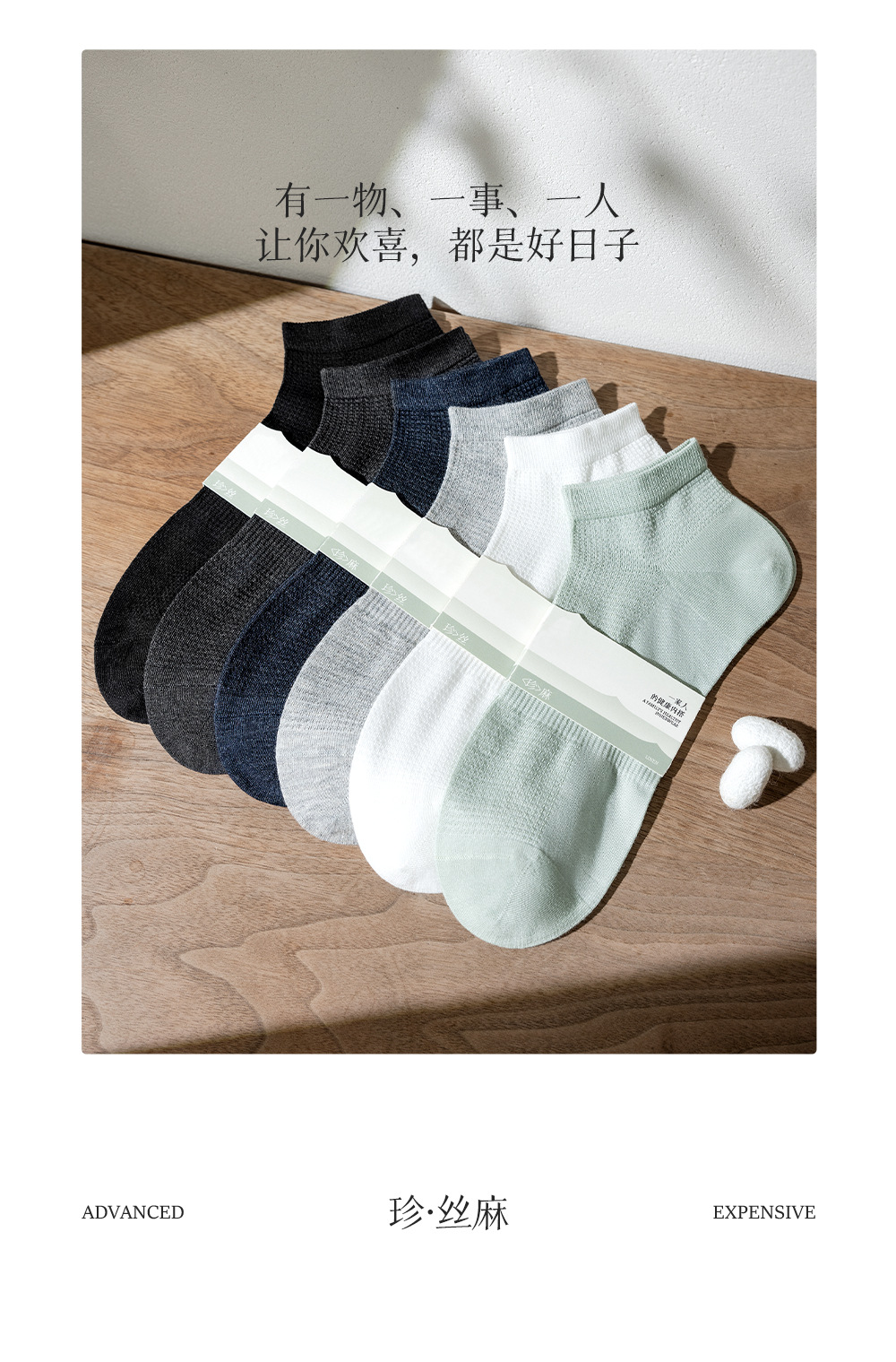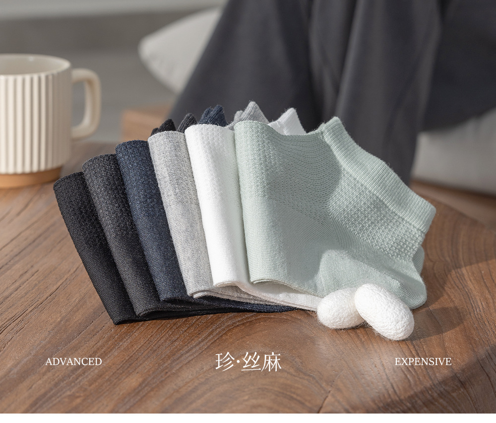 雀说 5双[丝麻+桑蚕丝]袜子男士夏季薄款防臭吸汗短袜1885