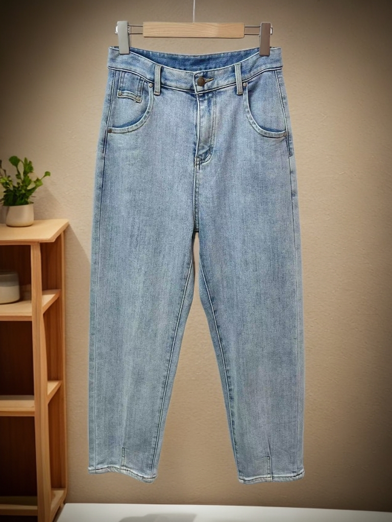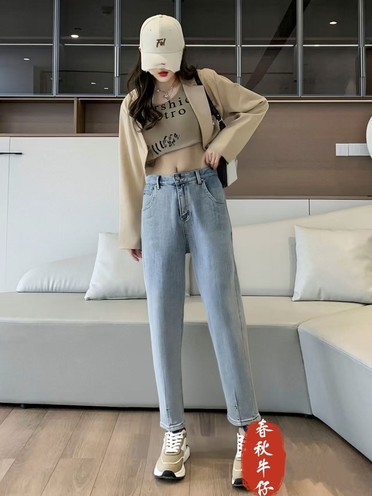 七夕福利-NO退{牛仔裤}(春秋款)内里磨毛蓝色牛仔小脚裤-喜出