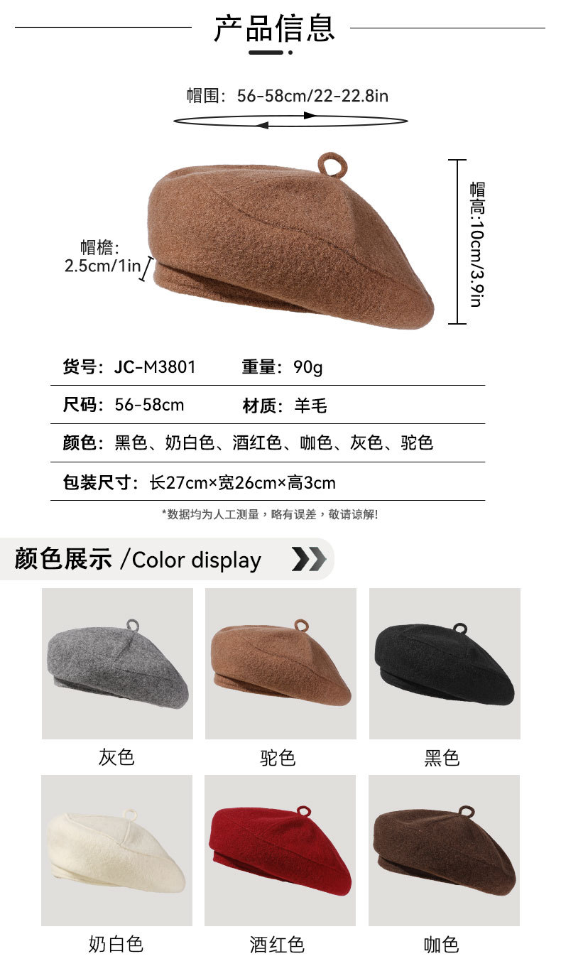 雀说 复古文艺优雅贝雷帽画家帽A10339 商品图2