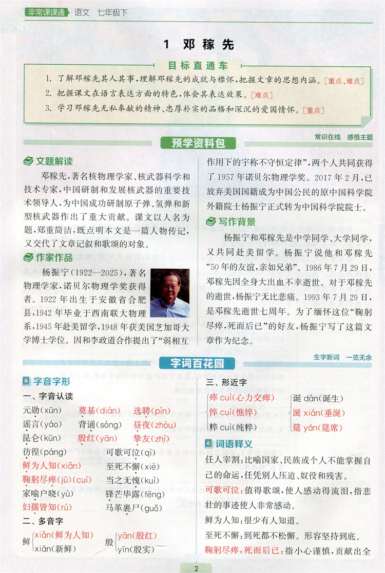 2026年春 非常课课通语文七年级下册 人教版 7下 课内课外教材全解 课本解读 初中生教辅辅导资料 教学参考
