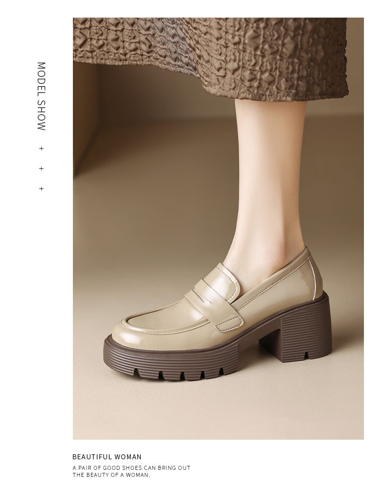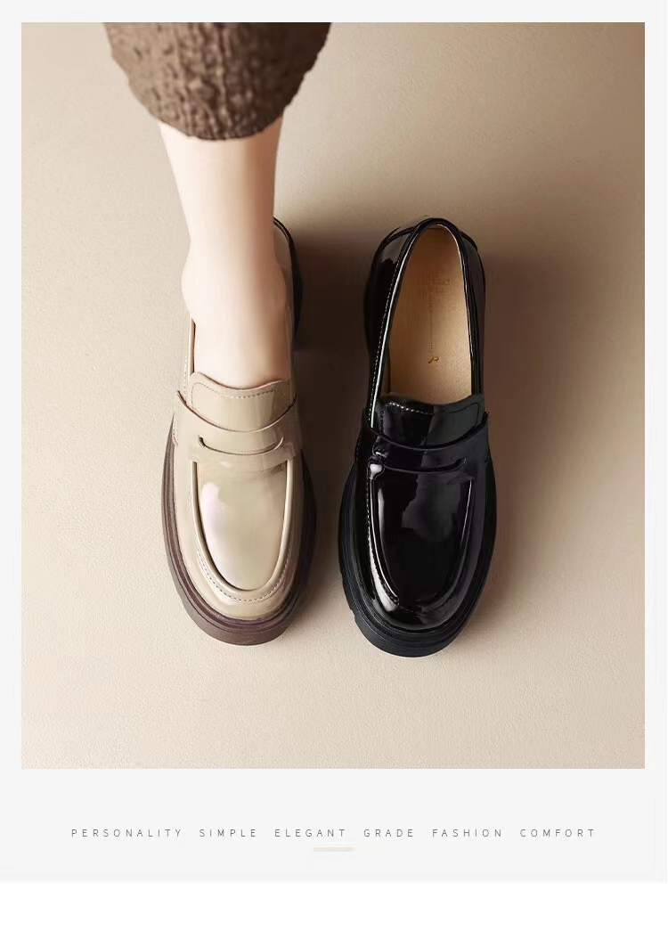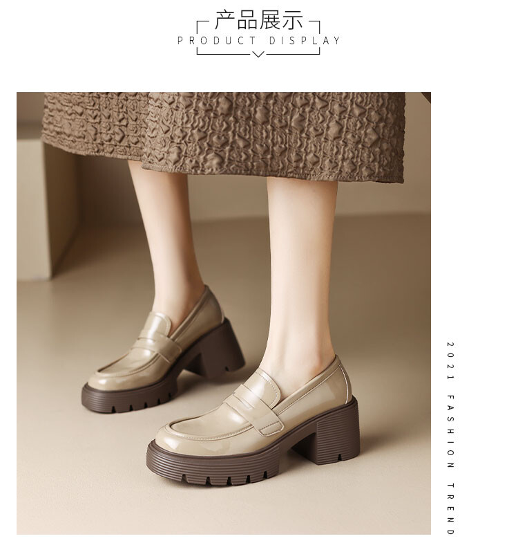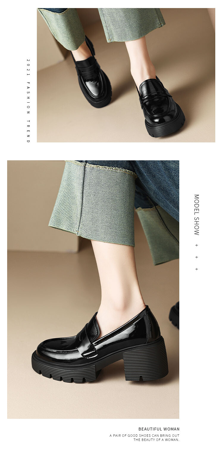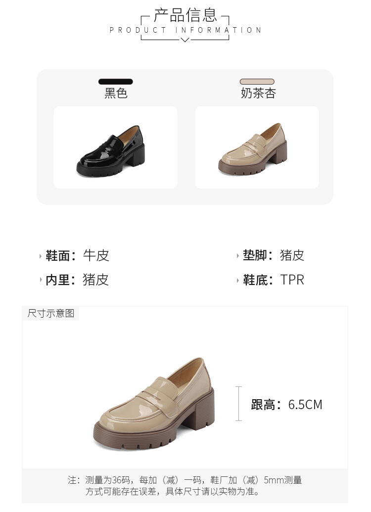 【预售5天】英伦风厚底小皮鞋女时尚粗跟乐福鞋新款春季高跟圆头懒人单鞋HCYYHD&3356