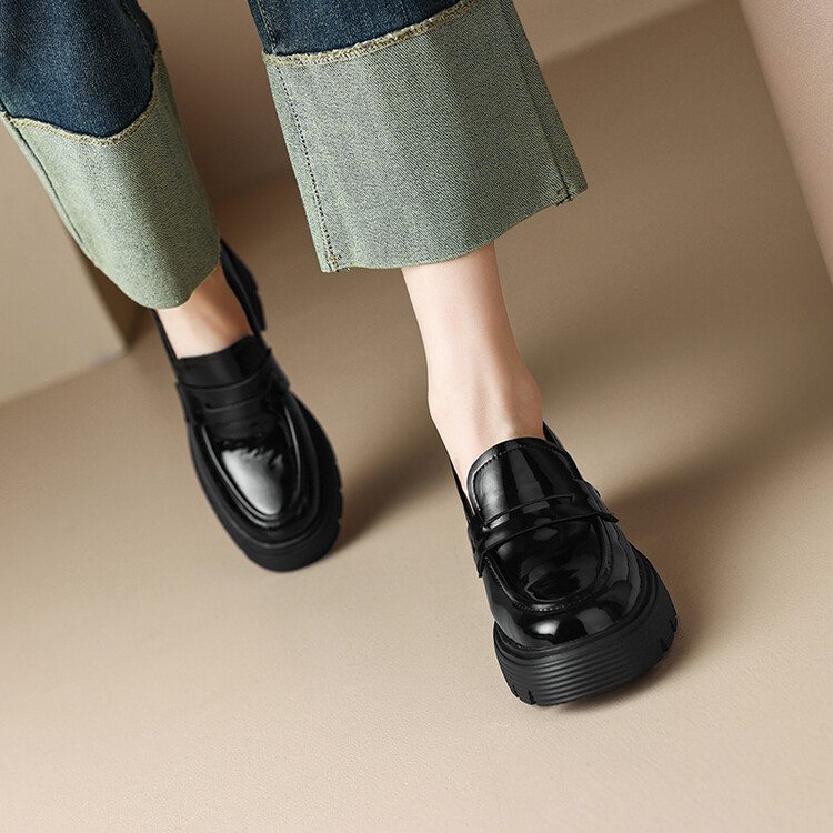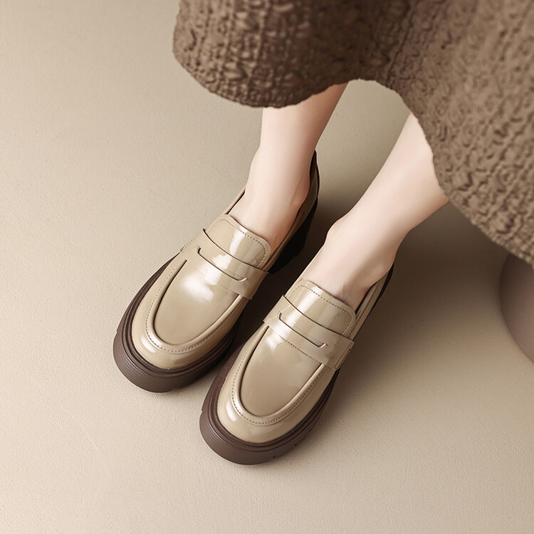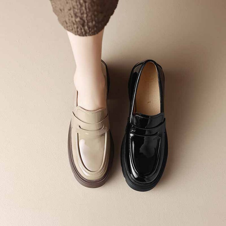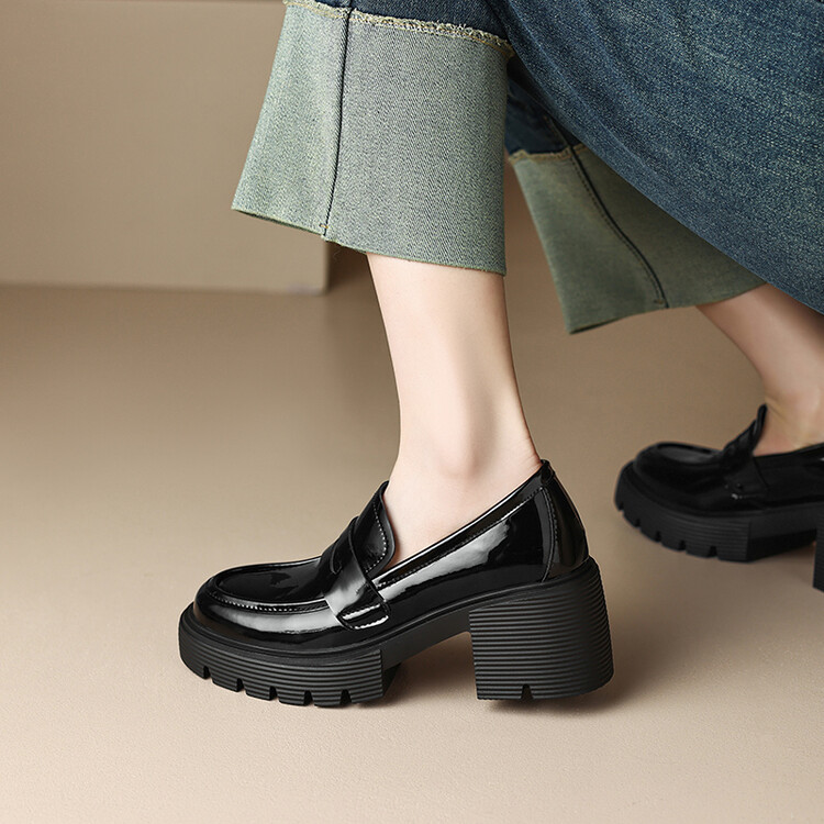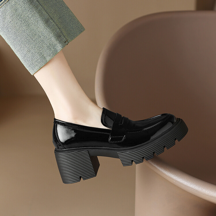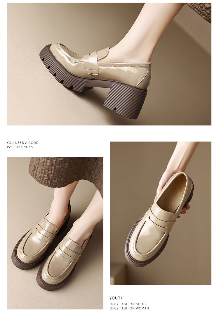 【预售5天】英伦风厚底小皮鞋女时尚粗跟乐福鞋新款春季高跟圆头懒人单鞋HCYYHD&3356