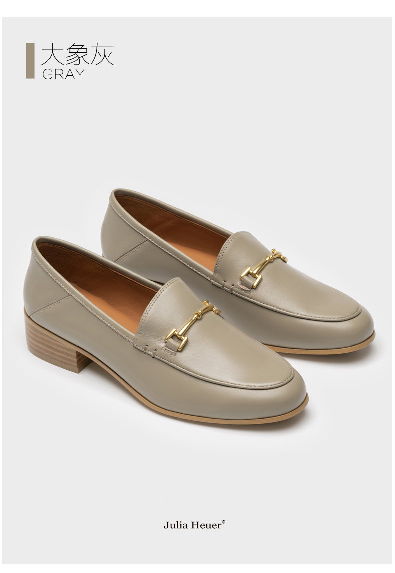 Julia Heuer 圆头粗跟马衔扣乐福鞋 2268