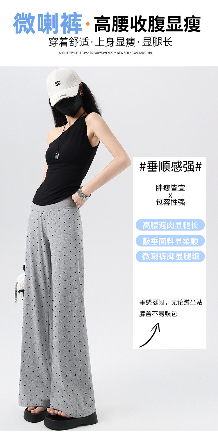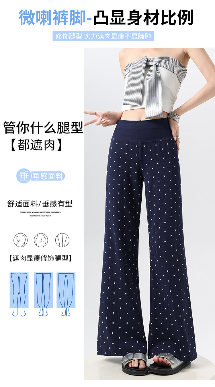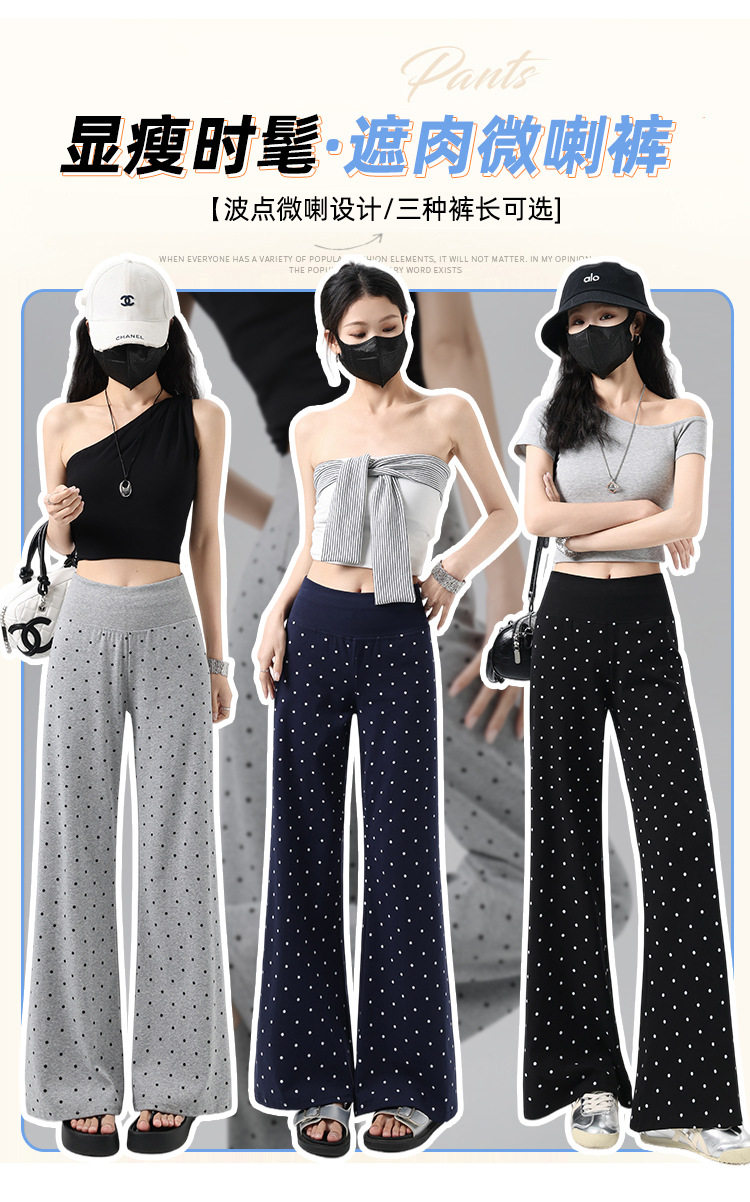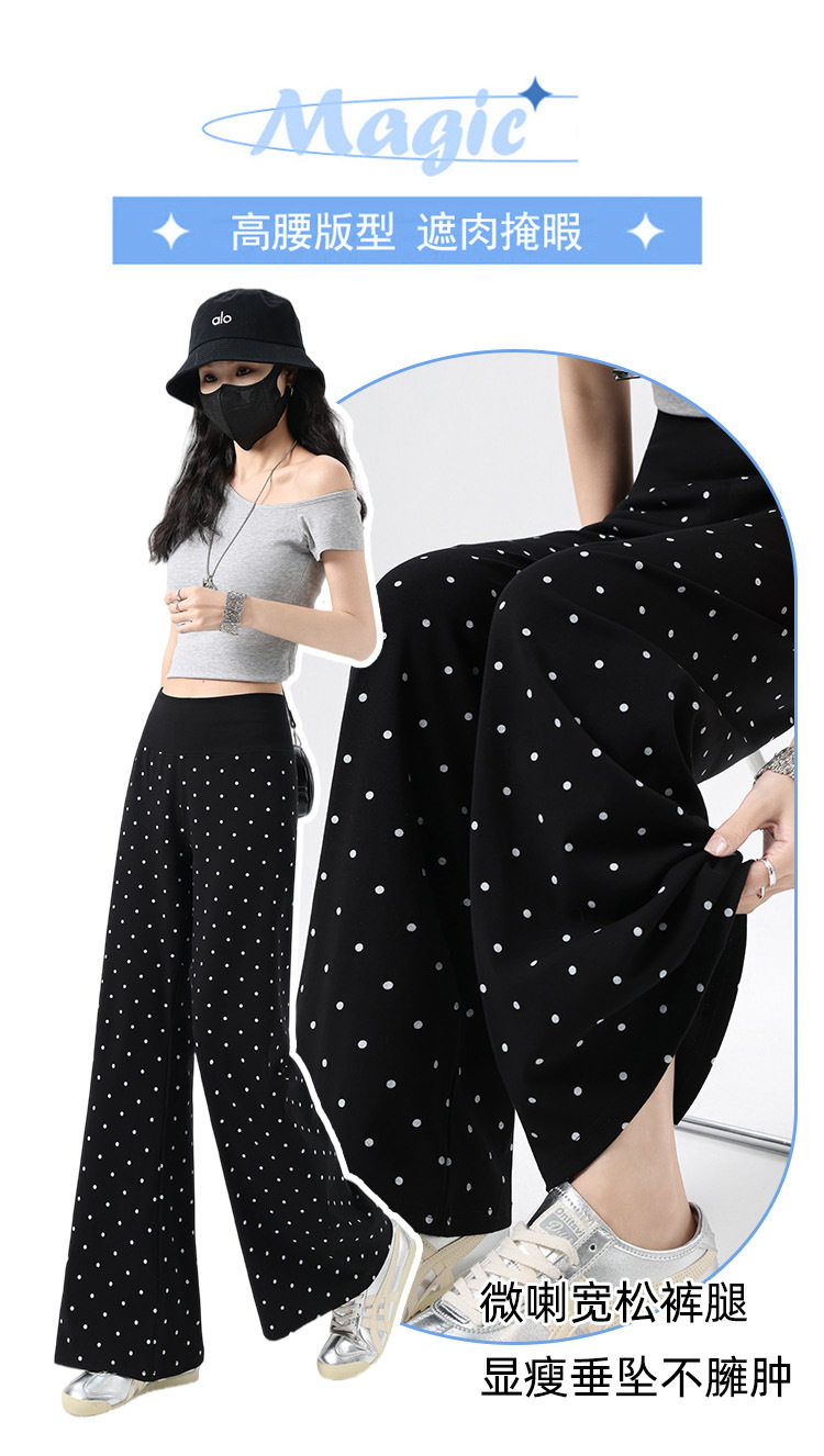 2026实拍春夏季新款波点休闲微喇裤女高腰显瘦遛弯裤直筒拖地裤子 NDK-J2580