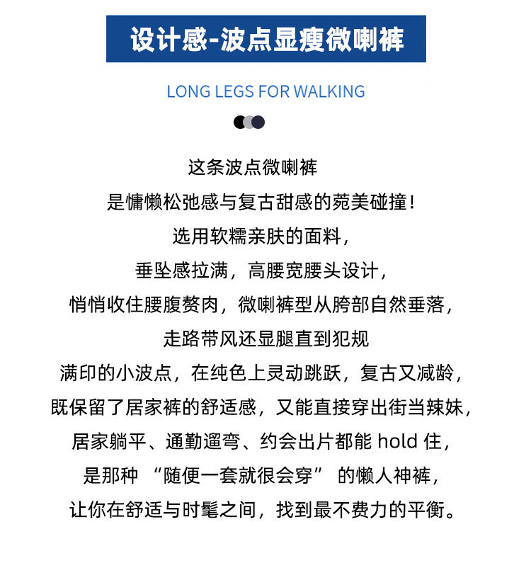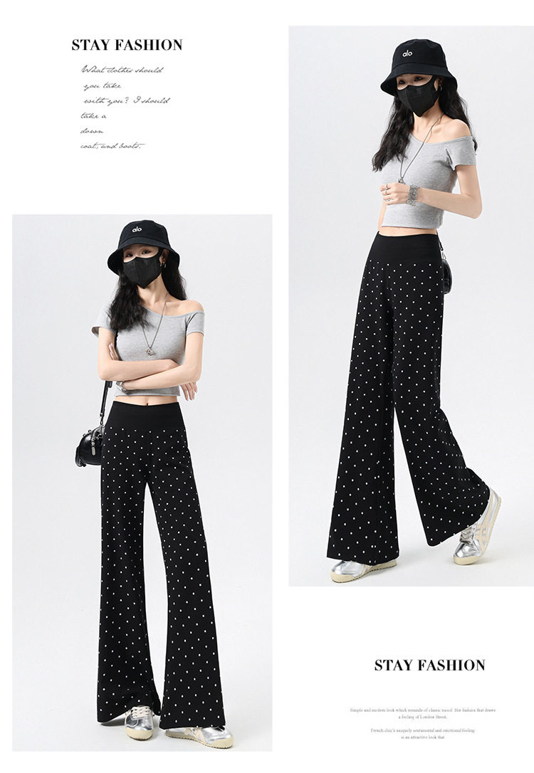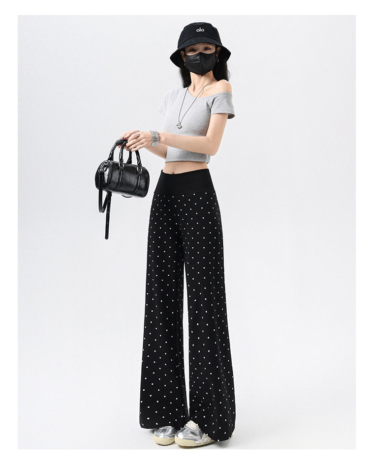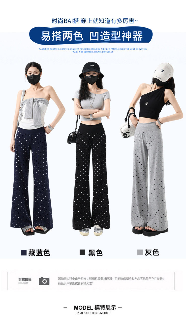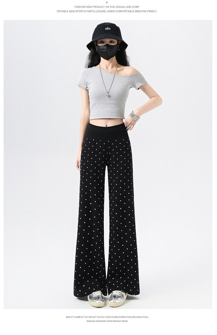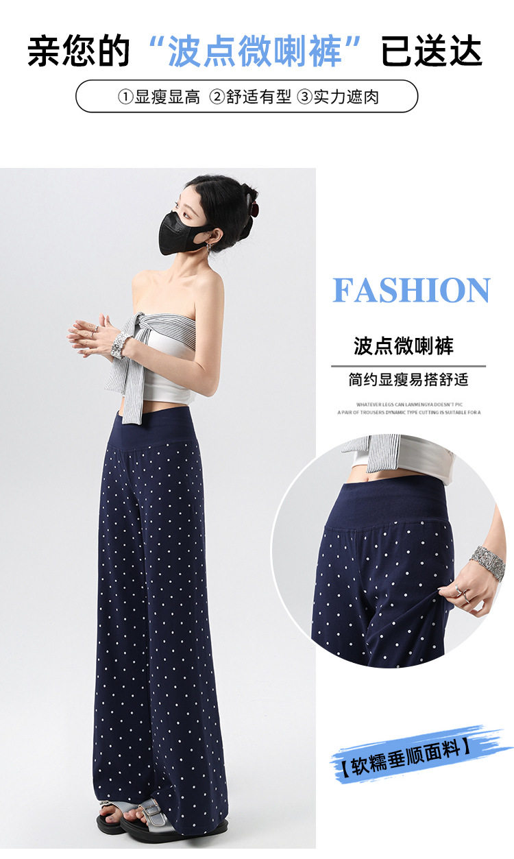 2026实拍春夏季新款波点休闲微喇裤女高腰显瘦遛弯裤直筒拖地裤子 NDK-J2580