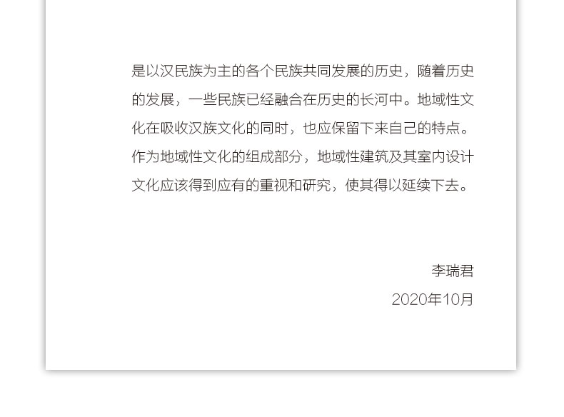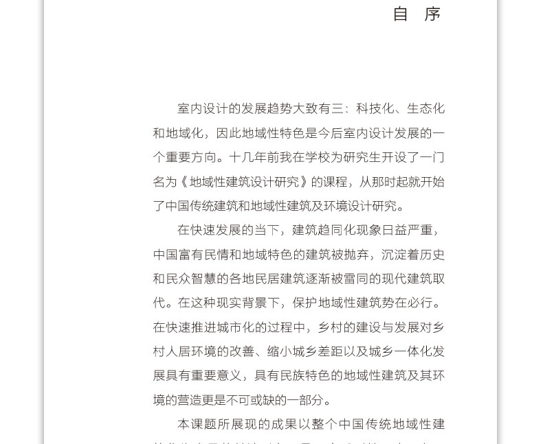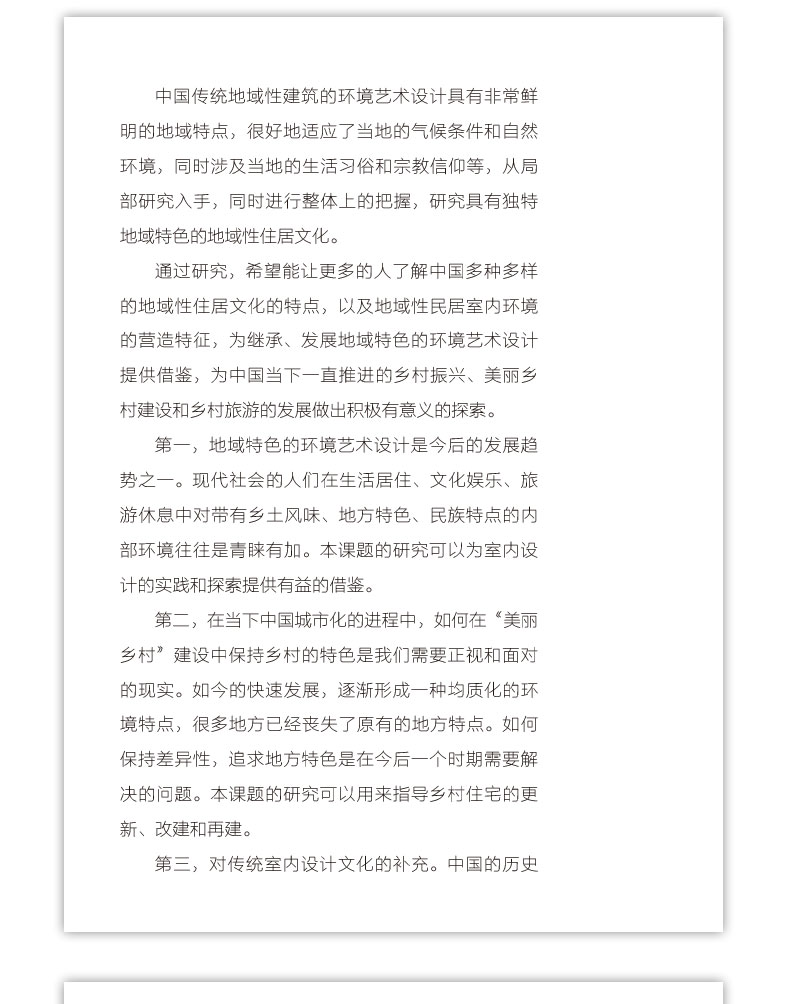 通过对这些中国特色民居的研究,希望能让更多的人了解中国多种多样的地域性住居文化的特点,以及地域性民居室内环境的营造特征,为继承、发展地域特色的环境艺术设计提供借鉴,为中国当下一直推进的乡村振兴、美丽乡村建设和乡村旅游的发展做出积极有意义的探索。