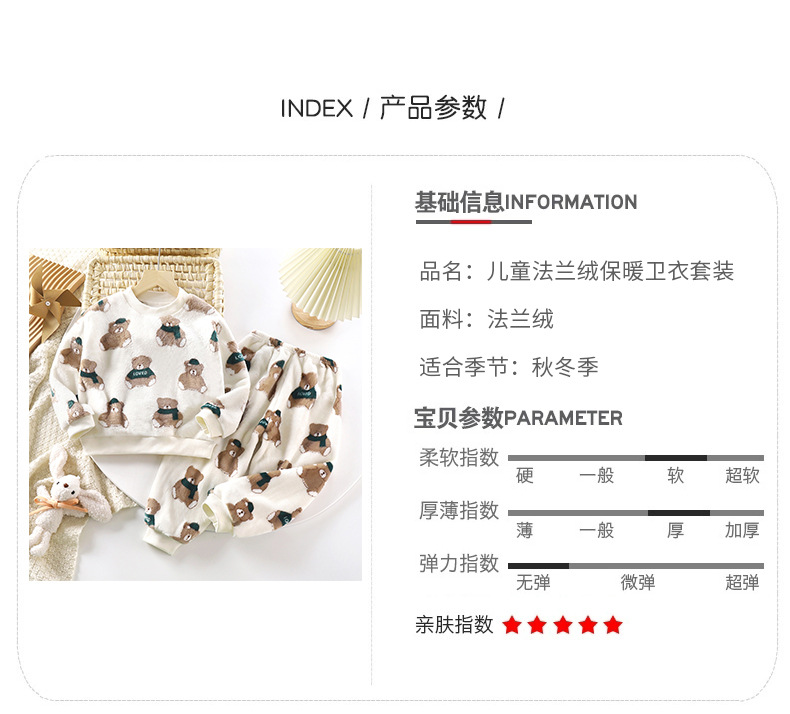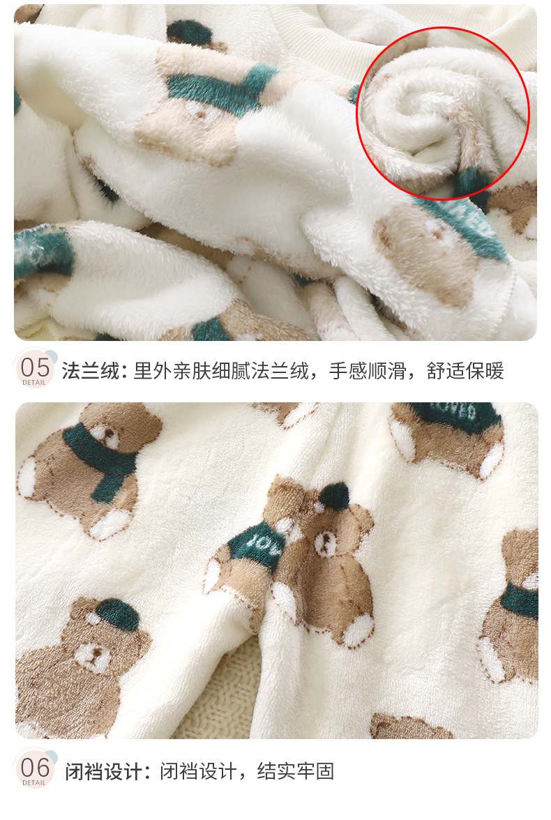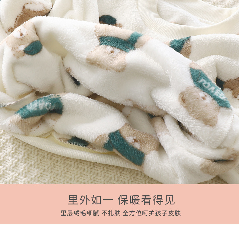 【秋冬保暖!一套搞定】卡通图案,萌趣可爱,法兰绒儿童睡衣套装韩版男女童加绒加厚家居服中大童保暖内衣套装。rb