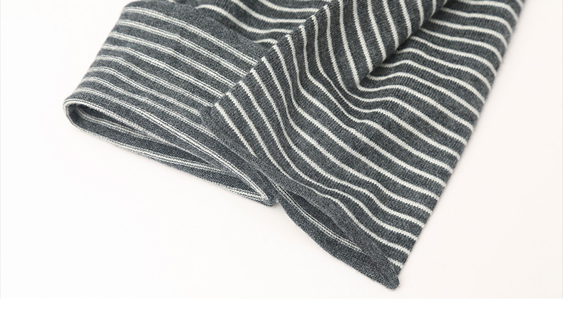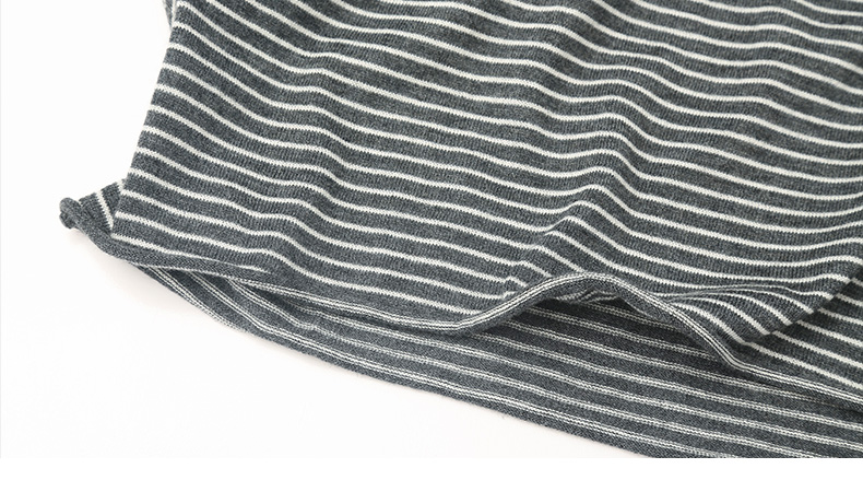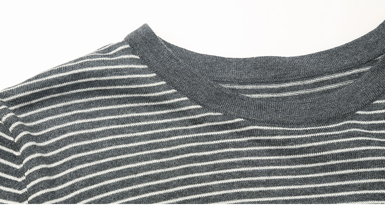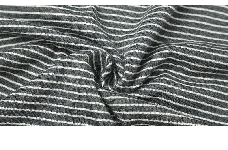 灰调细条纹圆领长袖 T 恤 修身弹力打底衫 简约通勤风春秋基础款内搭上衣