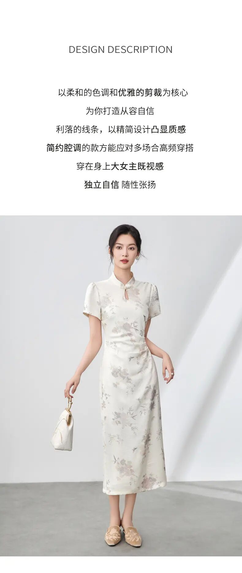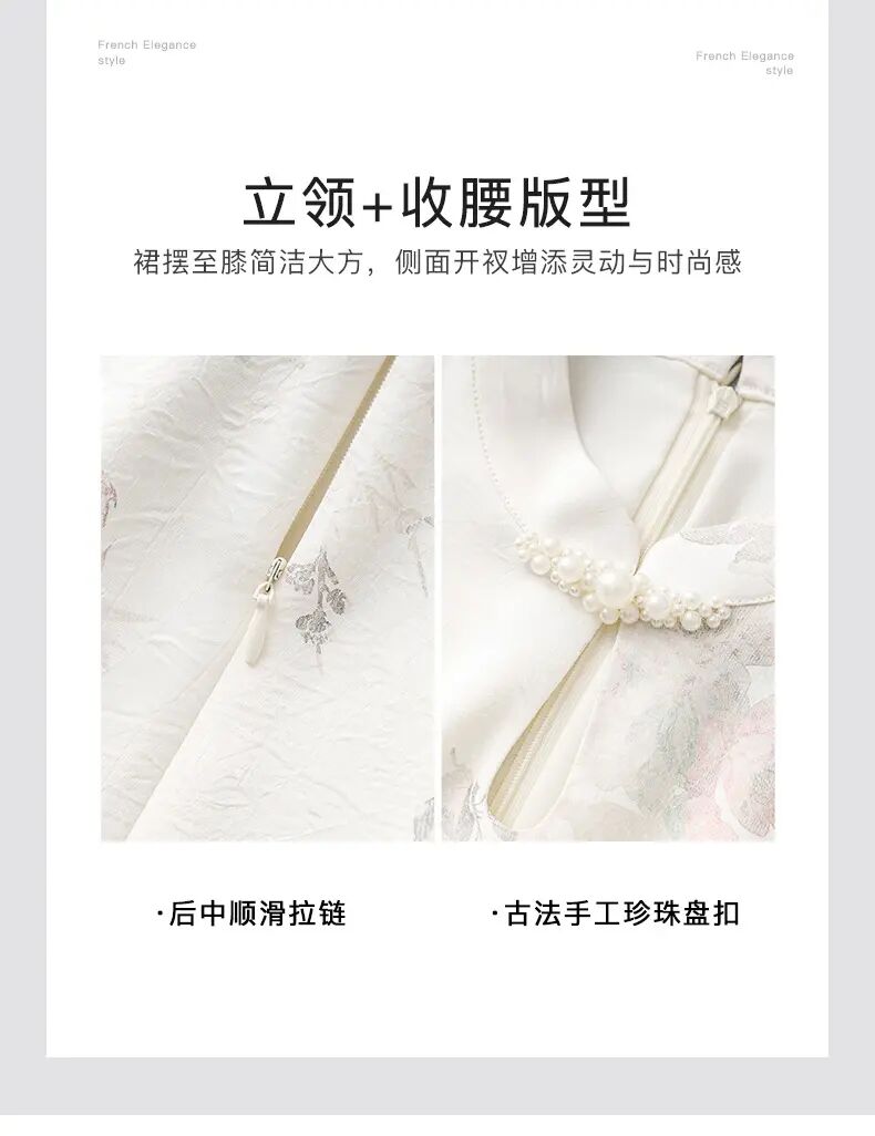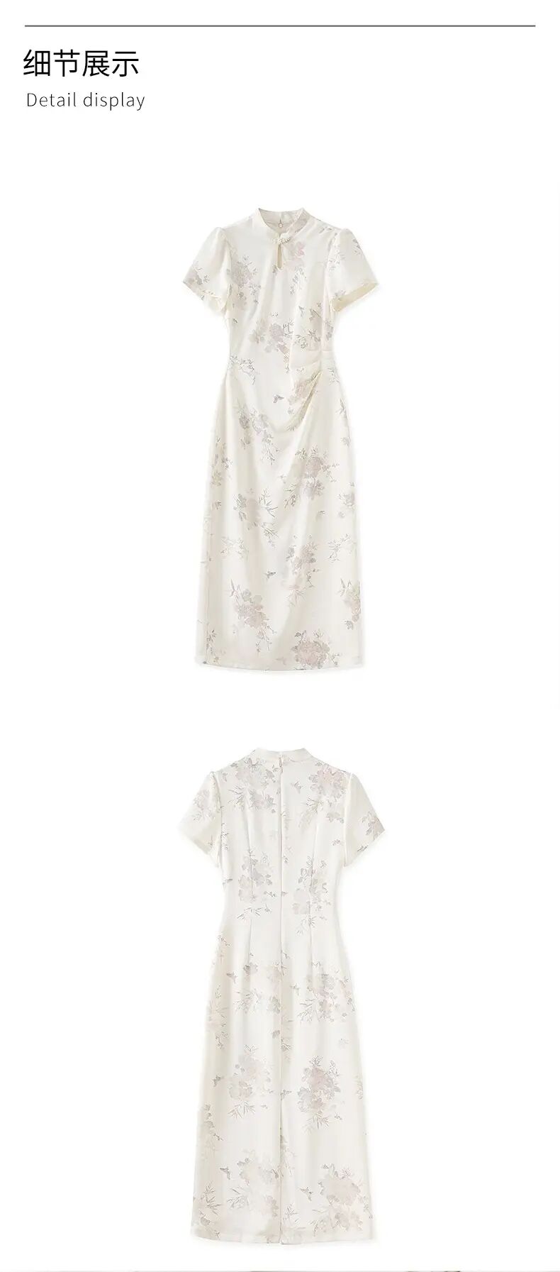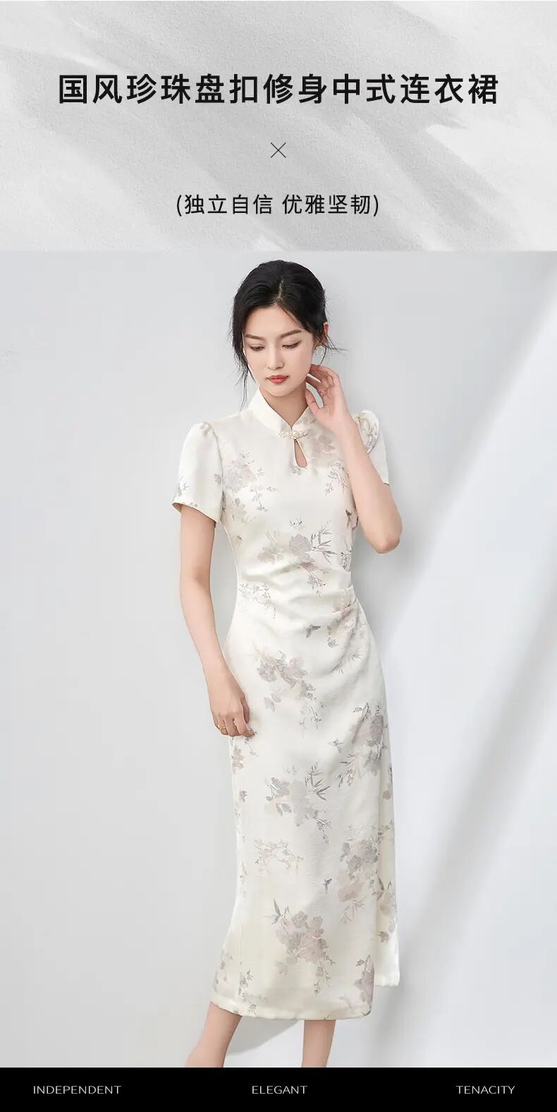【高货wl】全新升级【铂金会员321/天猫429/差价108】(01540) 洛诗琳新中式国风印花凉感珍珠盘扣立领连衣裙旗袍长裙