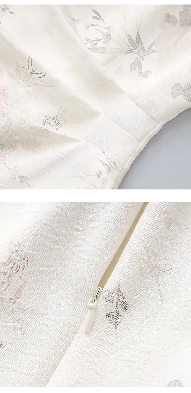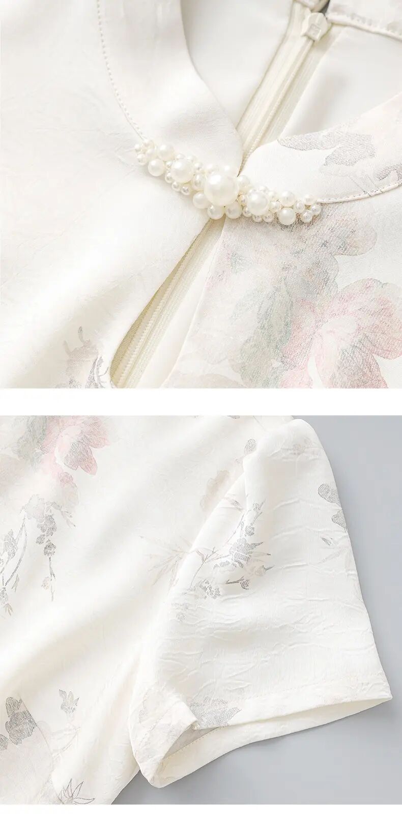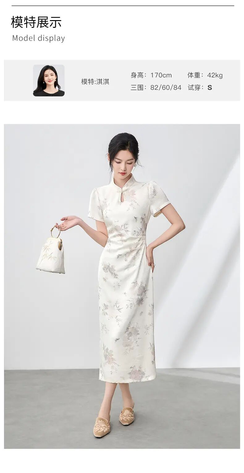【高货wl】全新升级【铂金会员321/天猫429/差价108】(01540) 洛诗琳新中式国风印花凉感珍珠盘扣立领连衣裙旗袍长裙