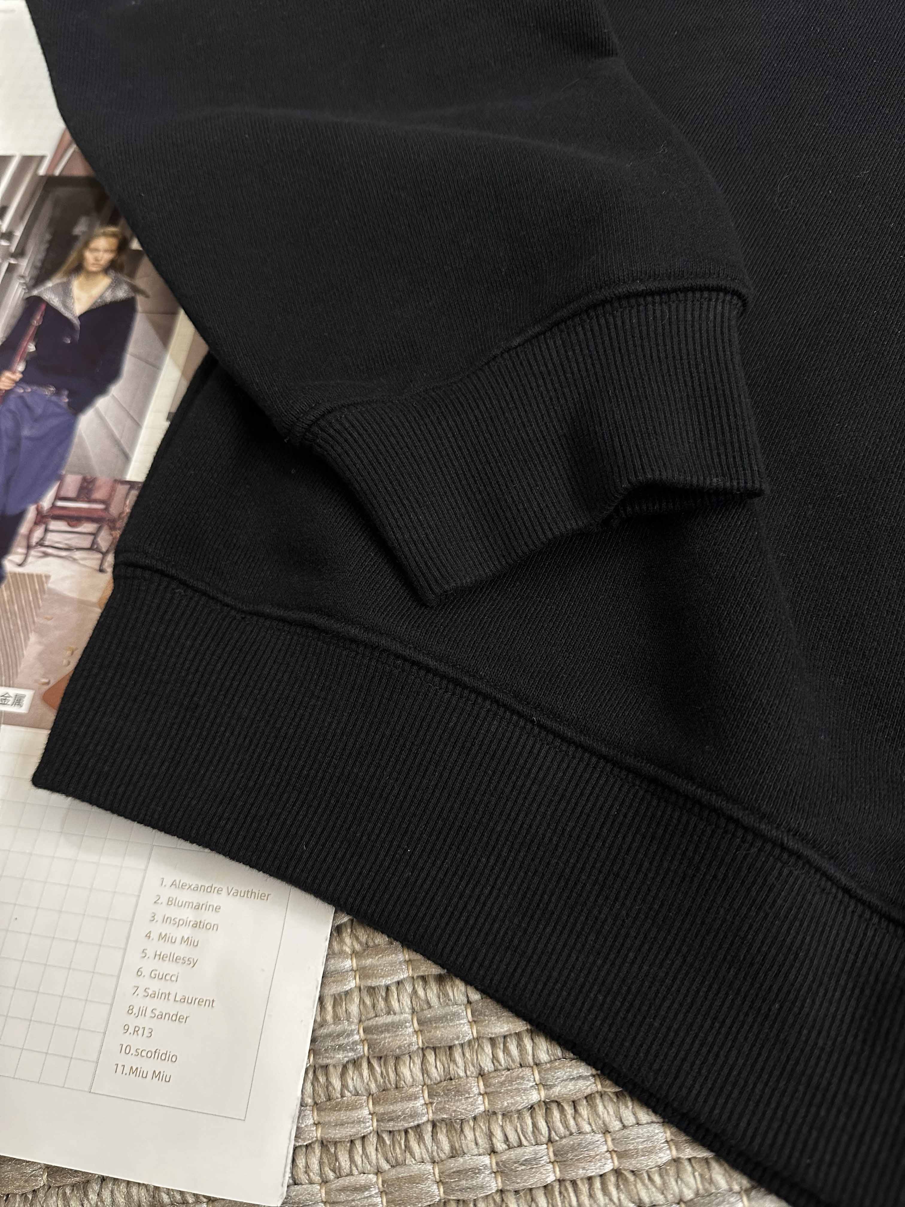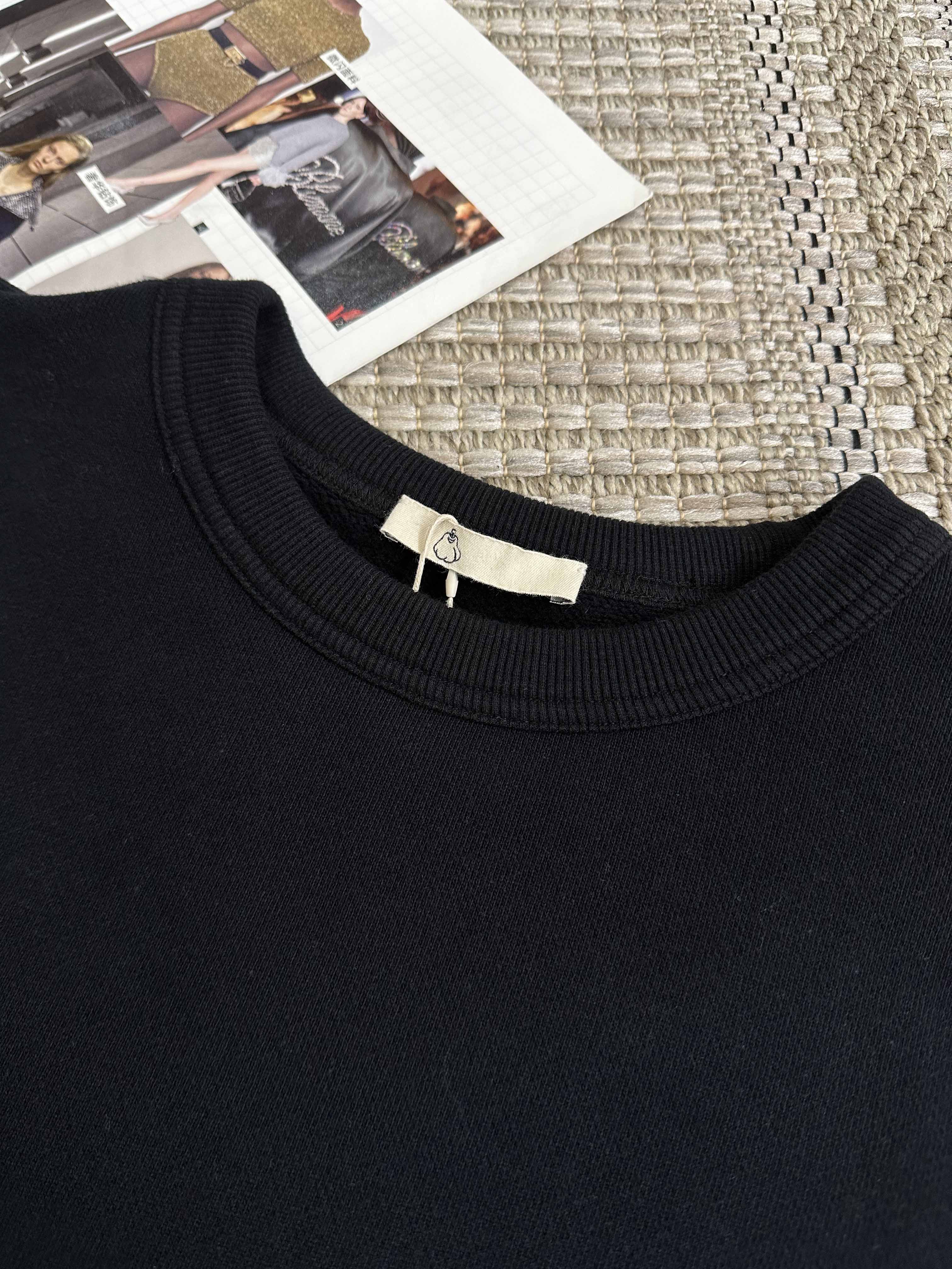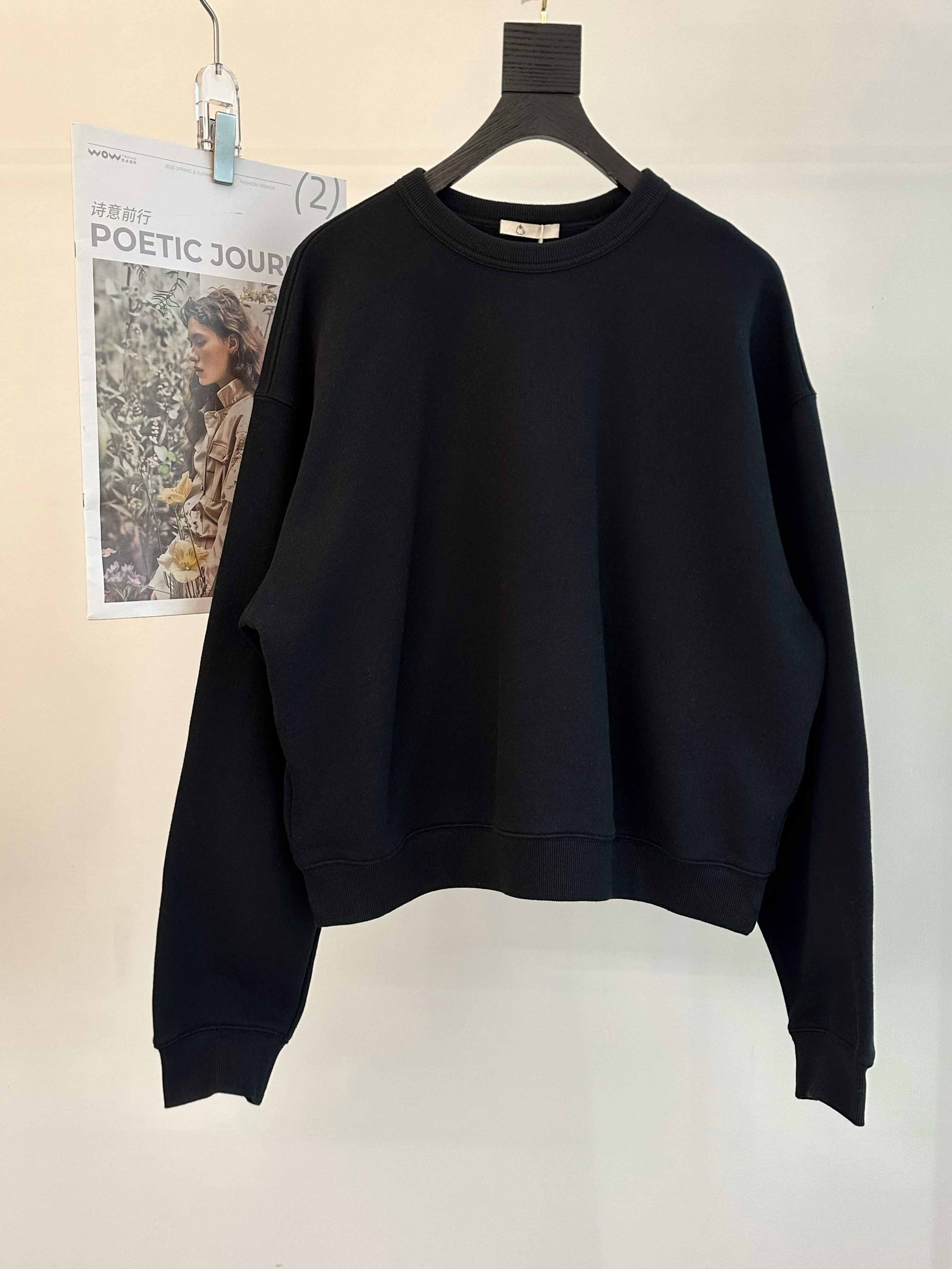 黑色长袖圆领运动风水洗卫衣,定制罗纹制作领口下摆袖口。【*农同款】