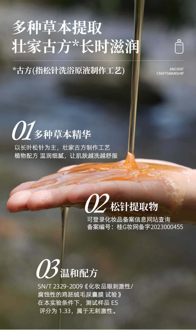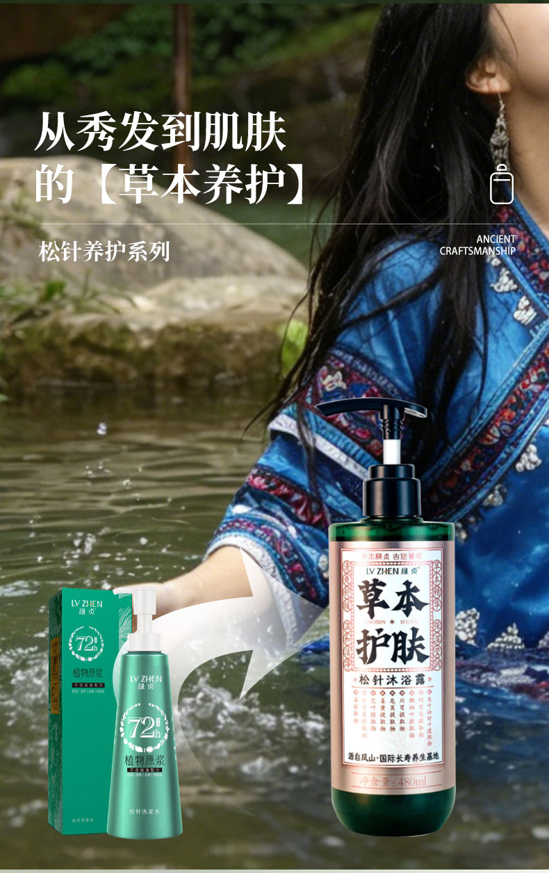 [买就送洗发水试用装1瓶]绿贞松针沐浴露 | #壮家古方松针洗浴原液非遗传承工艺#不刺激/清洁/保湿/舒缓。天然植物草本精华提取。滋润肌肤无刺激清爽保湿480mL。产自巴马水源地凤山。