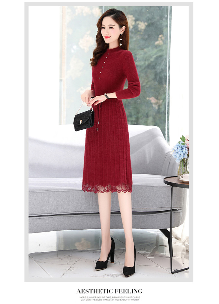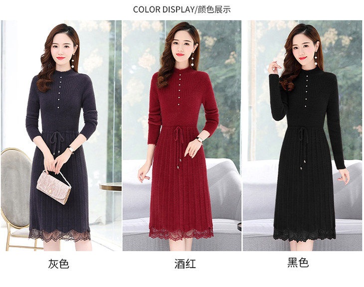 LY96836新款加绒加厚配大衣的内搭打底针织毛衣裙