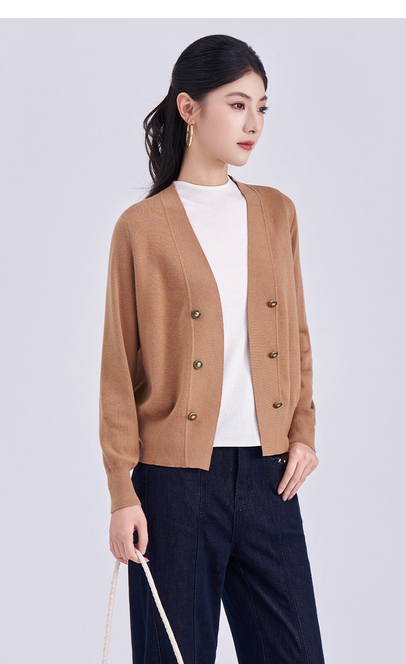 乔万尼新品2025冬V领设计感优雅轻奢老钱风羊毛开衫针织衫ED4M811