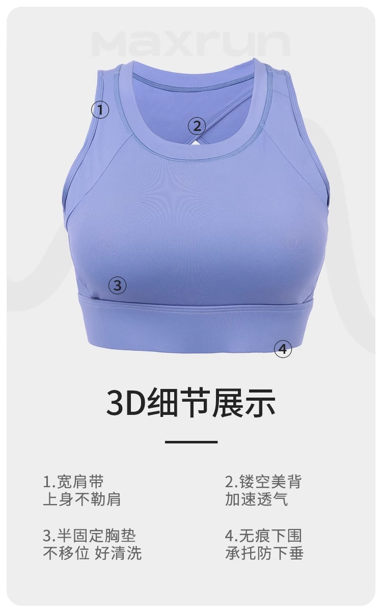 跃牌(呗咪纷纷系列)大码一体运动内衣女防震跑步美背瑜伽背心固定胸垫聚拢文胸WX9001
