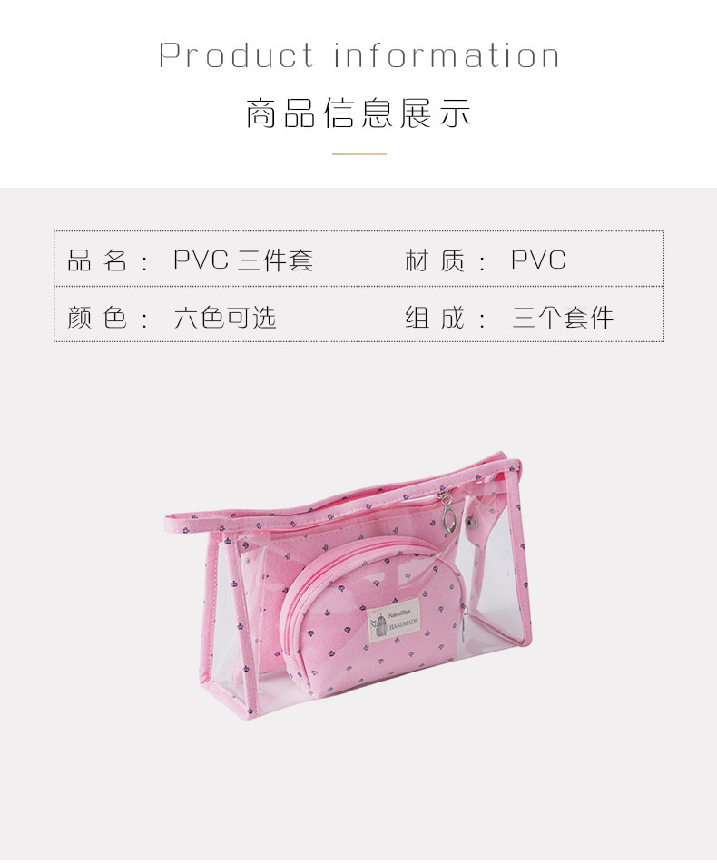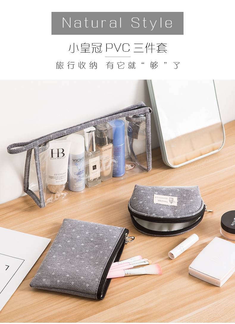 小皇冠透明PVC化妆包三件套旅行便携大容量洗漱手拿化妆包 TZW