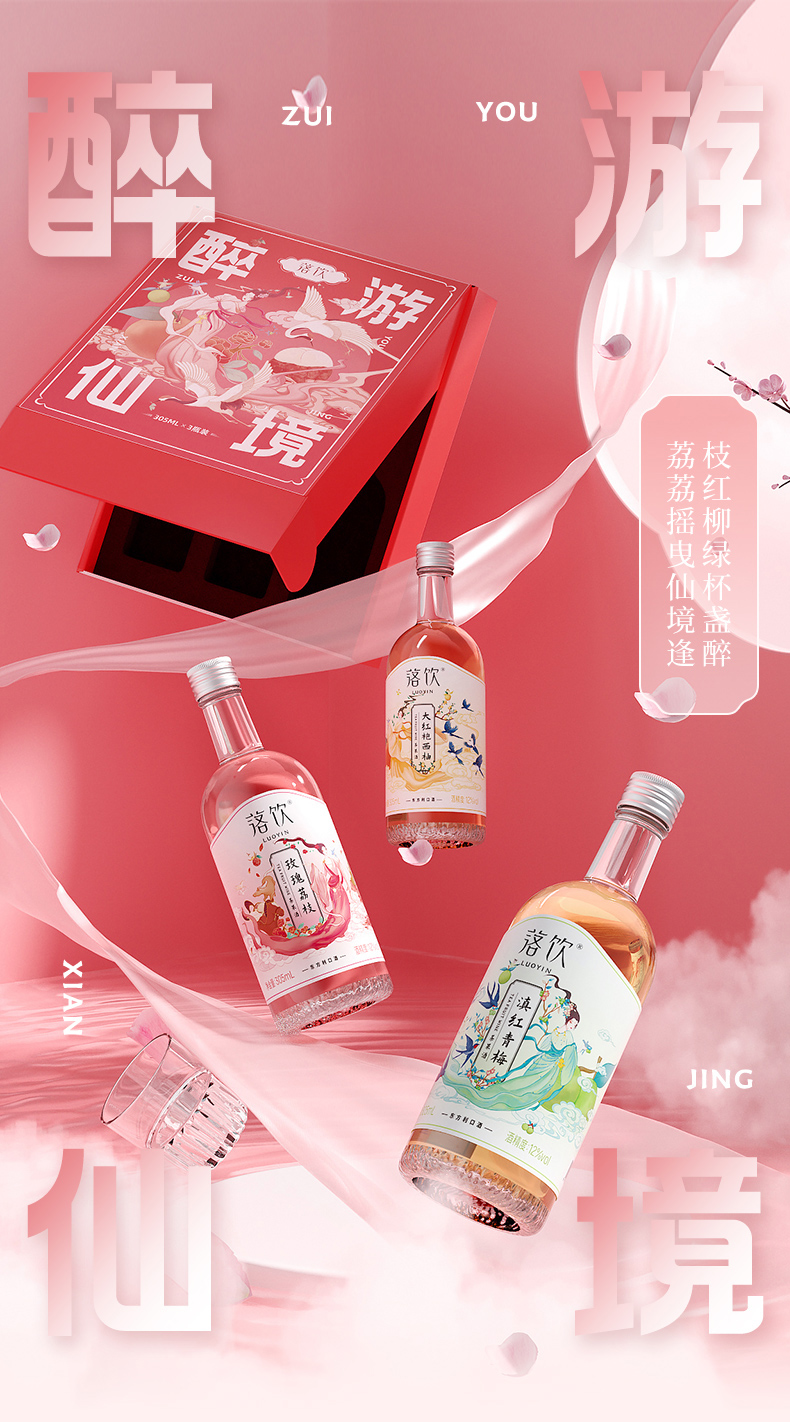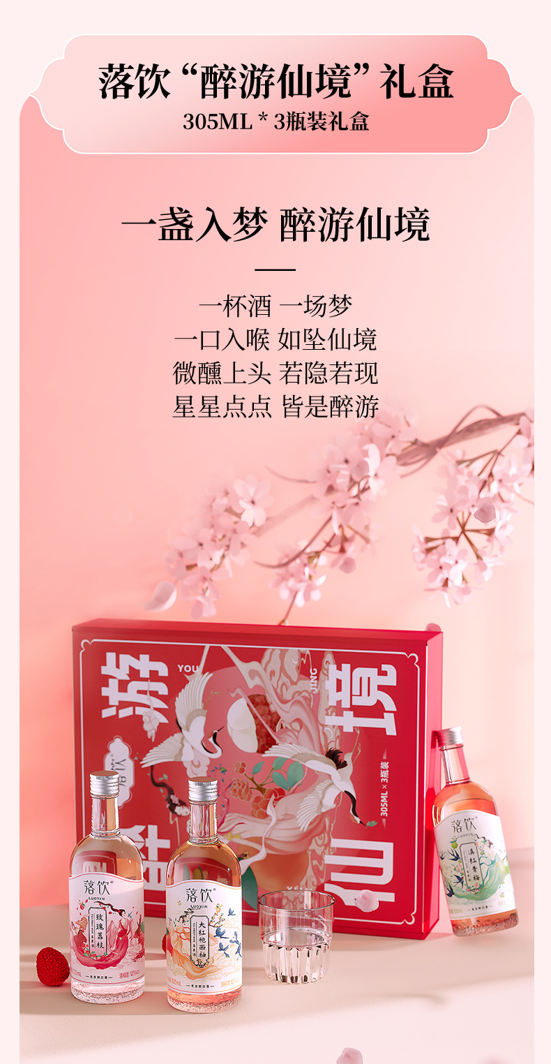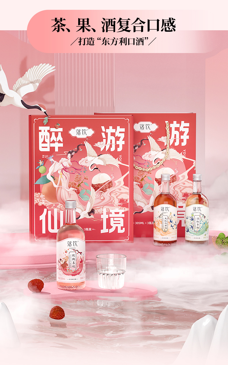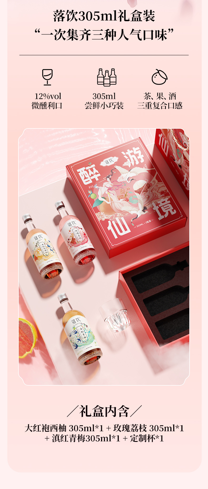 醉游仙境礼盒装305ml*3瓶装 包含三种口味 玫瑰荔枝 大红袍西柚 滇红青梅