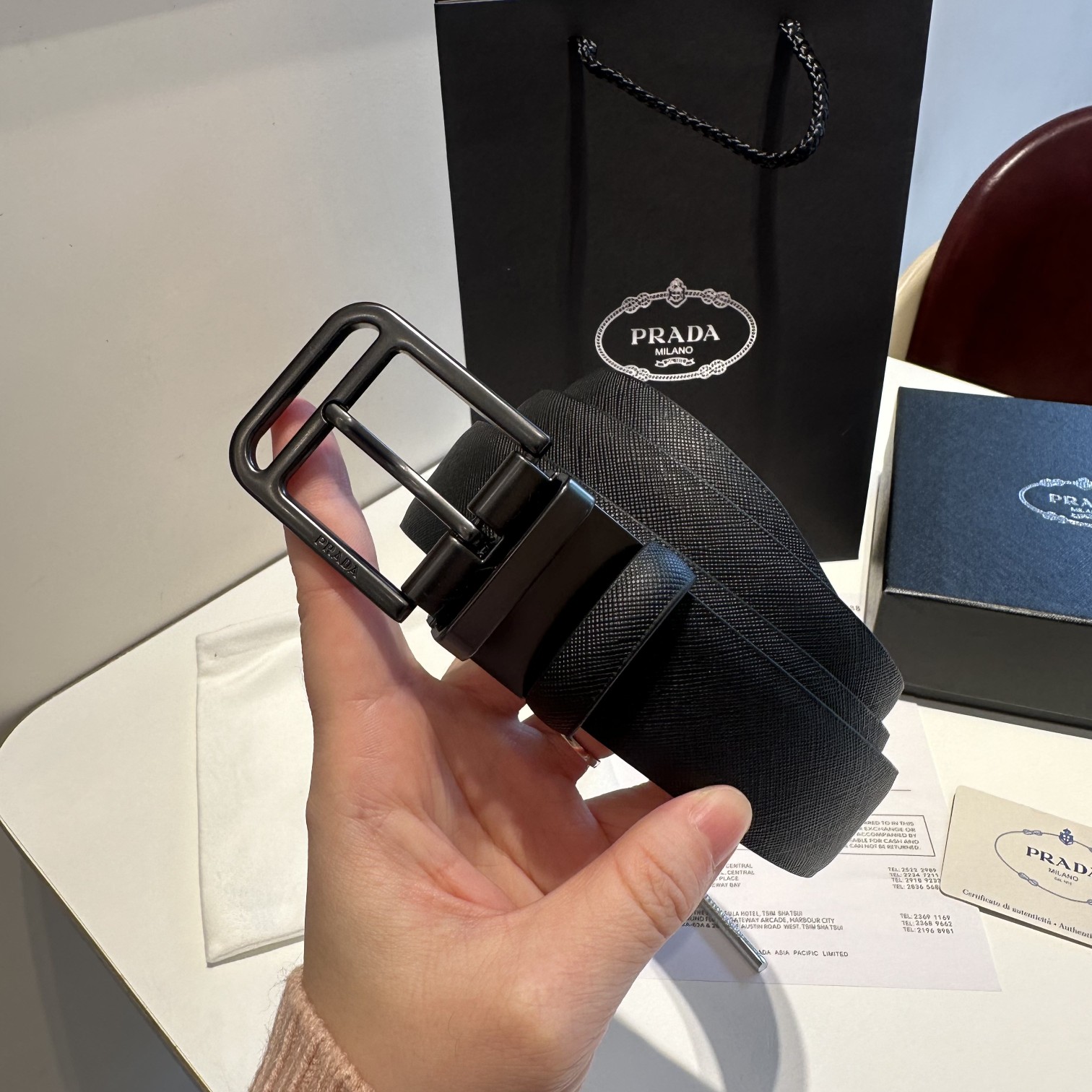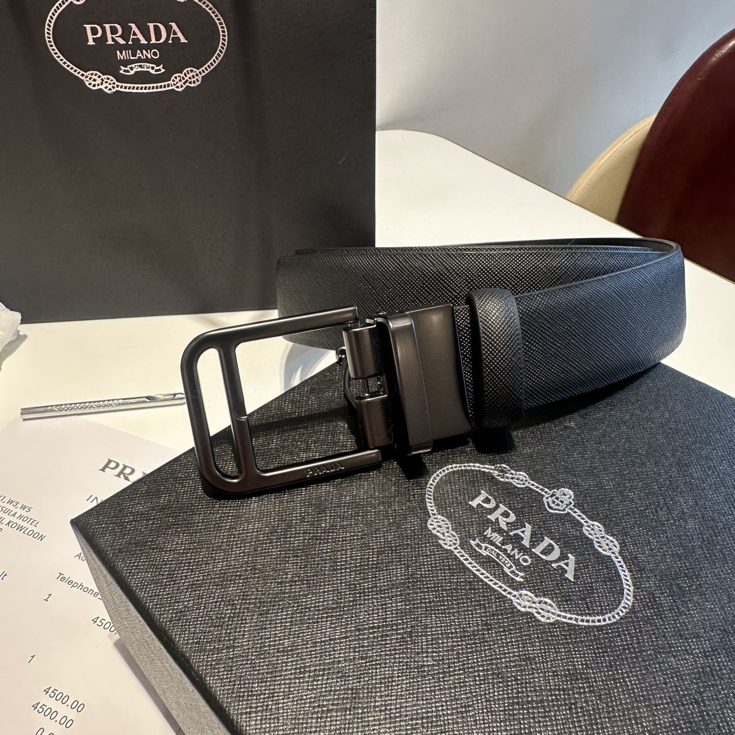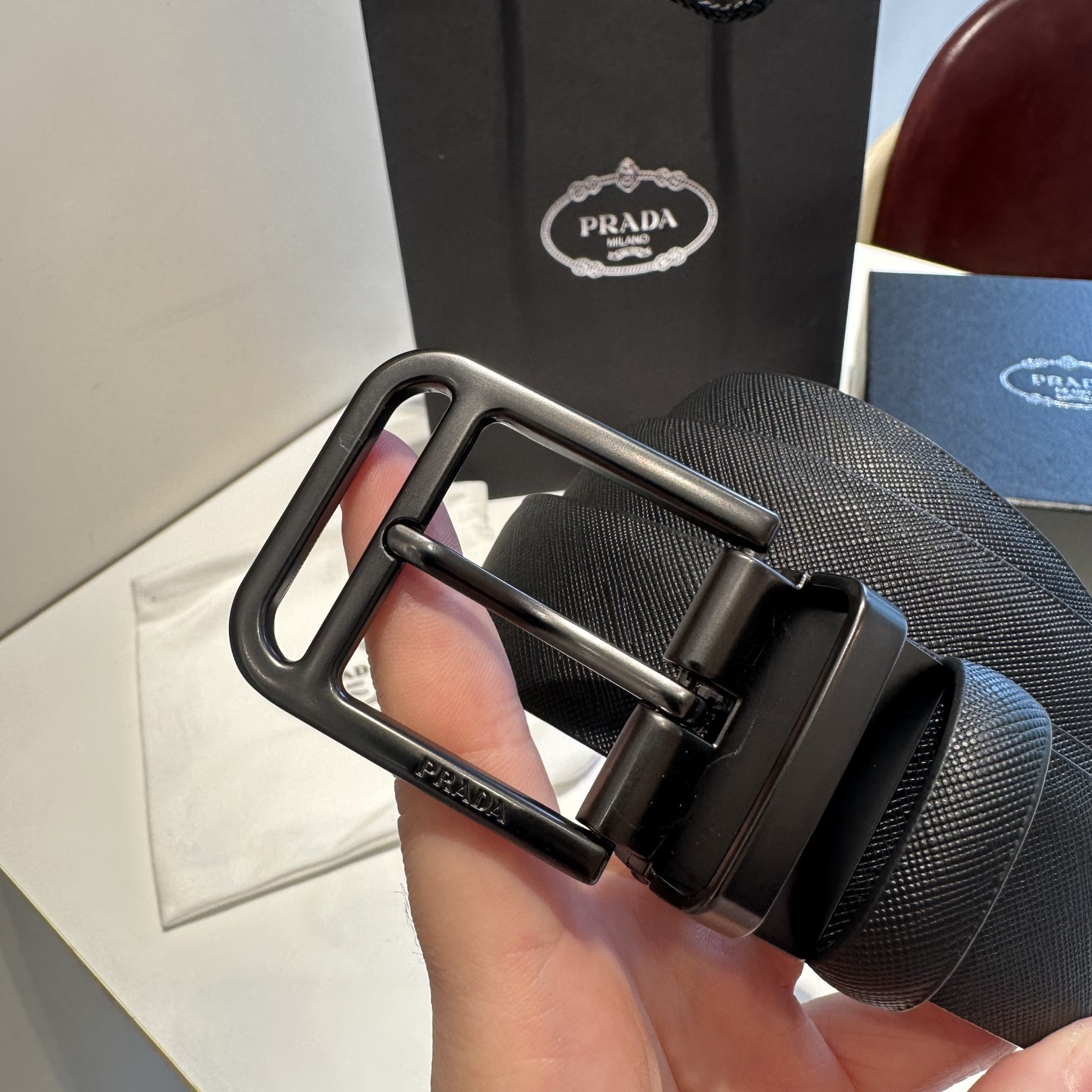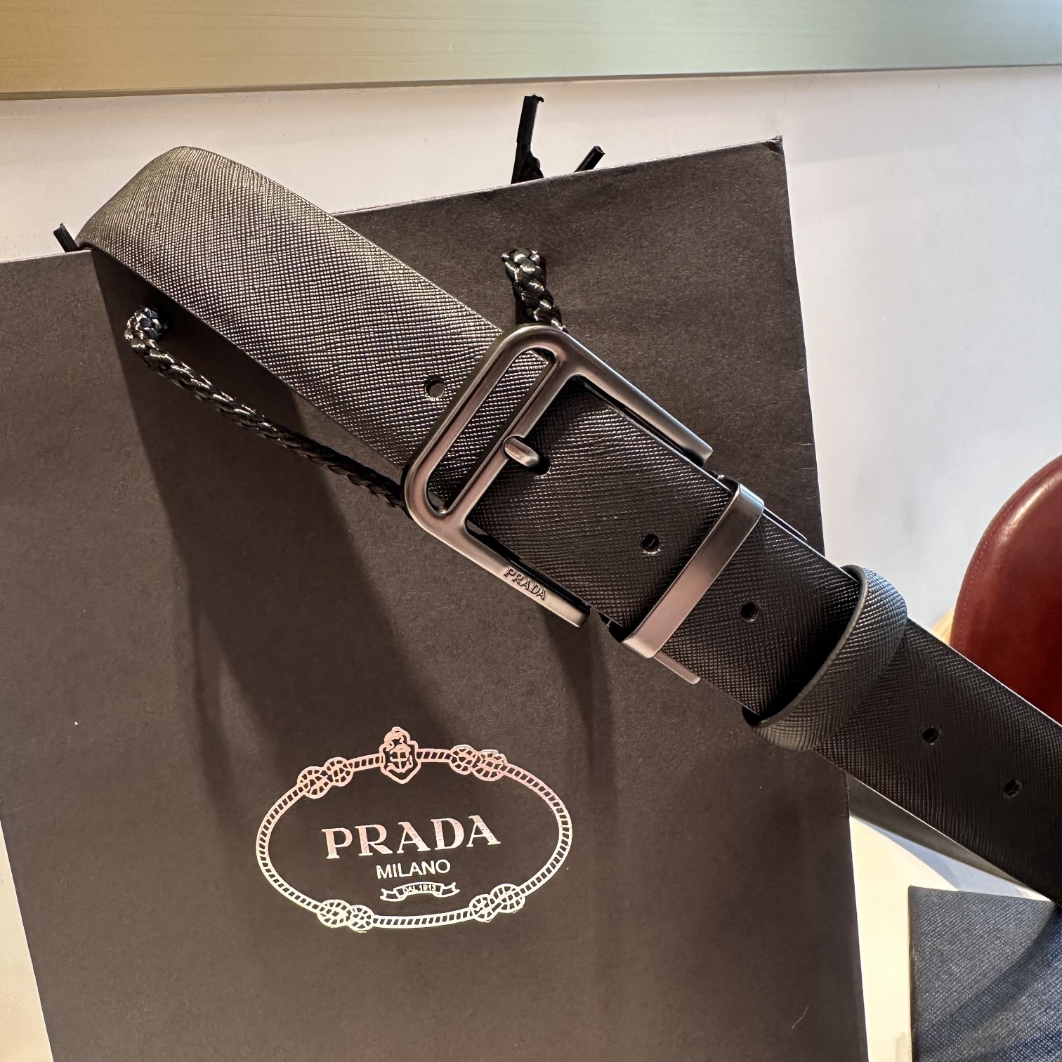 Prada专柜款腰带配全套包装!新款火爆来袭!  一款好的腰带  是完全可以 改变一个人的整体 气质的!PRADA普拉达 新品男士腰带!皮带材质:腰带头说实在的 真的是下了功夫!  要专门开模订制  所以要比普通腰带贵!  全套包装自用送人都非常漂亮