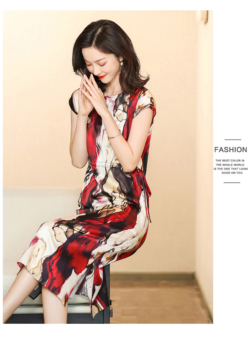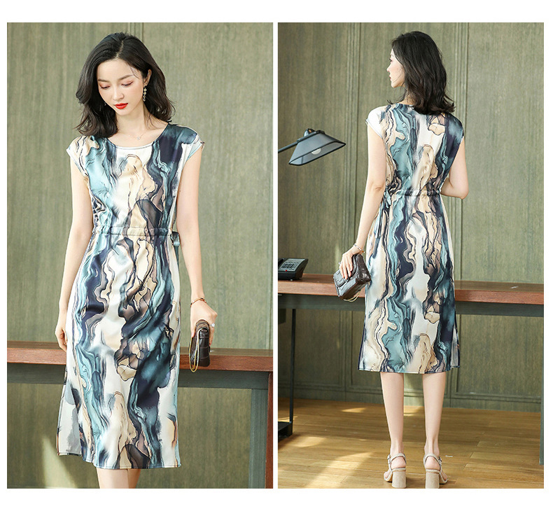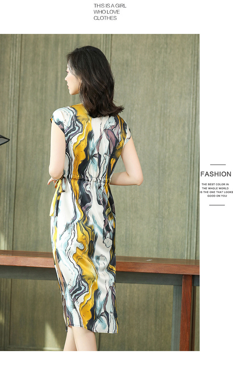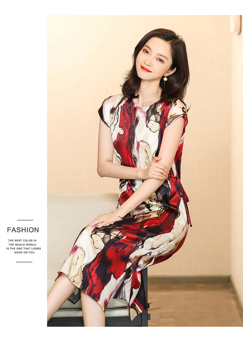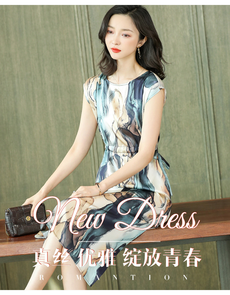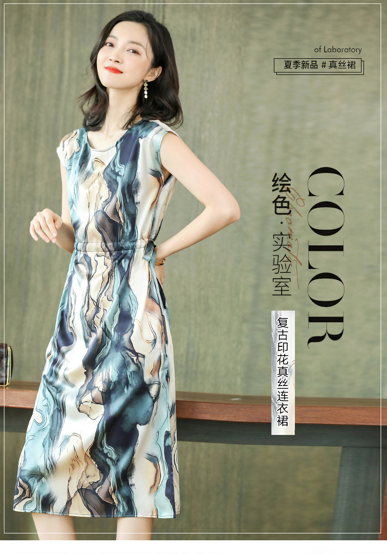 上海旗袍厂ASE-6679复古印花真丝连衣裙