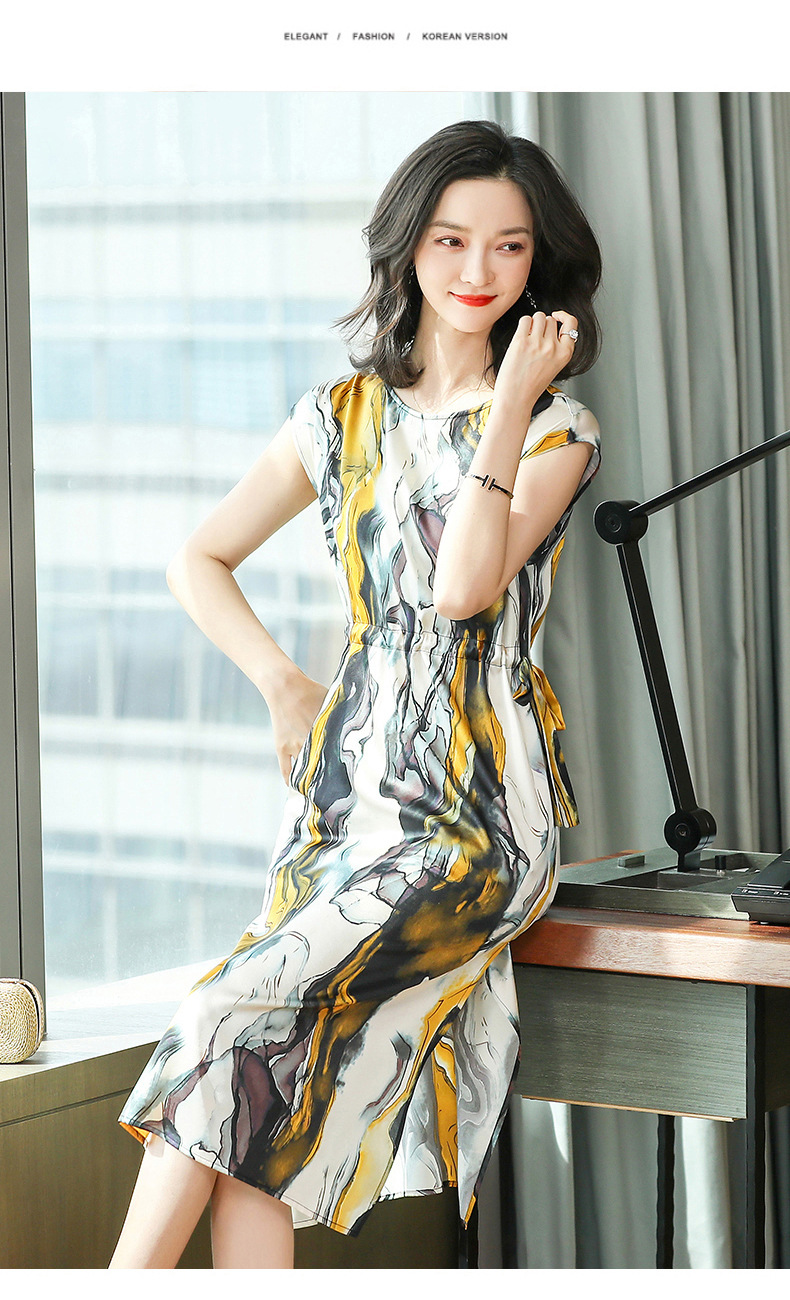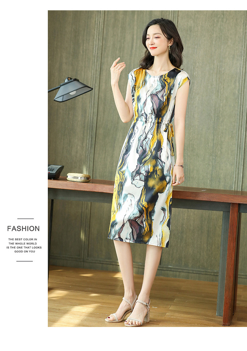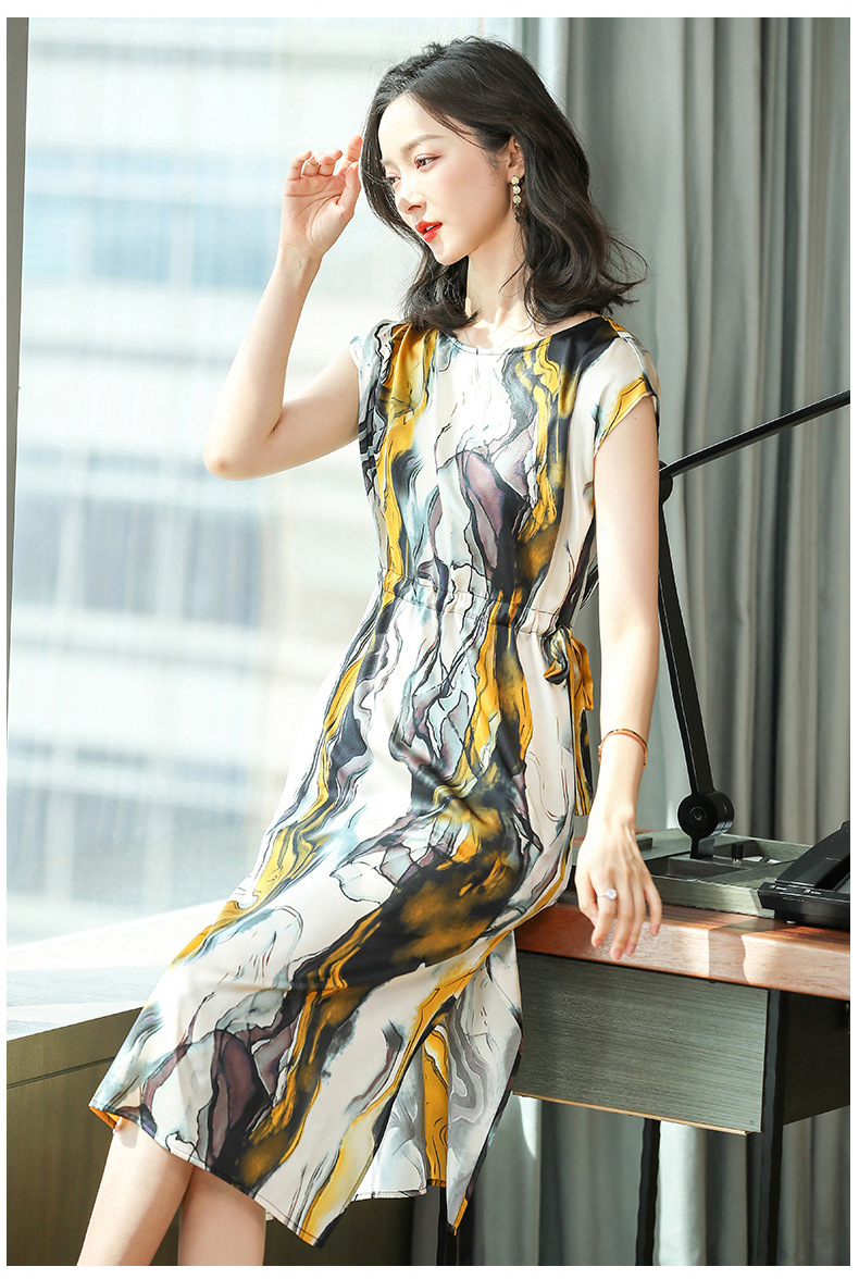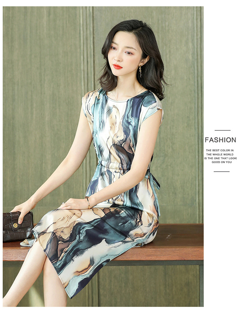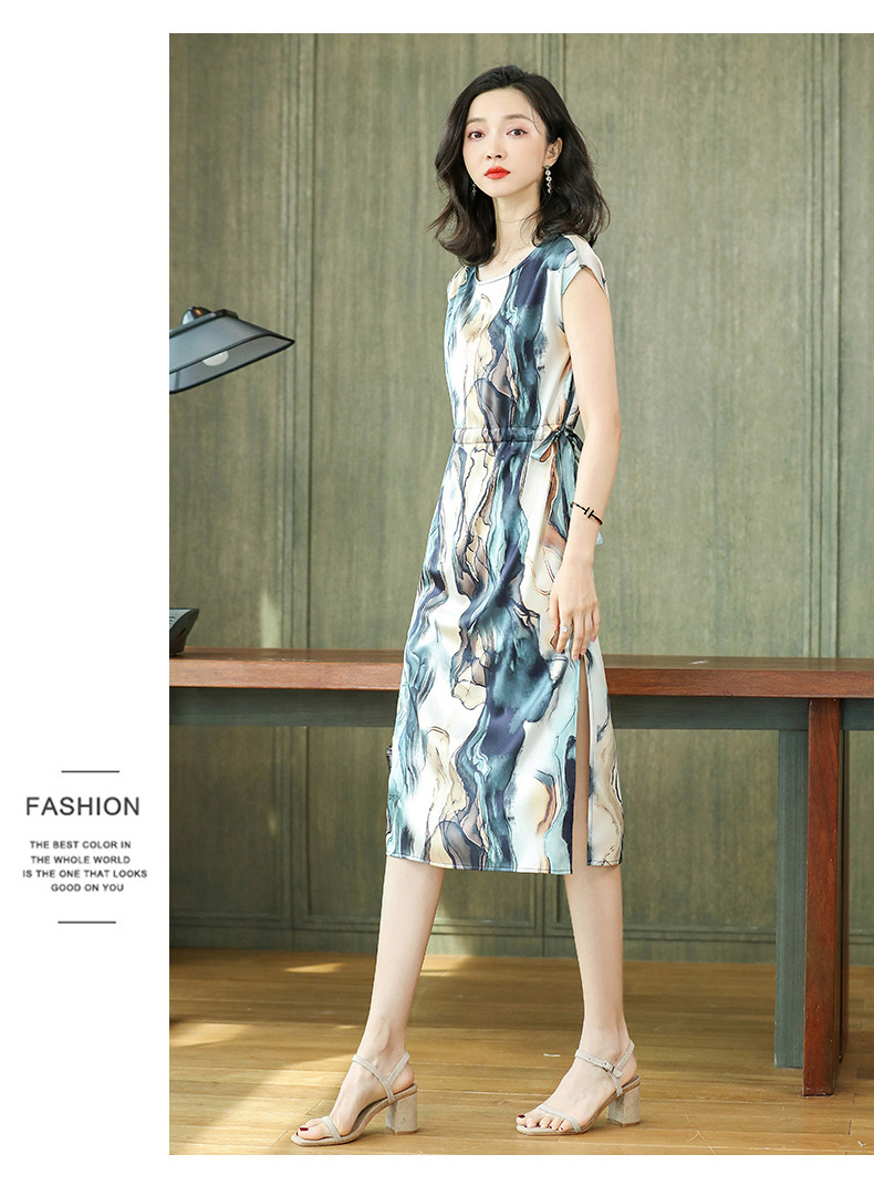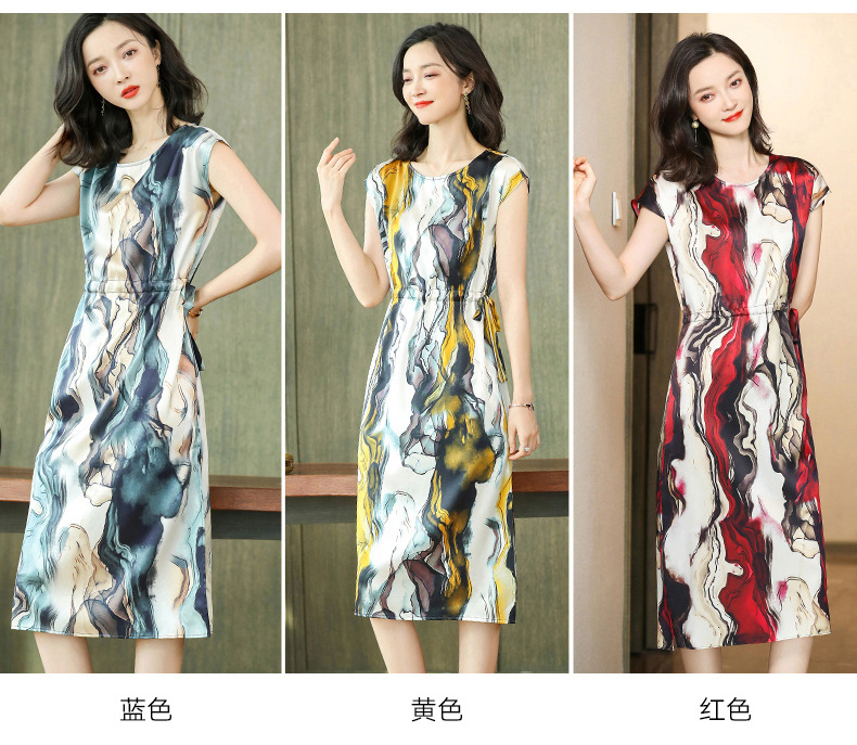 上海旗袍厂ASE-6679复古印花真丝连衣裙
