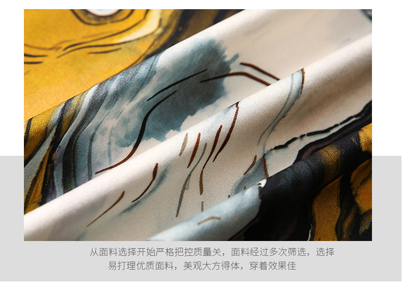 上海旗袍厂ASE-9088印染系带单排扣真丝衬衫