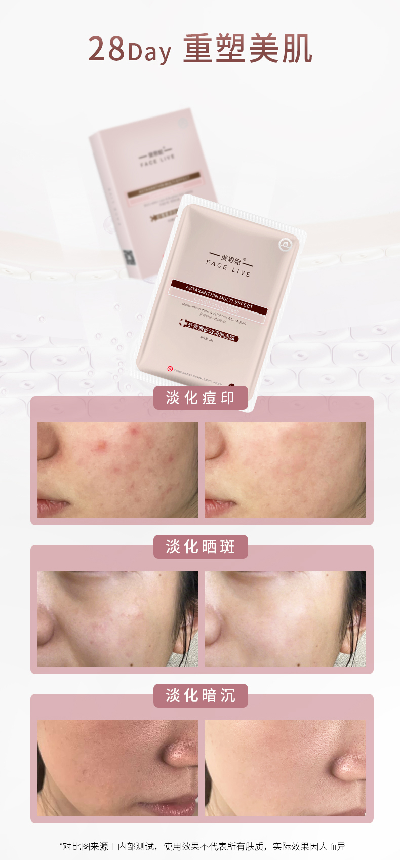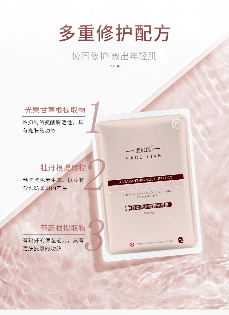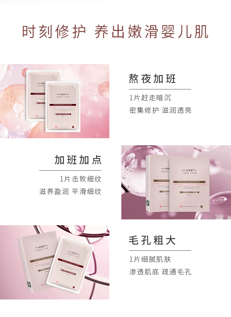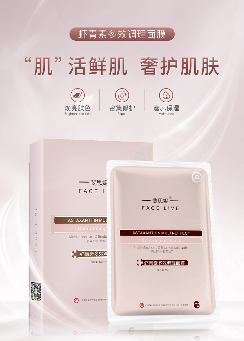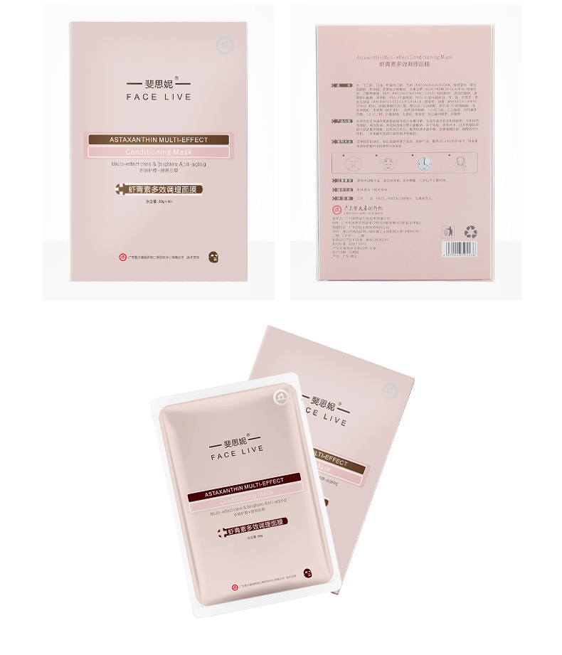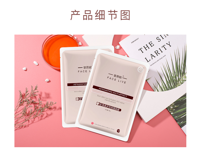 Facelive斐思妮红膜亮肤晒后修护舒缓虾青素补水男女护肤面膜5片