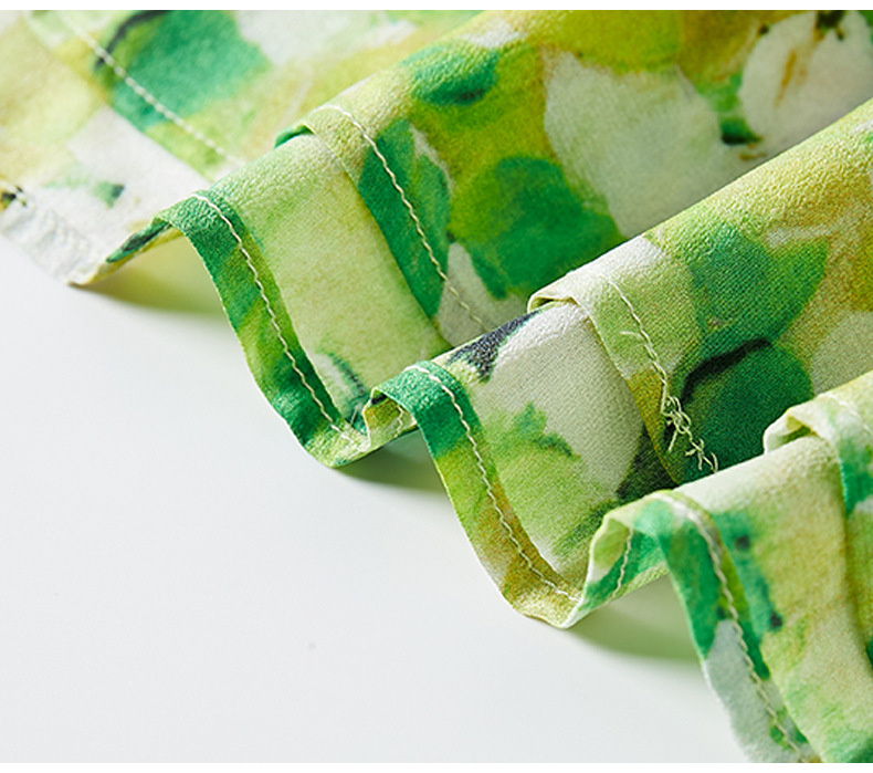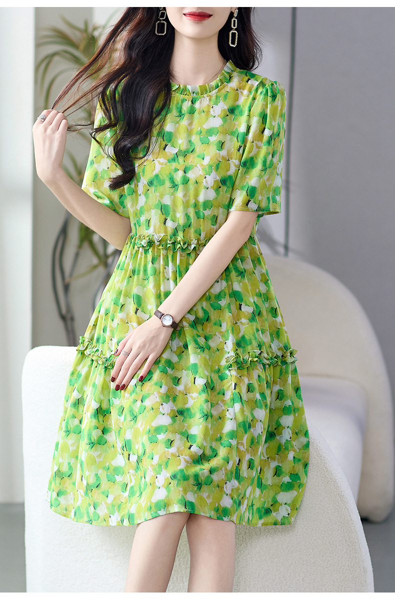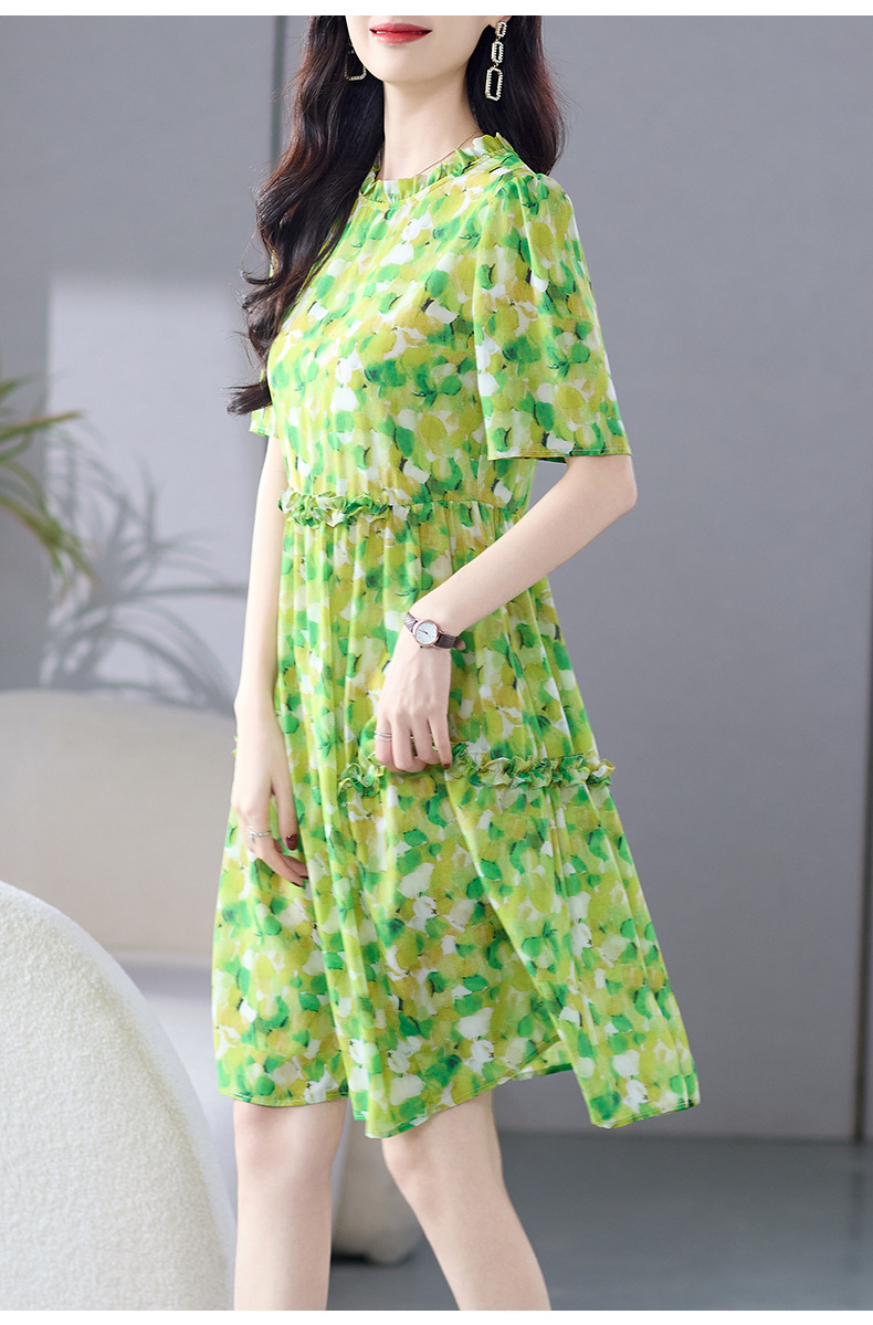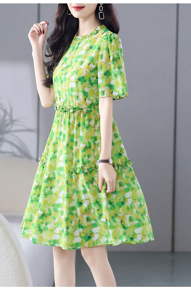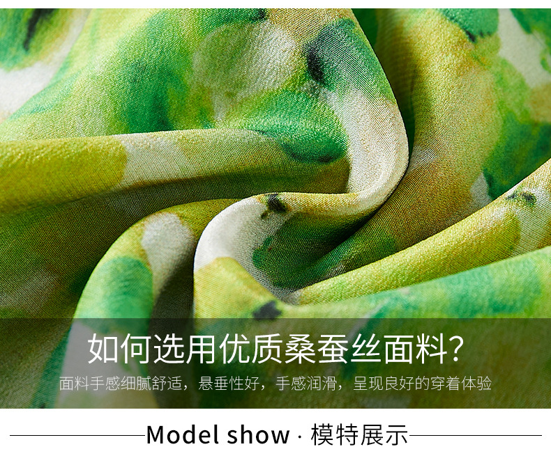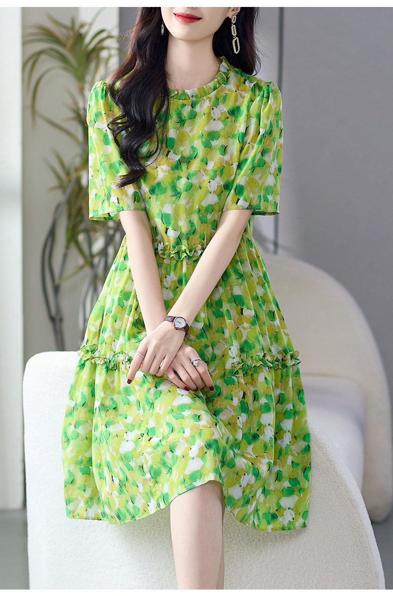 WWM-69519 春夏新款绿色碎花100%桑蚕丝连衣裙今年流行的爆款女装