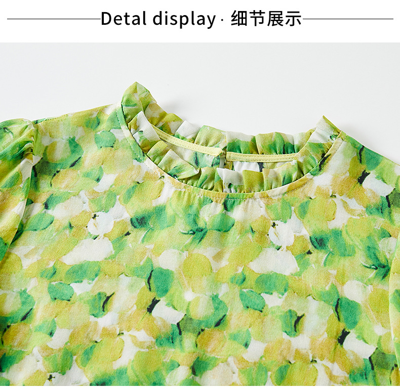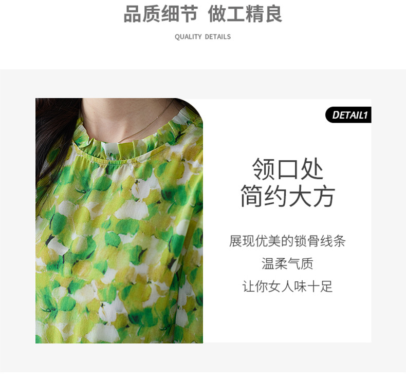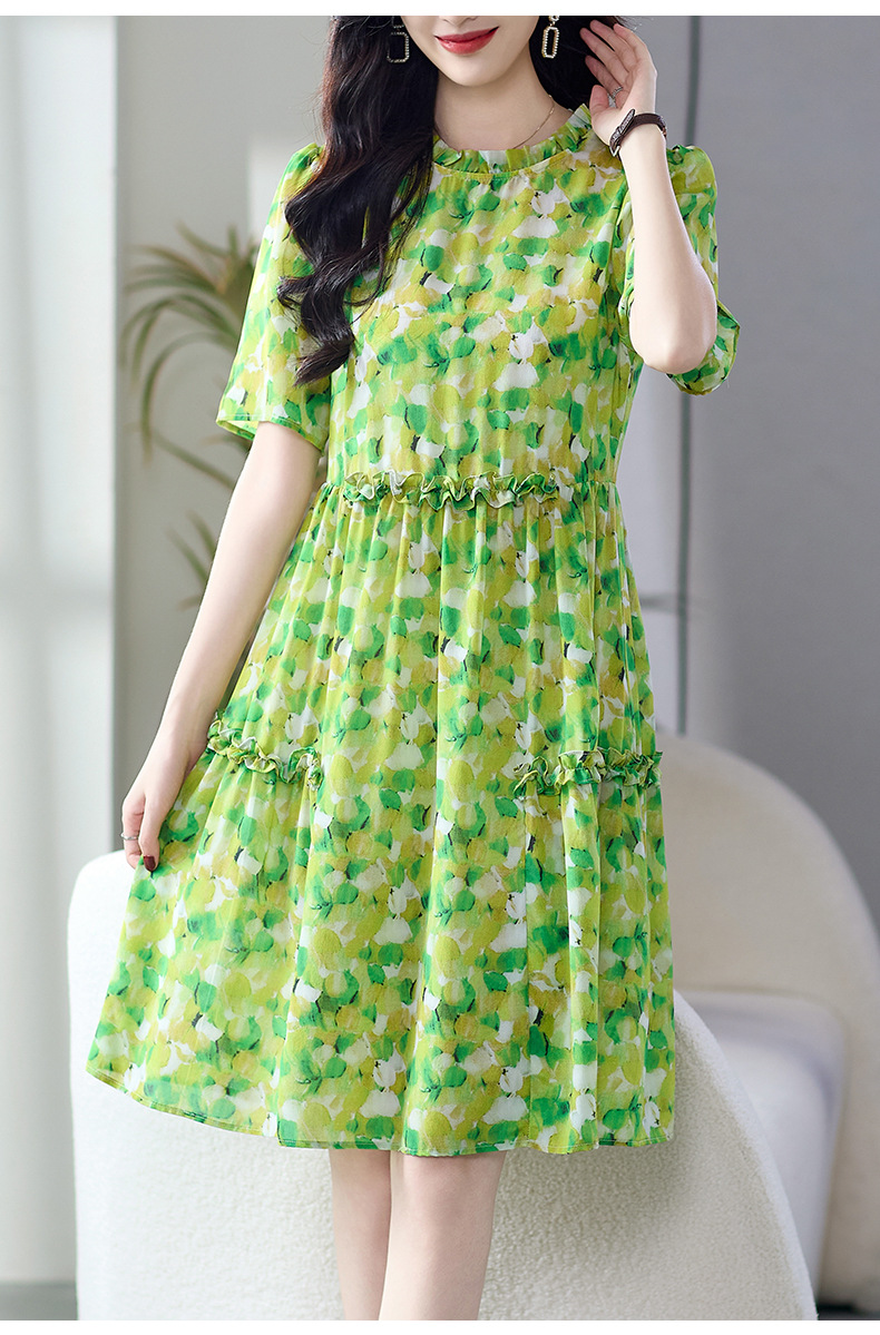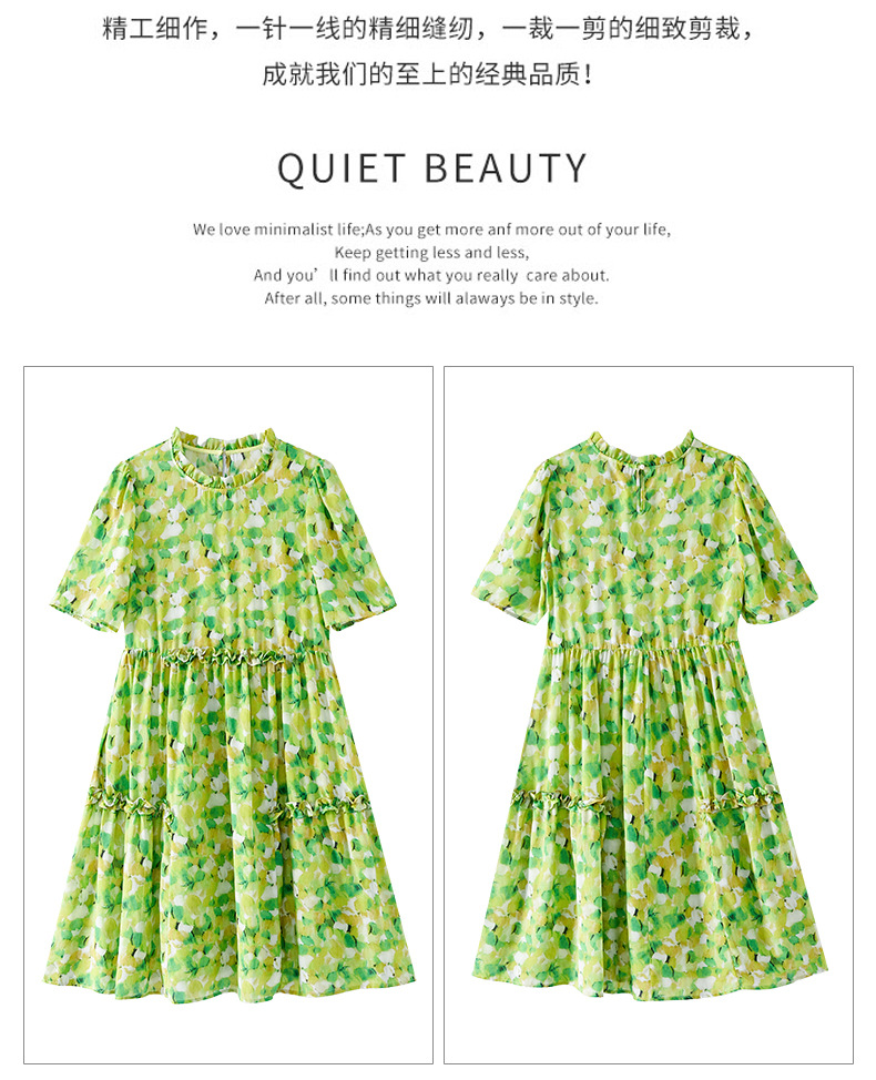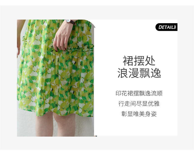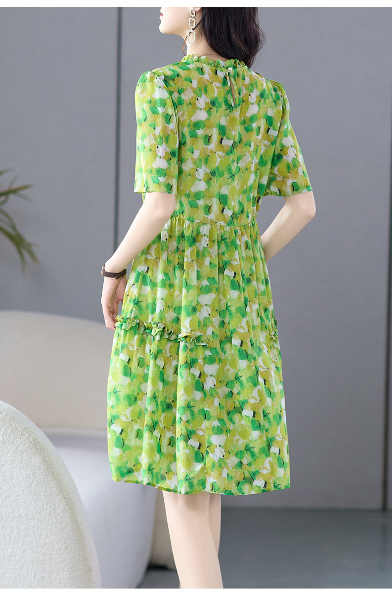 WWM-69519 春夏新款绿色碎花100%桑蚕丝连衣裙今年流行的爆款女装