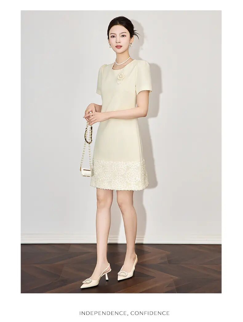 【高货wl】全新升级【铂金会员330/天猫439/差价109】(04642) 洛诗琳25新款法式优雅立体盘花网纱雅致千金风女春连衣裙