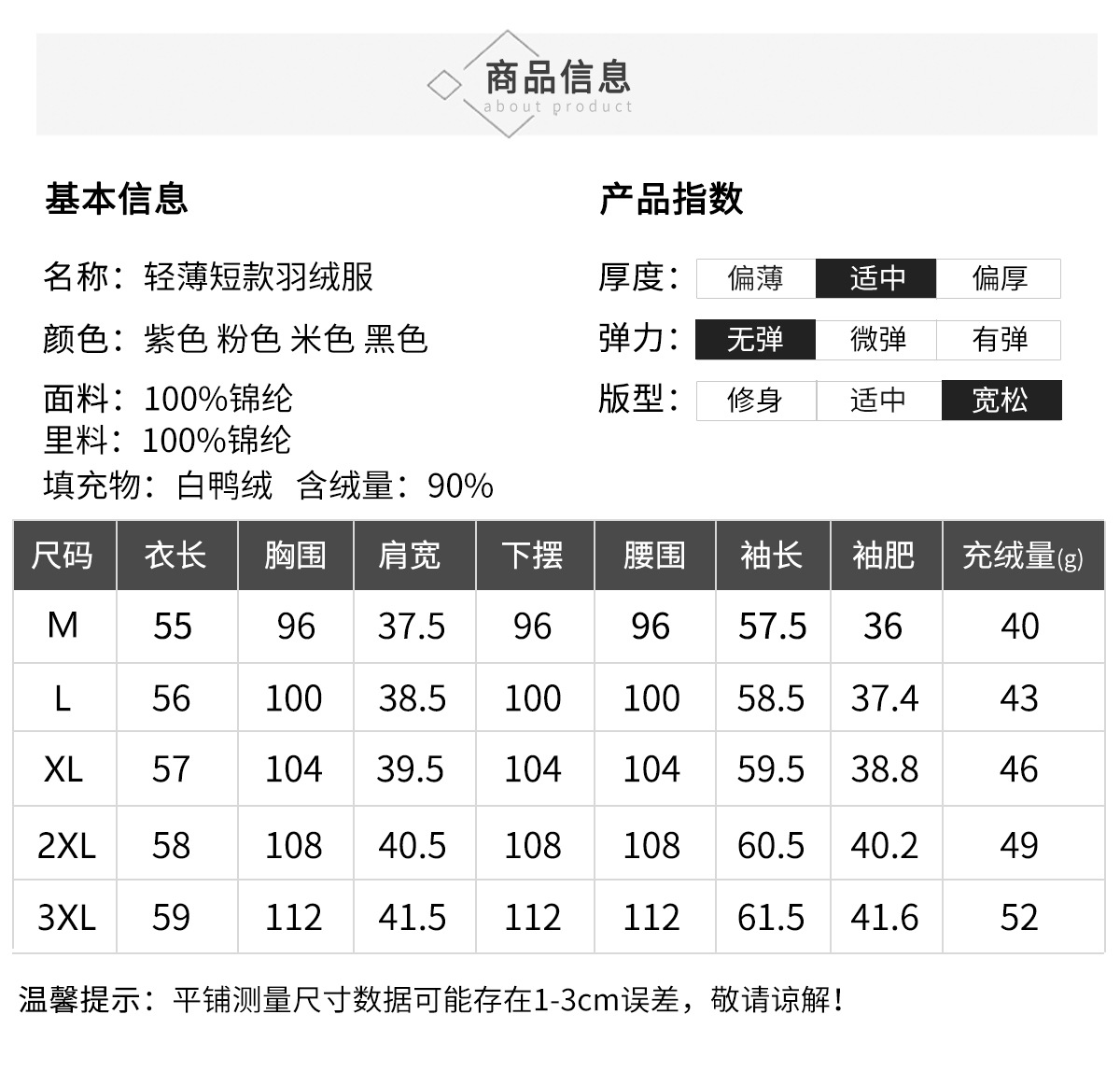 丁摩 时尚90绒白鸭绒轻薄款羽绒服女短款羽绒内胆外穿保暖5ZF-368061