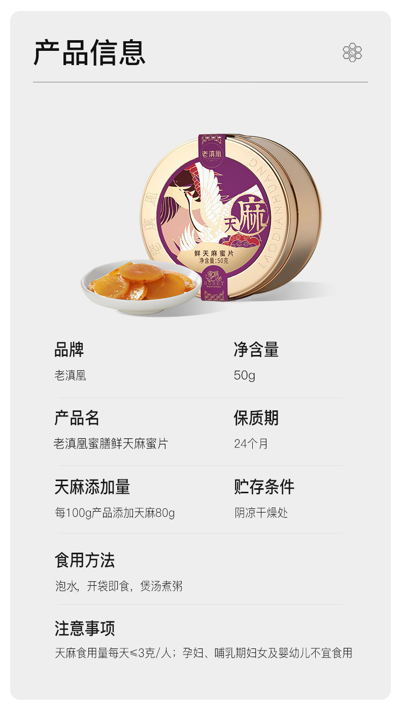 【买3发5 买4发7】老滇凰鲜天麻蜜片 云南昭通天麻切片+高山皇蜜浸渍 保留营养 鲜甜可口 50g/罐