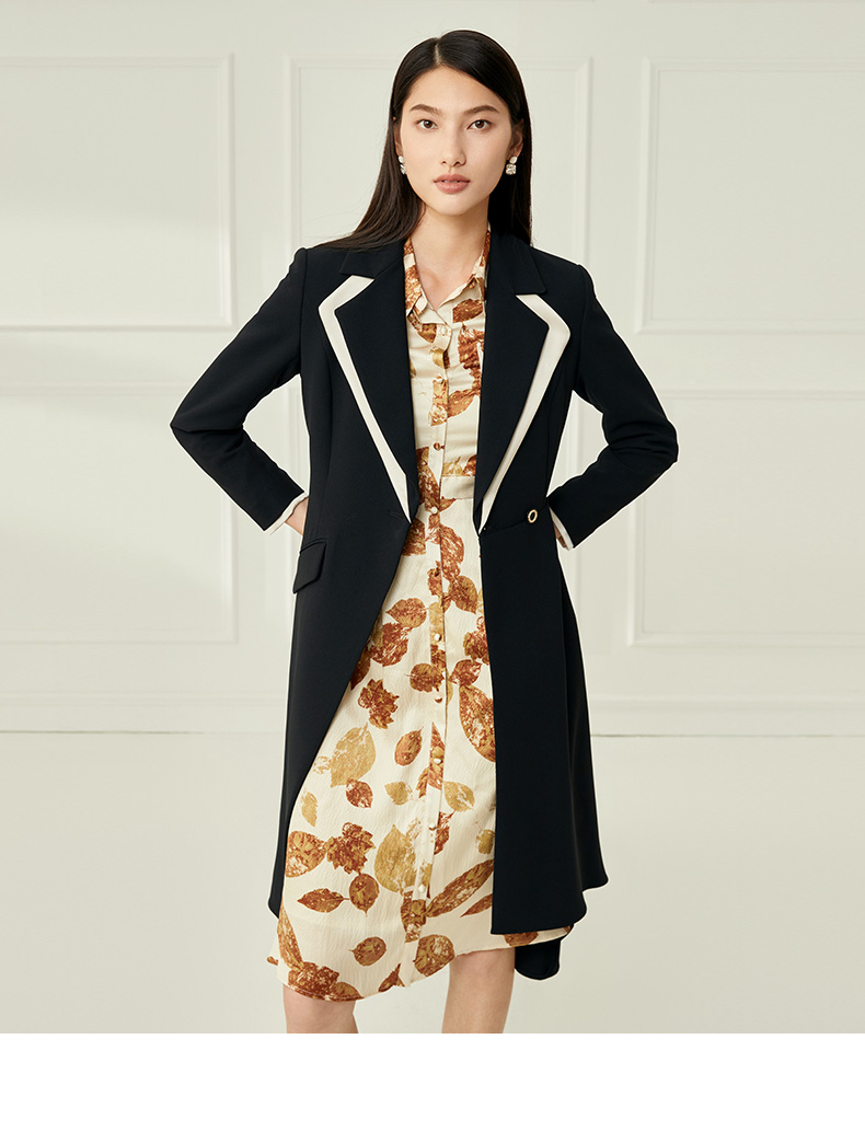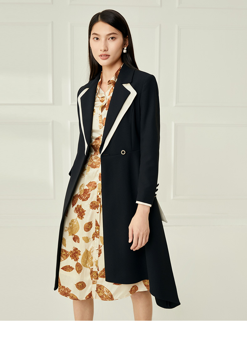 VIMAGE纬漫纪女装秋款经典翻领收腰中长款风衣女时尚外套V1404005DC