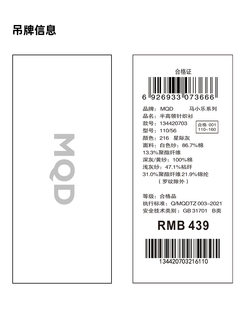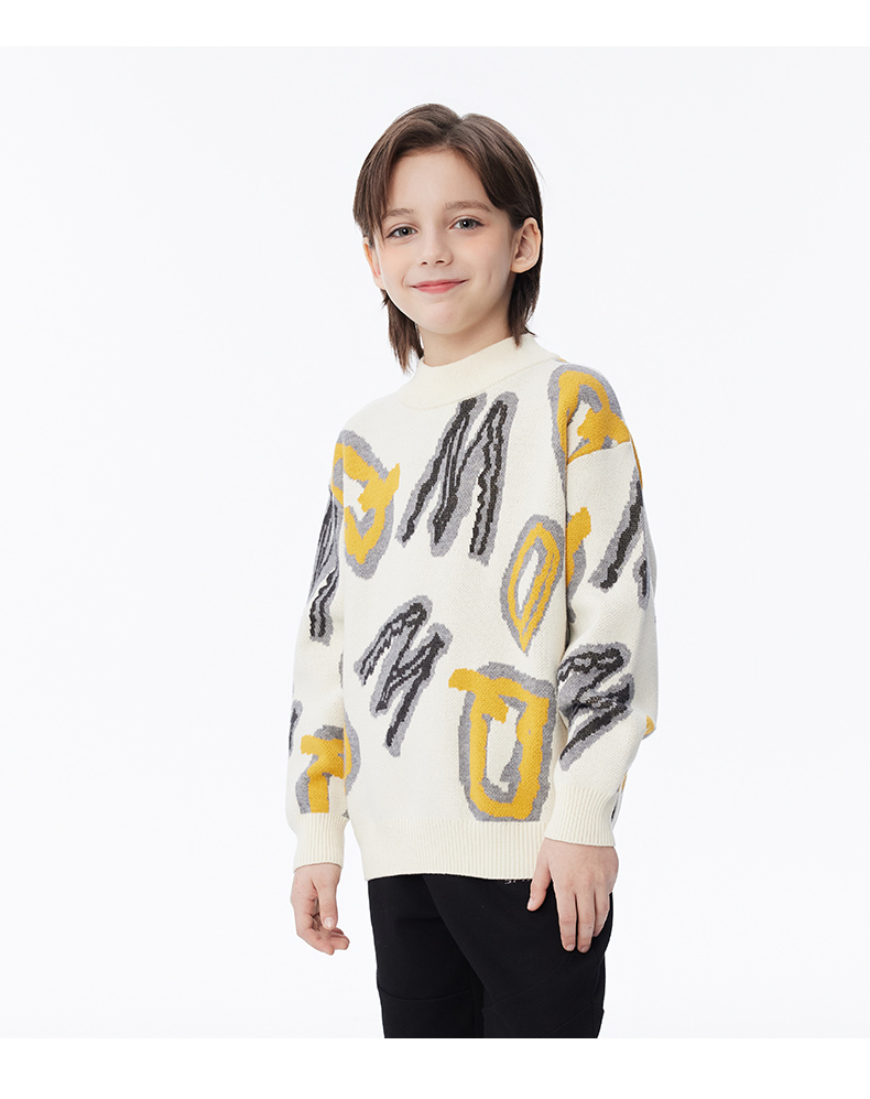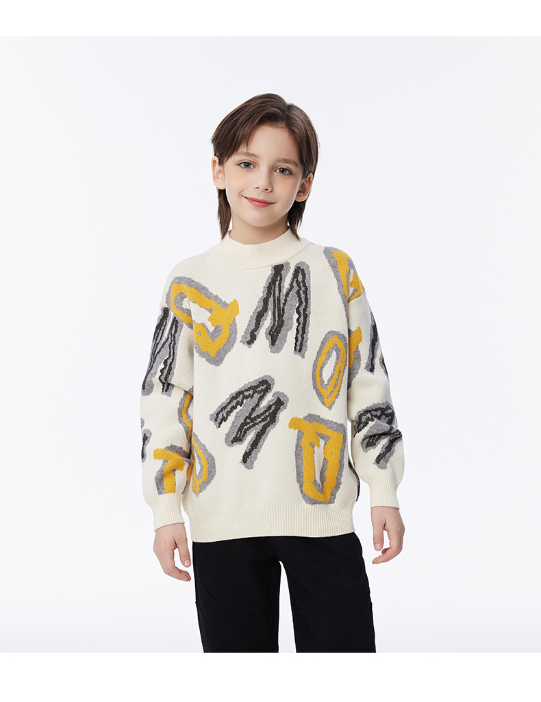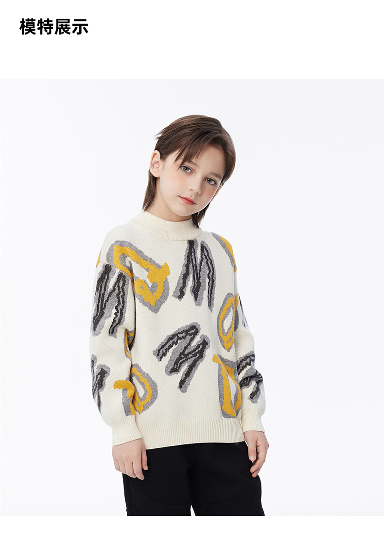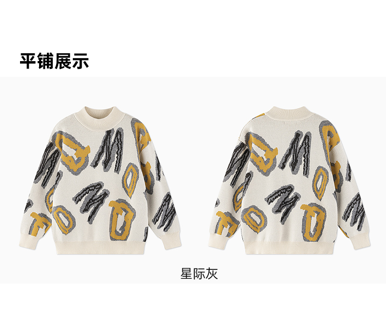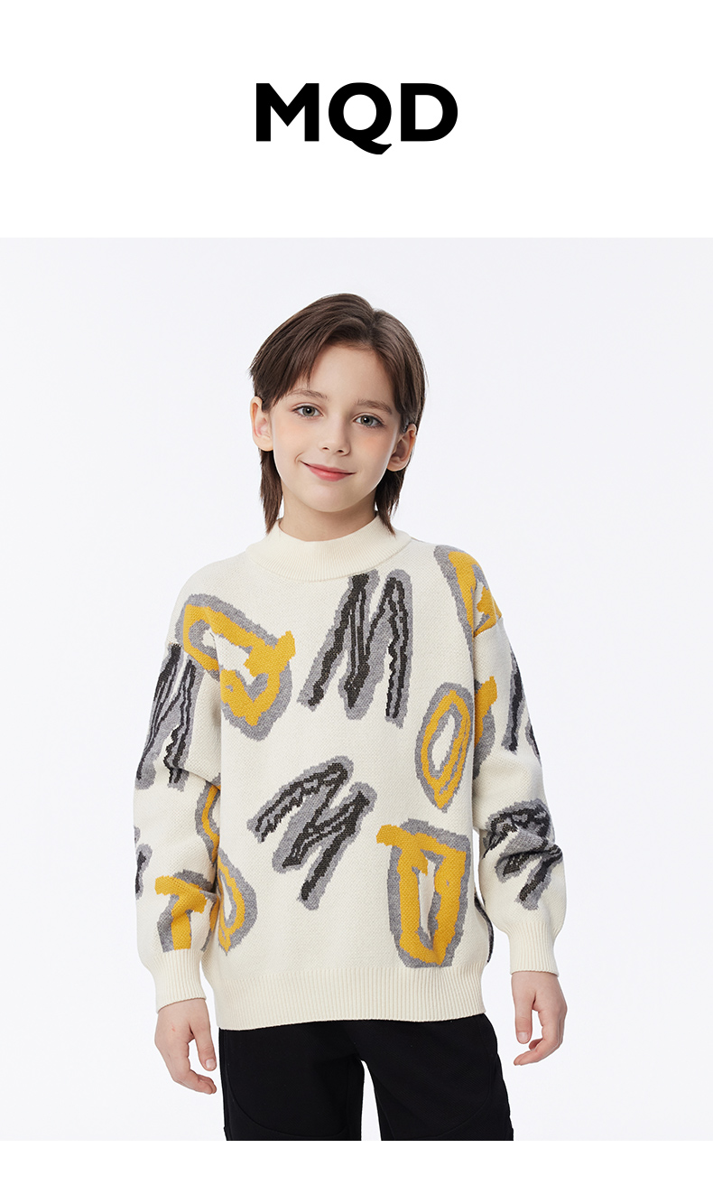 【秒2】【MQD】男童冬季潮酷满版字母活力半高领针织衫