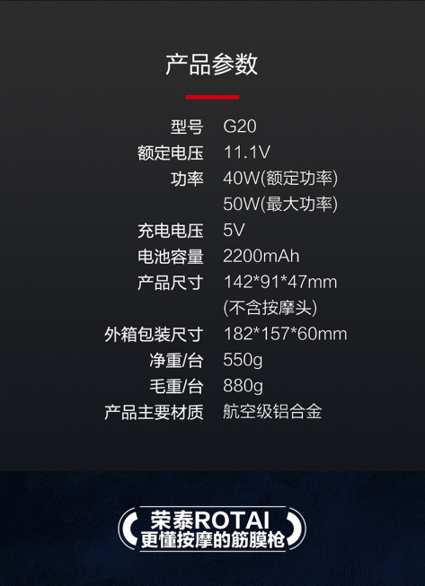 荣泰G20筋膜枪肌肉按摩器专业健身放松mini迷你多功能按摩枪
