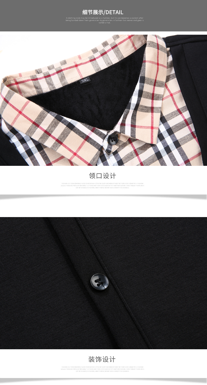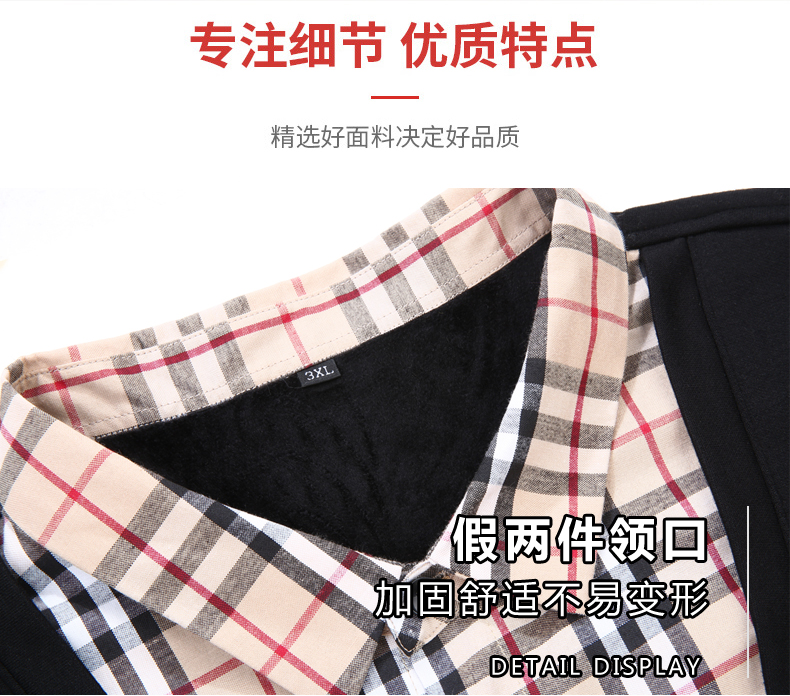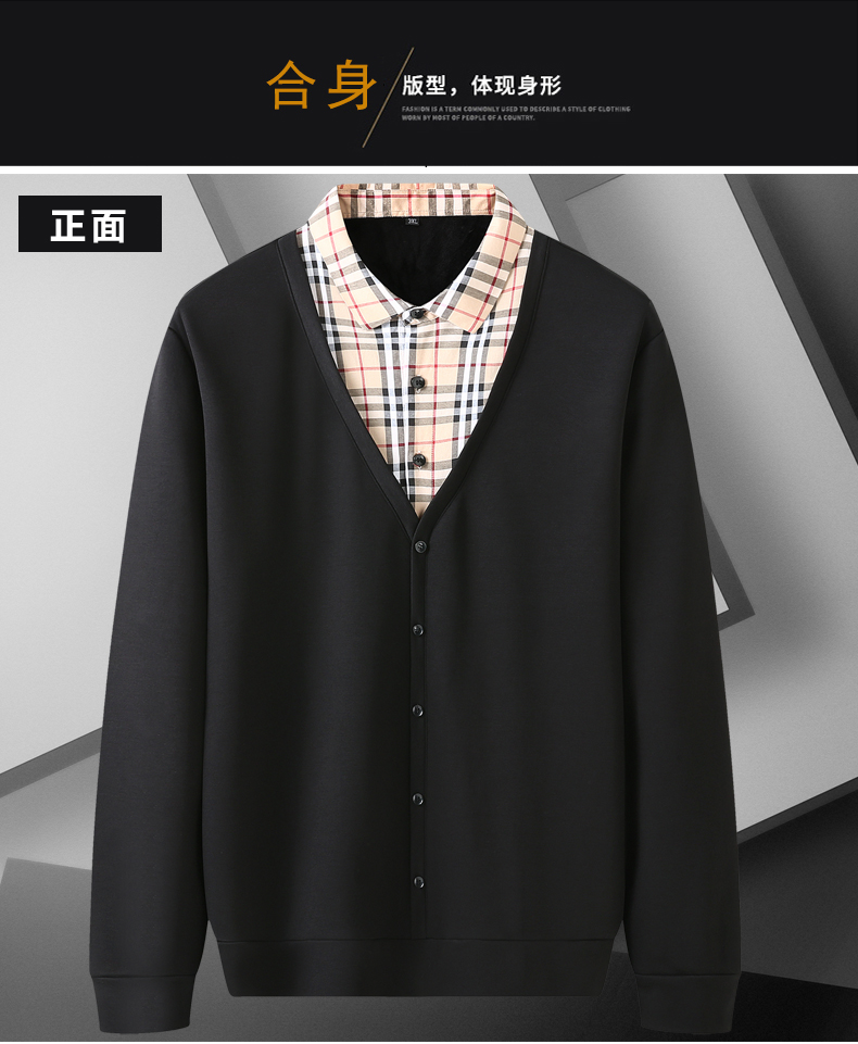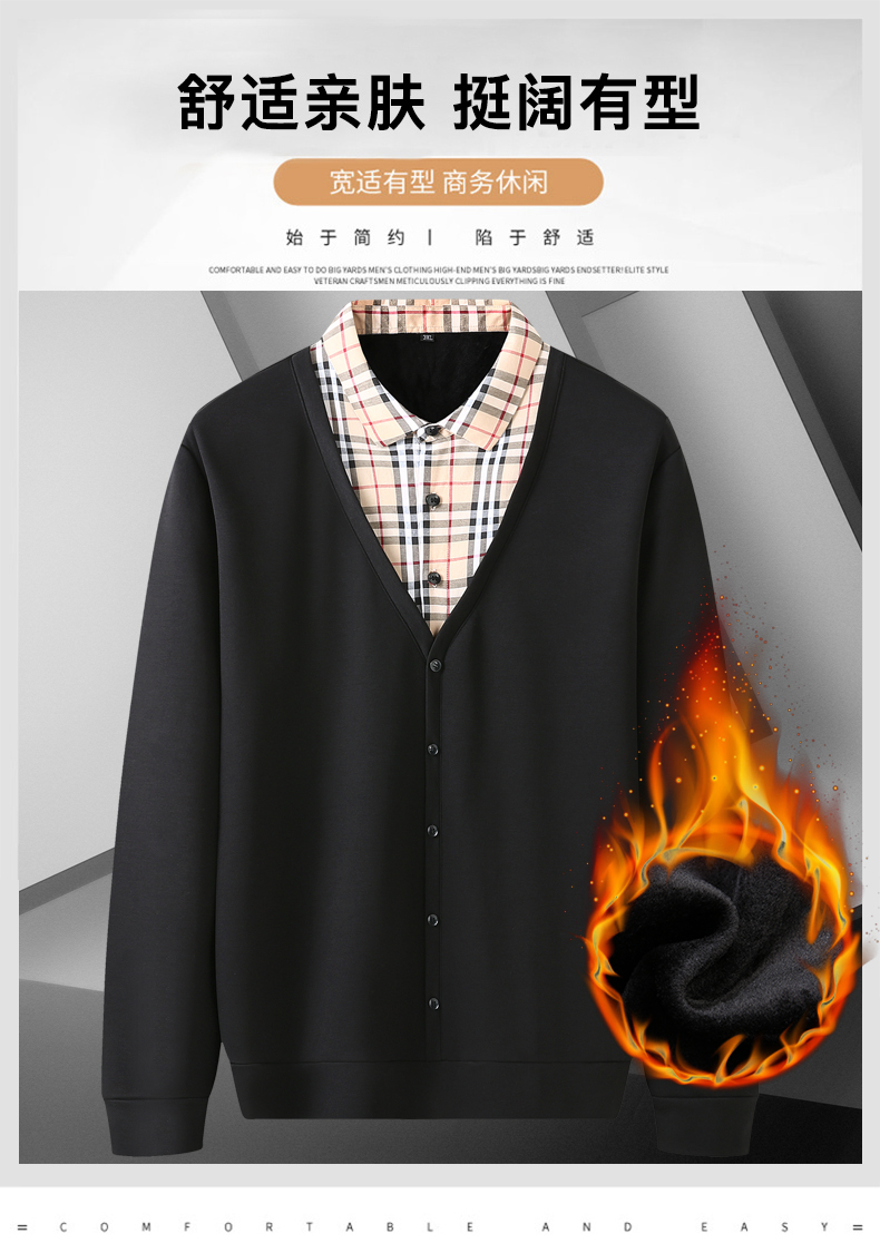 【圈】【新款DDA】大依优型大码男士加绒V领假两件衬衫领针织宽松男外套毛衣翻领卫衣保暖上衣