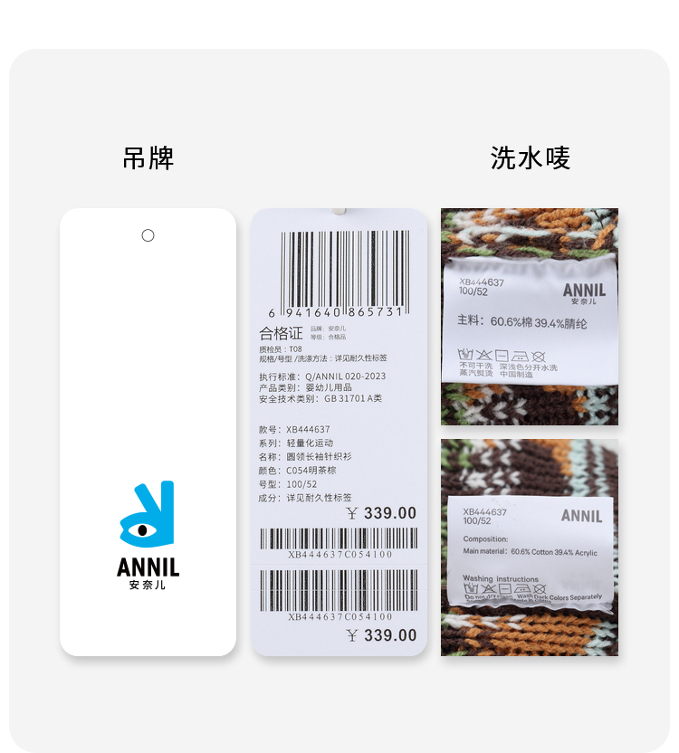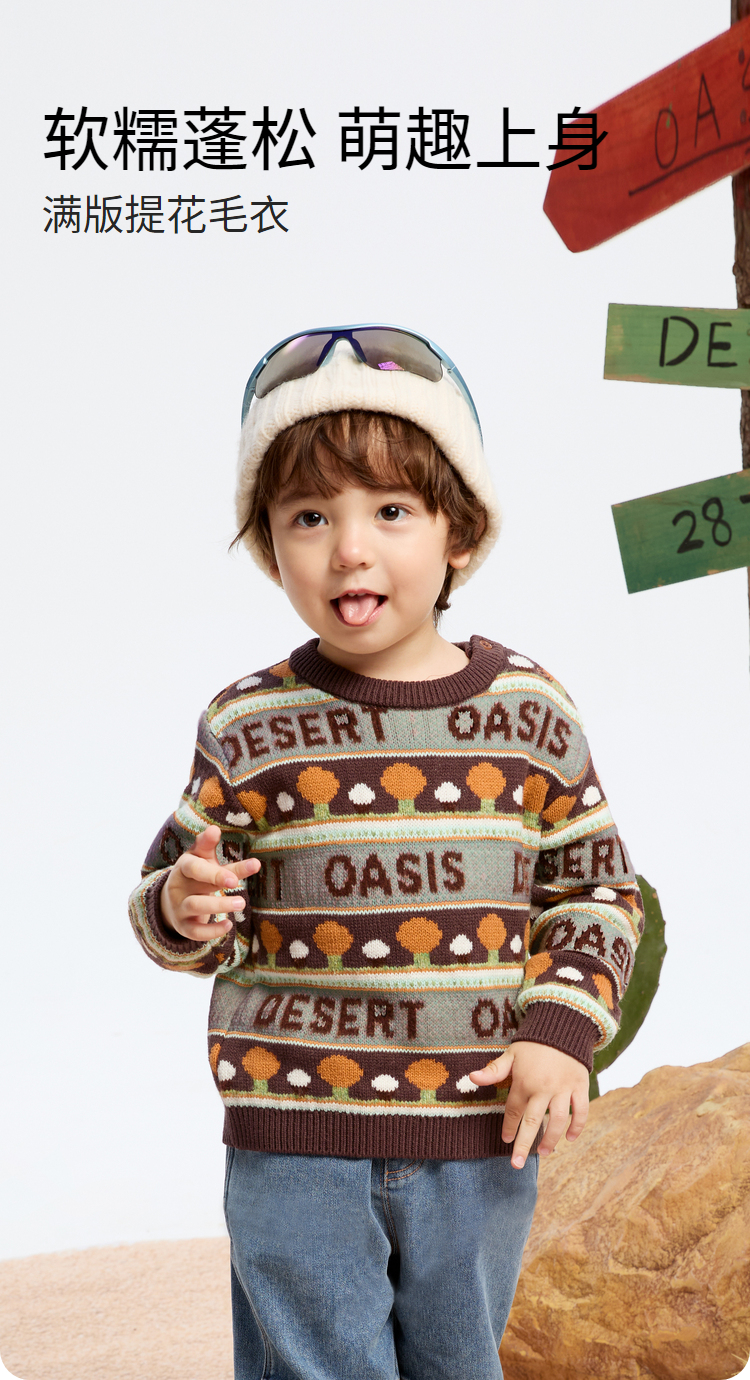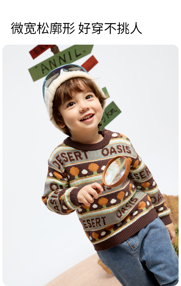 男童满版提花毛衣冬季新款安奈儿童装实体店同款XB444637