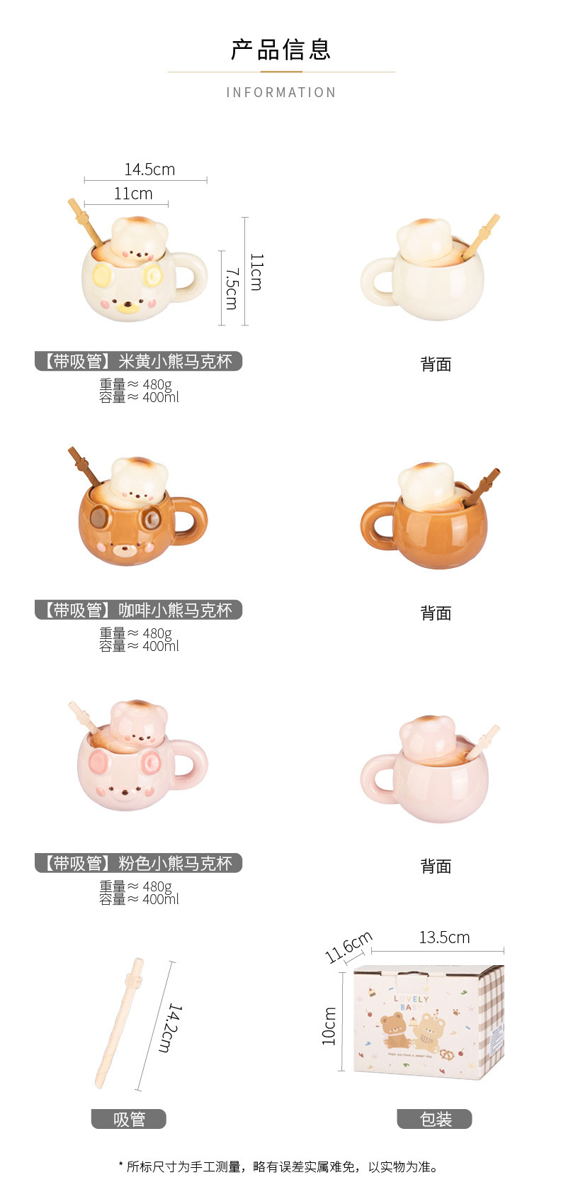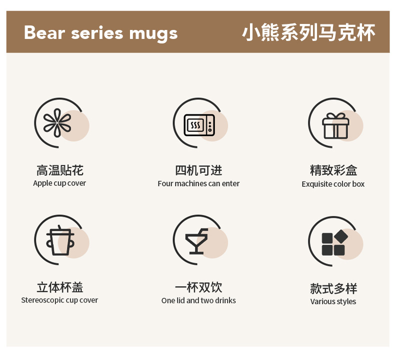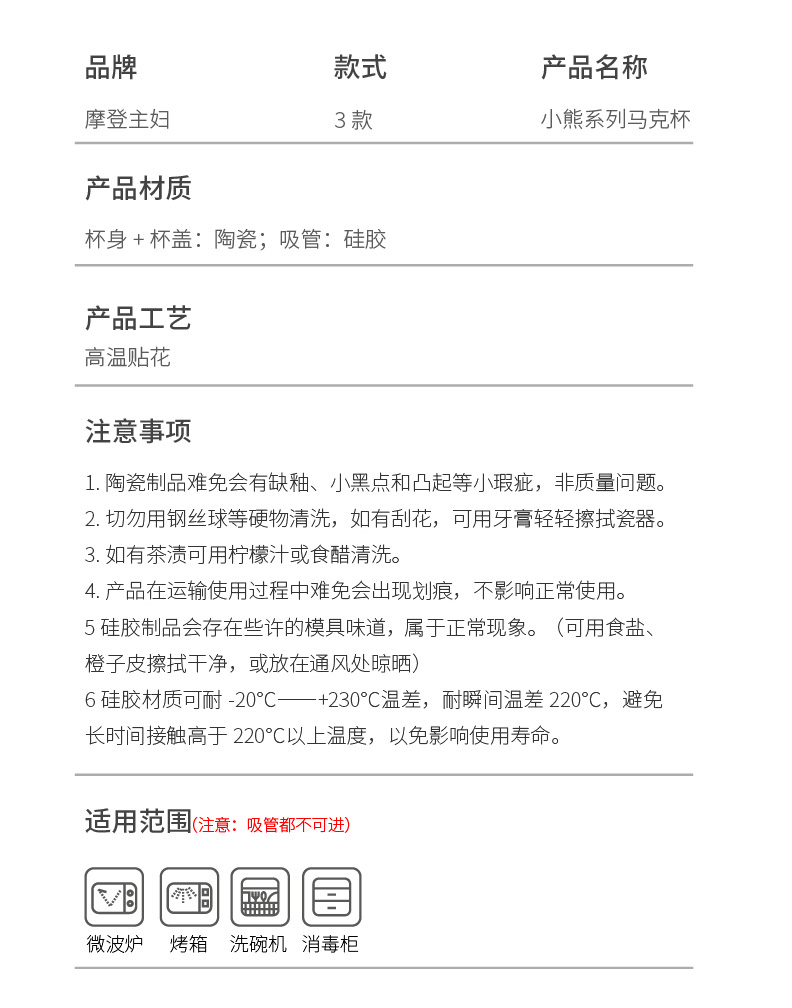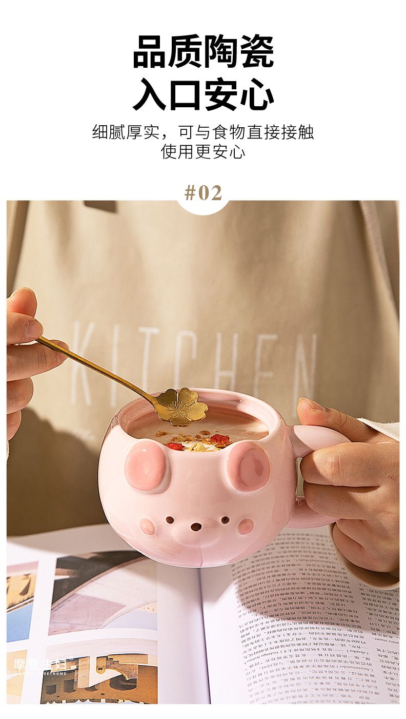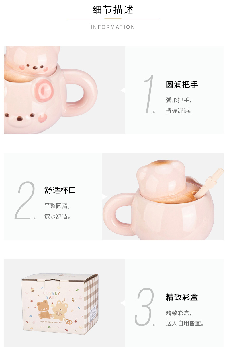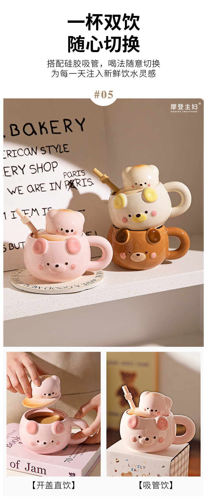 摩登主妇小熊带盖马克杯陶瓷水杯高颜值家用喝水杯吸管杯咖啡杯子