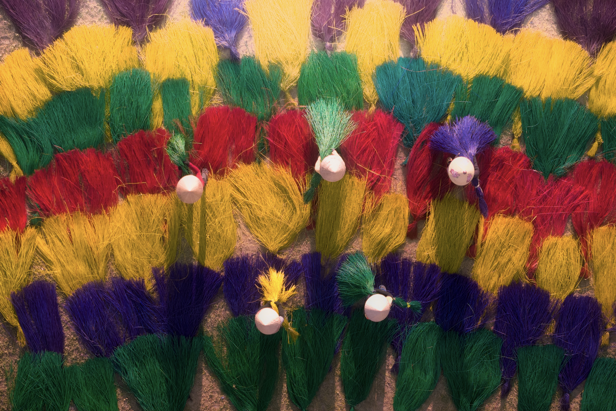 以其色彩绚烂、极具视觉冲击力的晾晒拍摄场景,数万支朱红、明黄、靛蓝、翠绿等色彩的香签在院落、屋顶与空地上铺展,成捆的香签以竹芯为轴向外发散,香尾如羽翼般舒展,形成极具动态美感的“彩色香海”